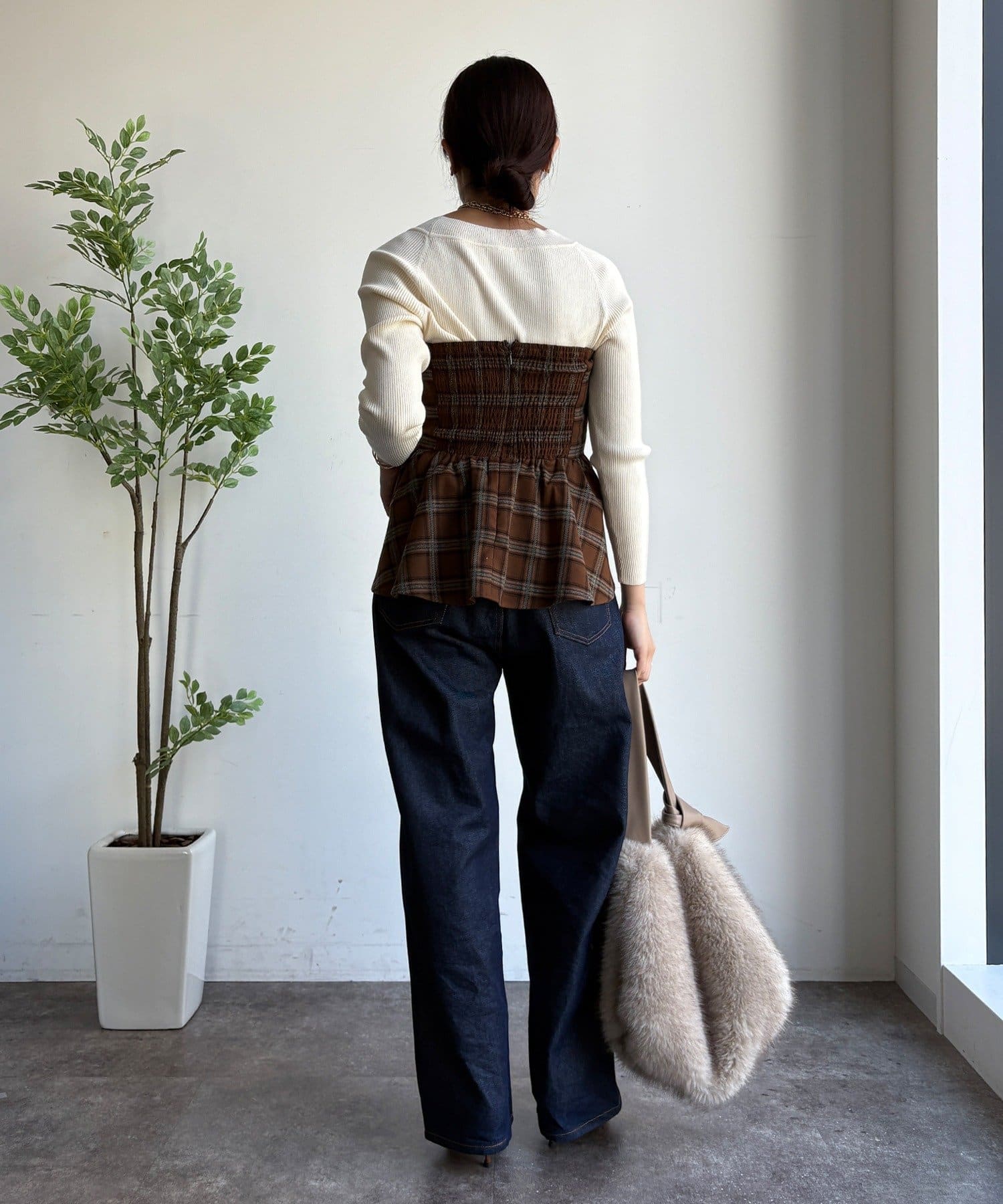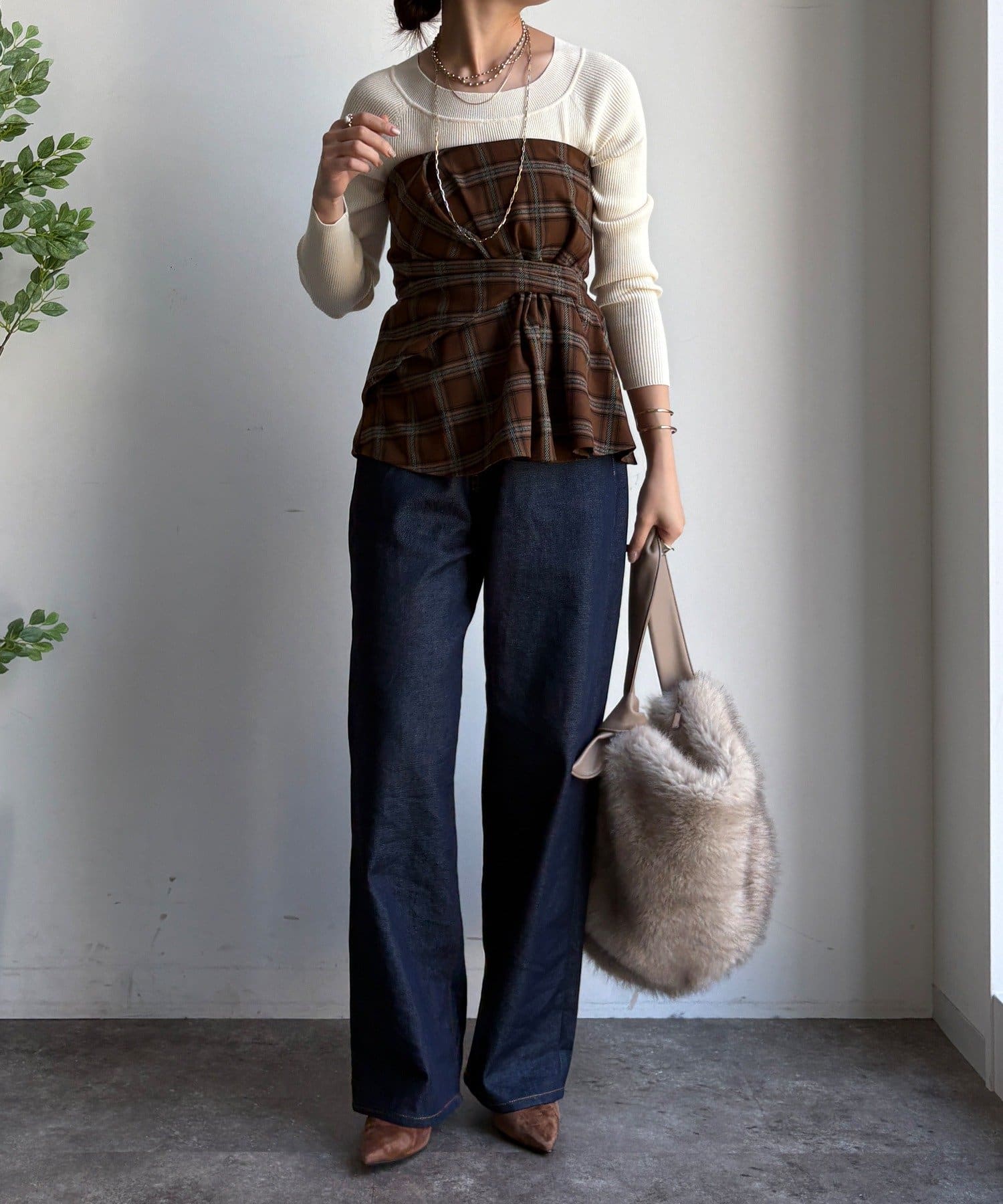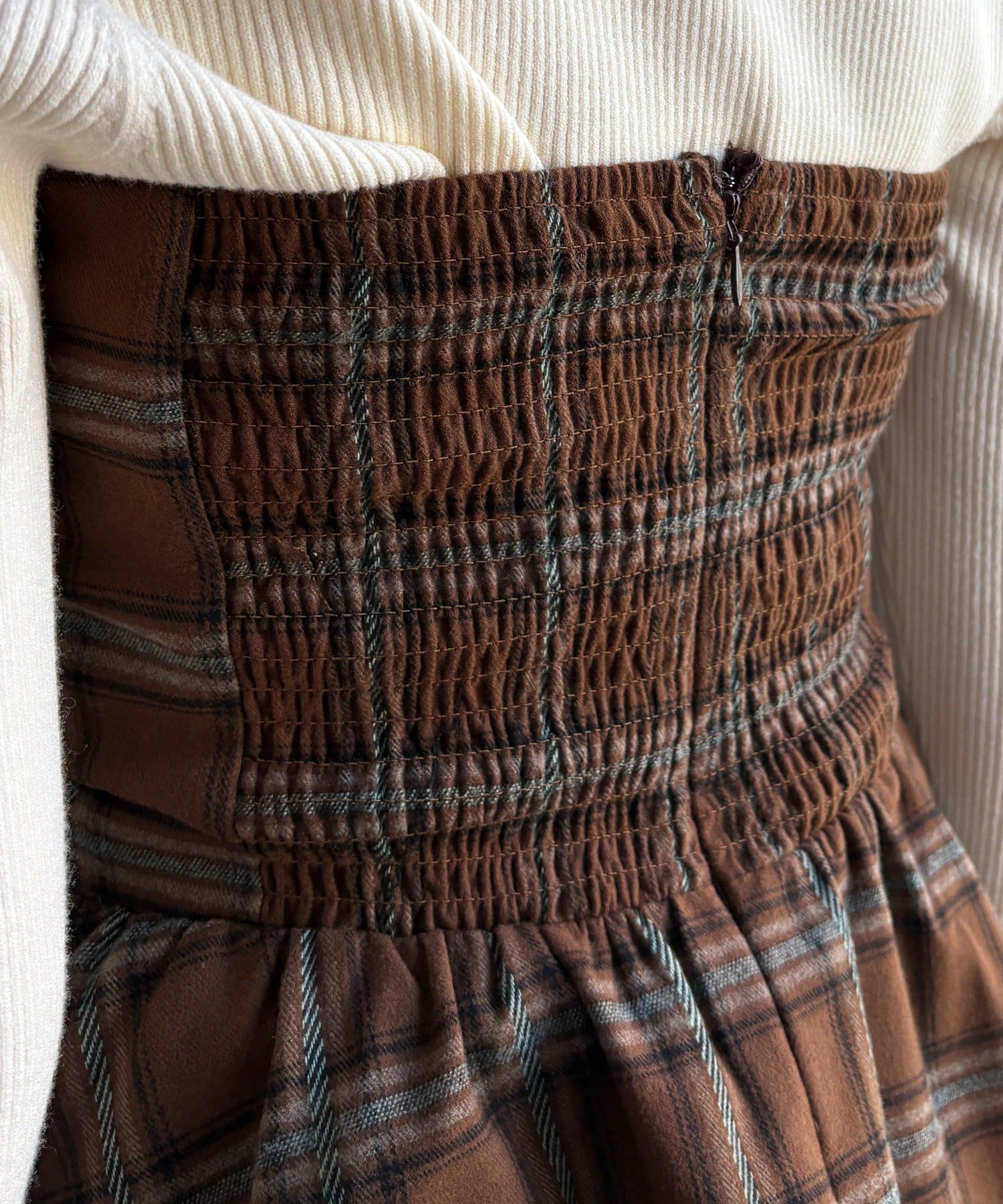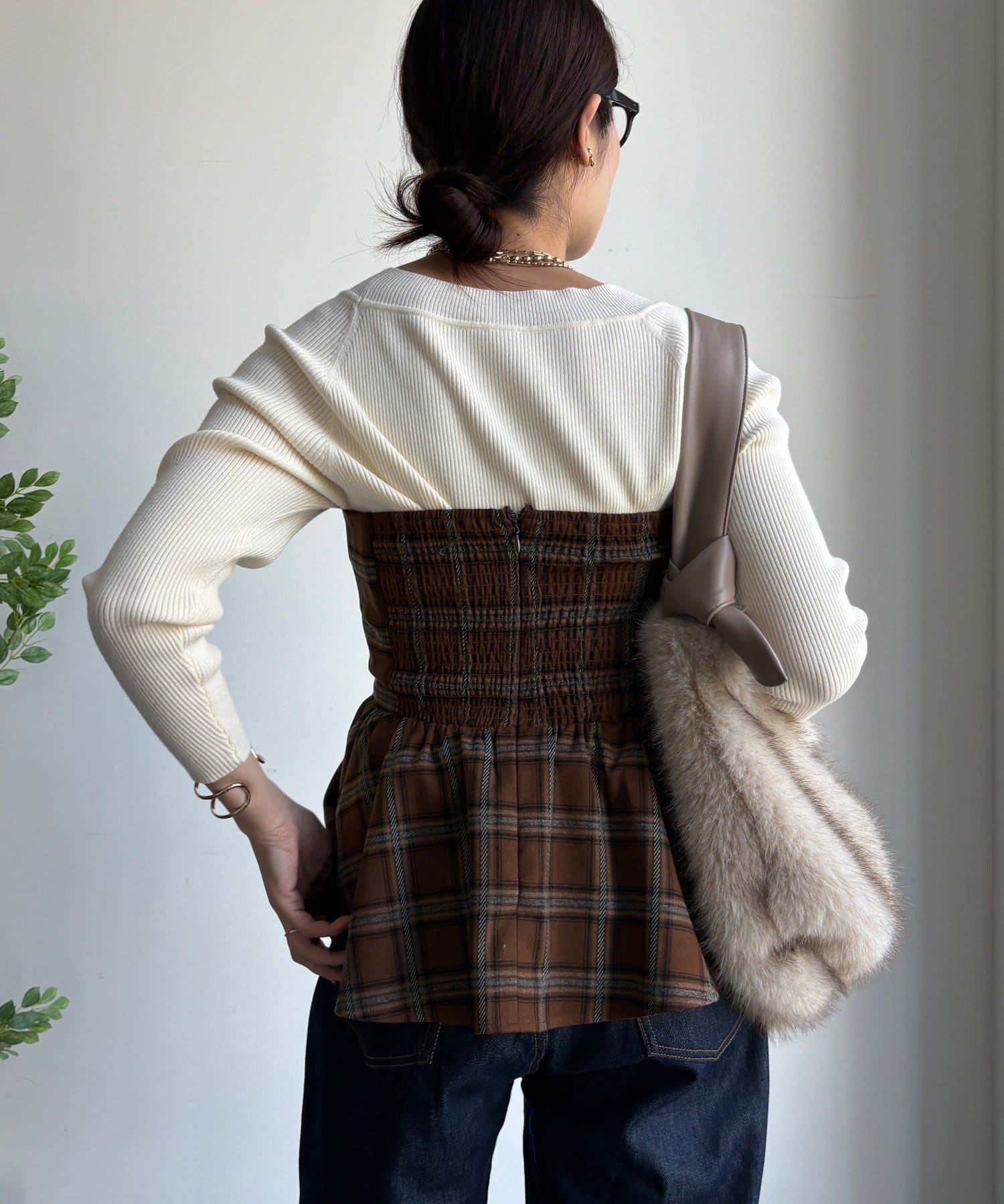 シーズンムード漂う起毛チェック柄が魅力のビスチェ。
