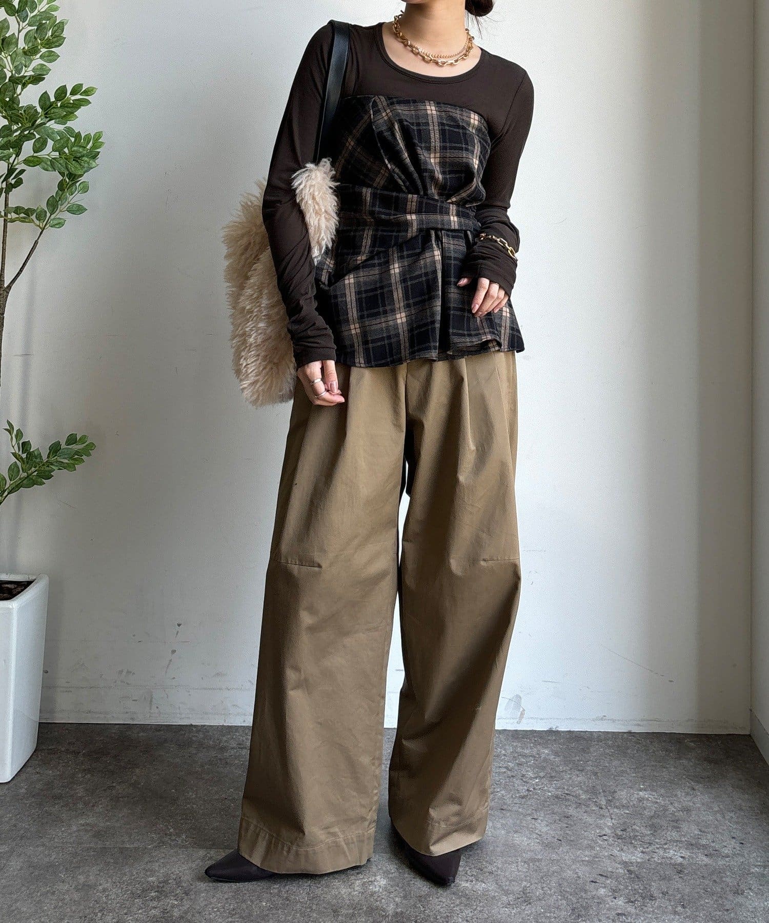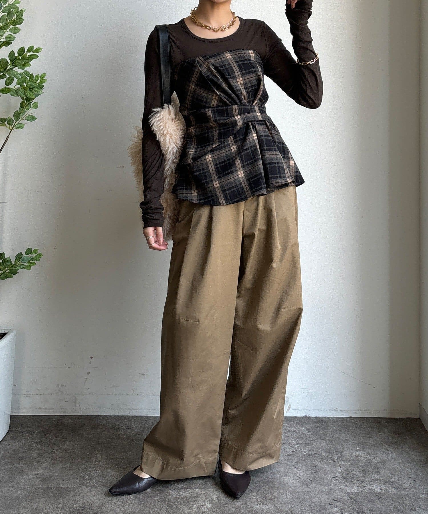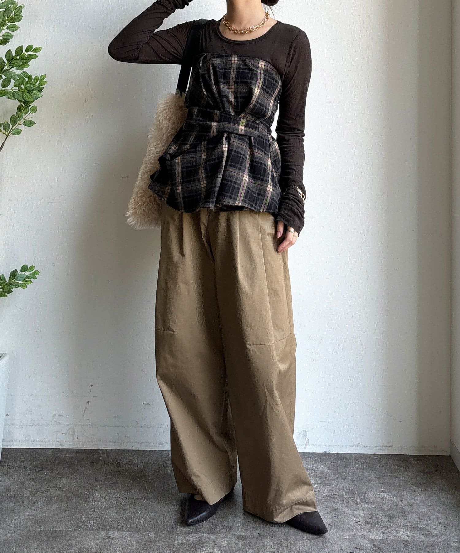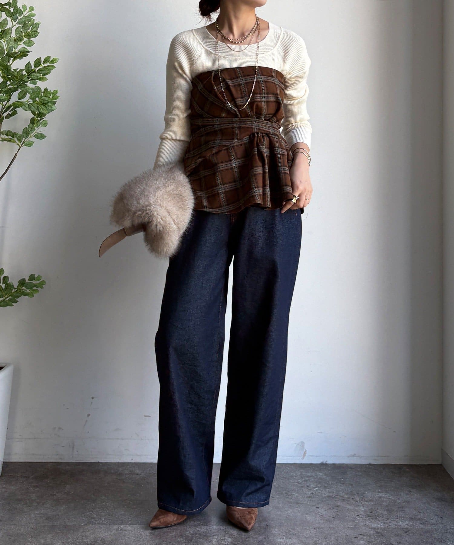 シーズンムード漂う起毛チェック柄が魅力のビスチェ。
