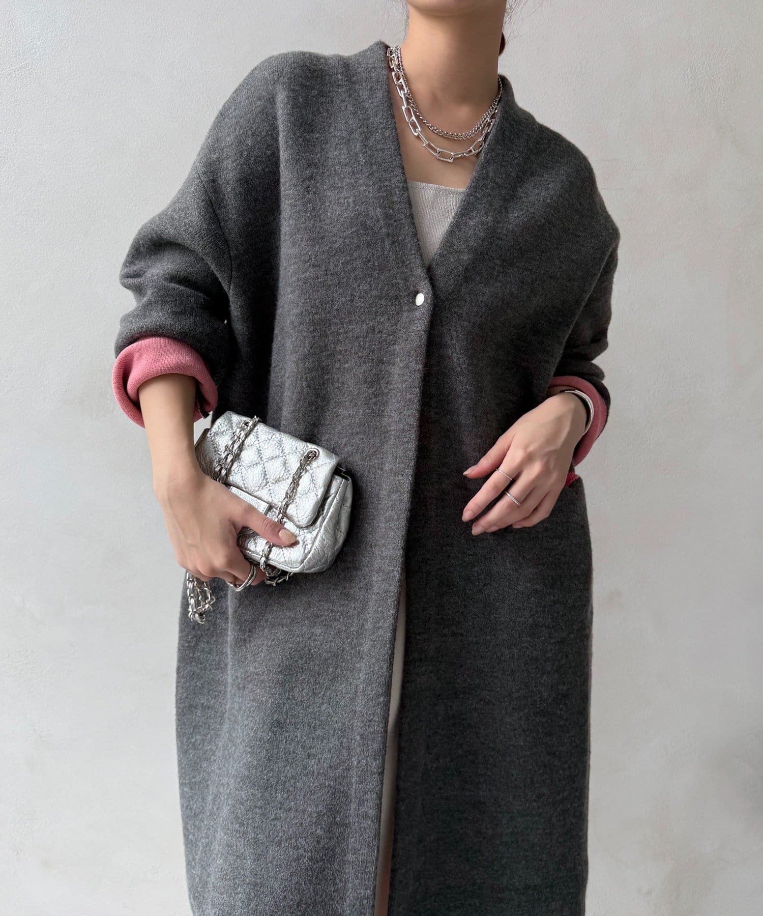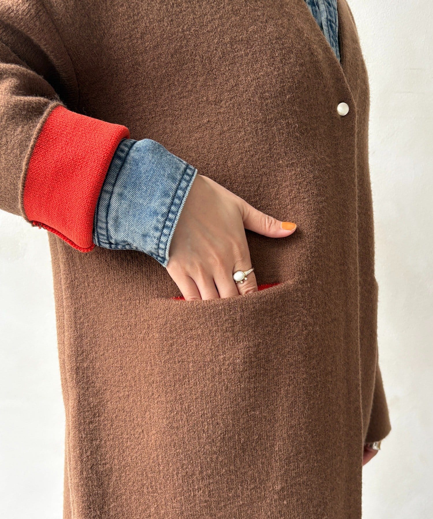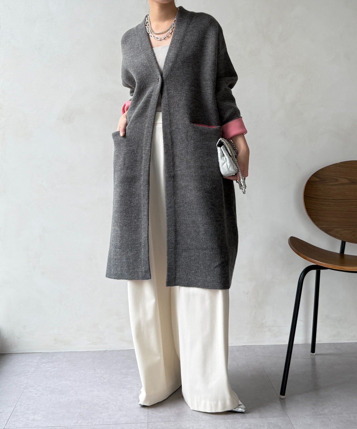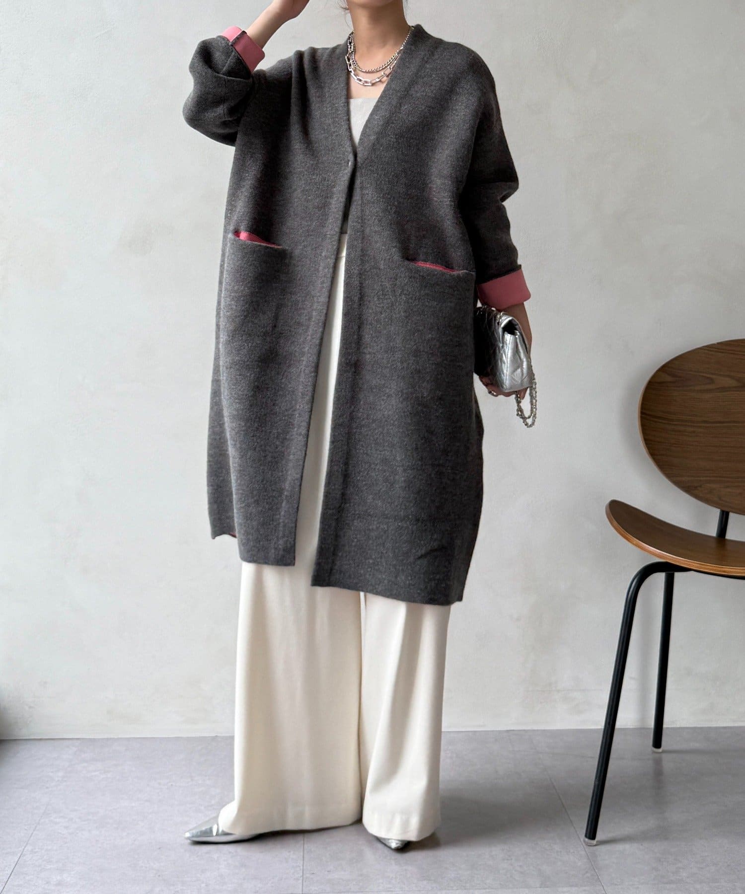 TOP > DOUDOU > レディース > トップス > カーディガン/ボレロ > ダブルフェイスニットガウン