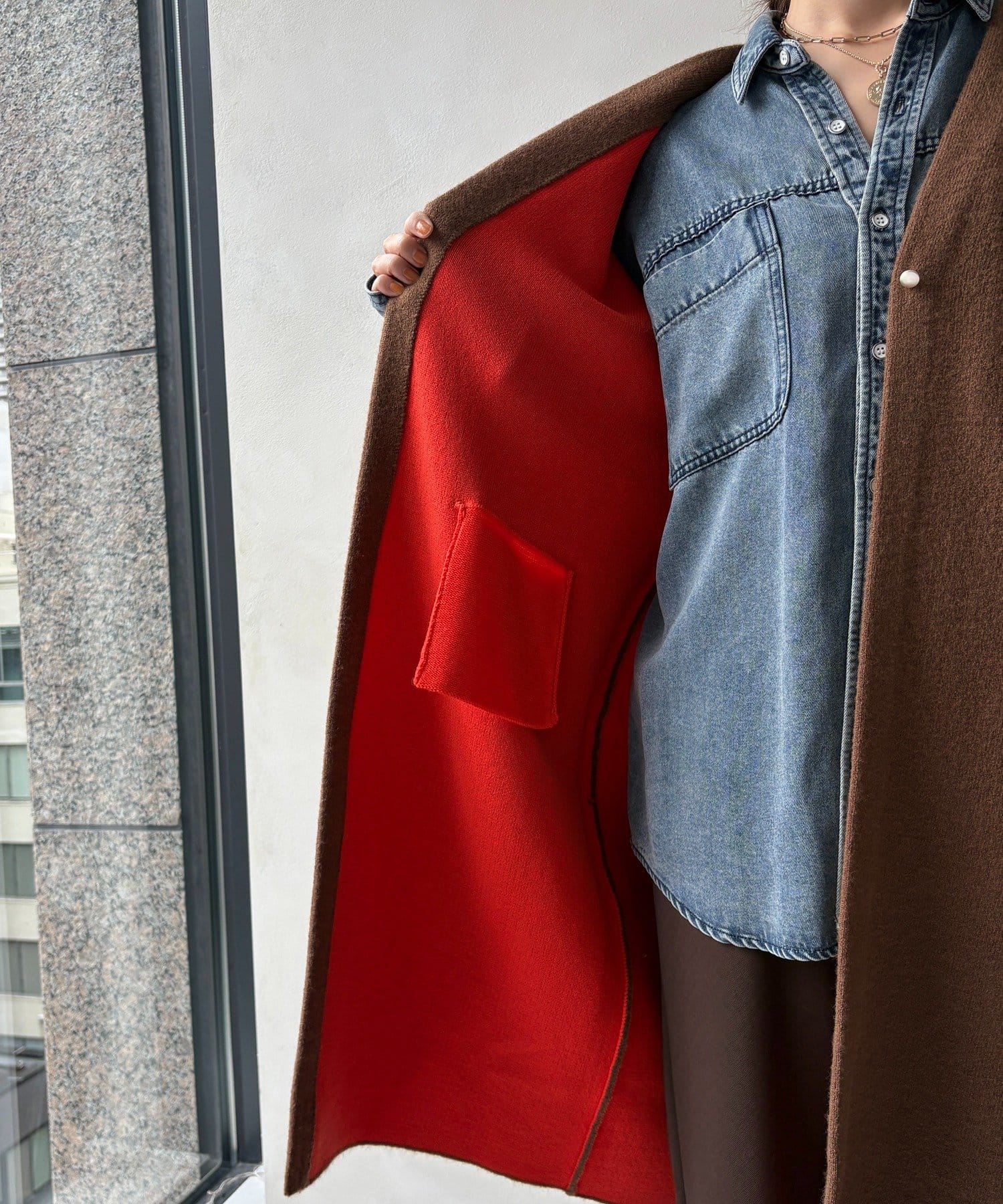 いつものスタイルに、さっと羽織るだけでおしゃれ度が格段にアップする、ダブルフェイスニットガウン。