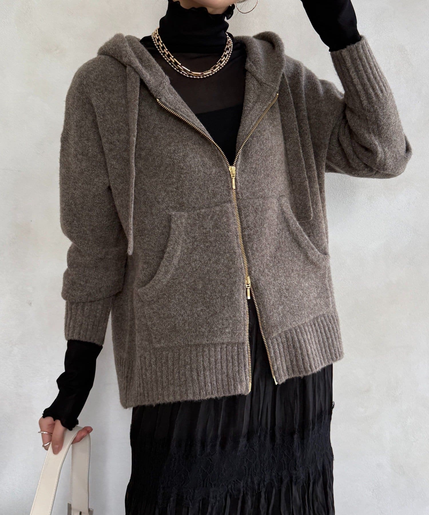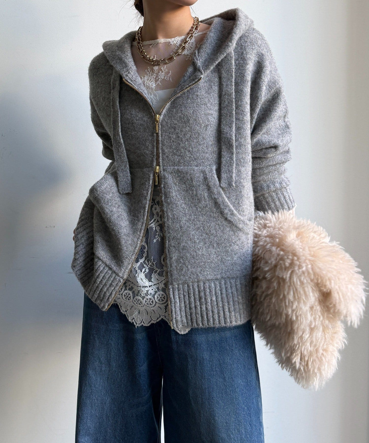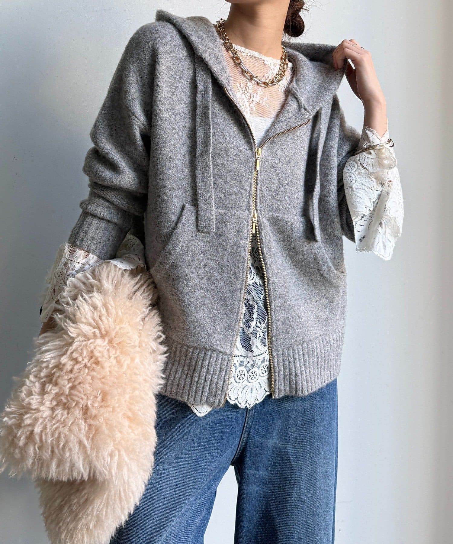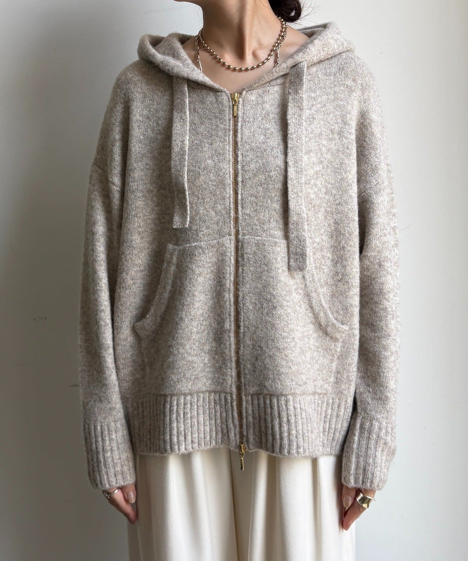 ふんわりとした軽やかさと質感が魅力のホイップヤーンジップフーディー。