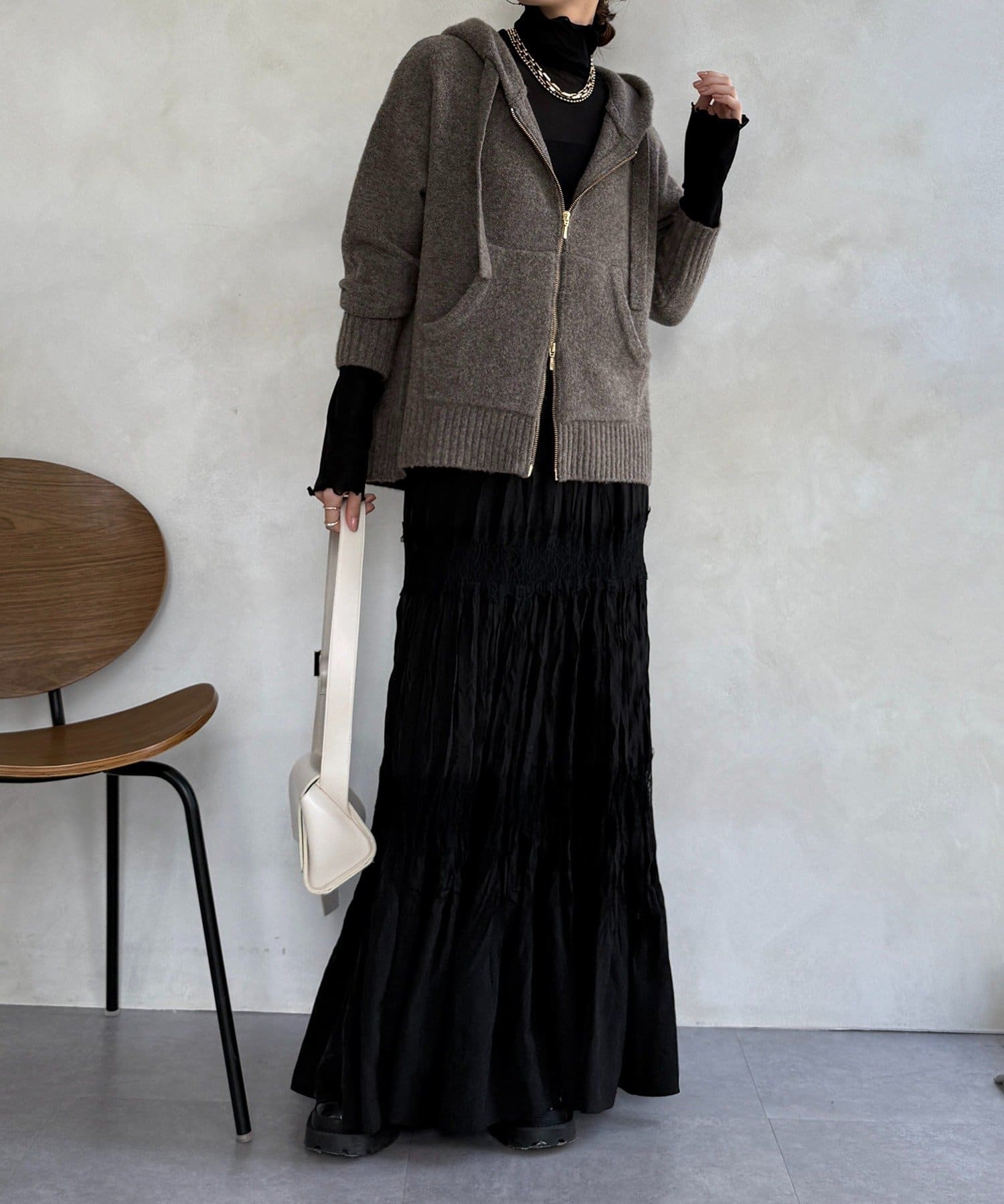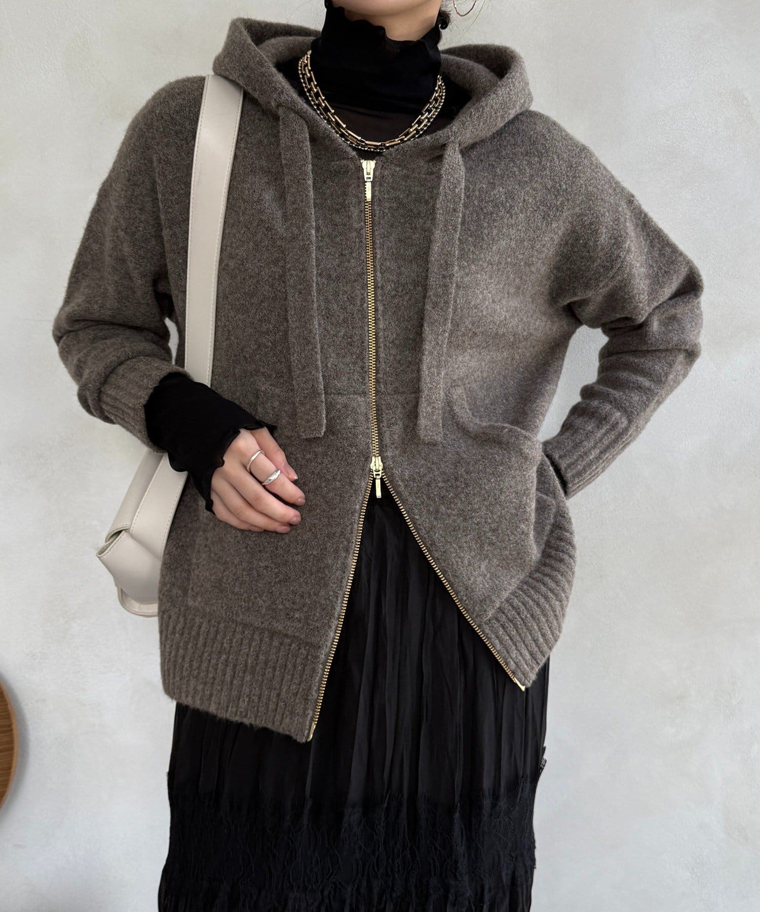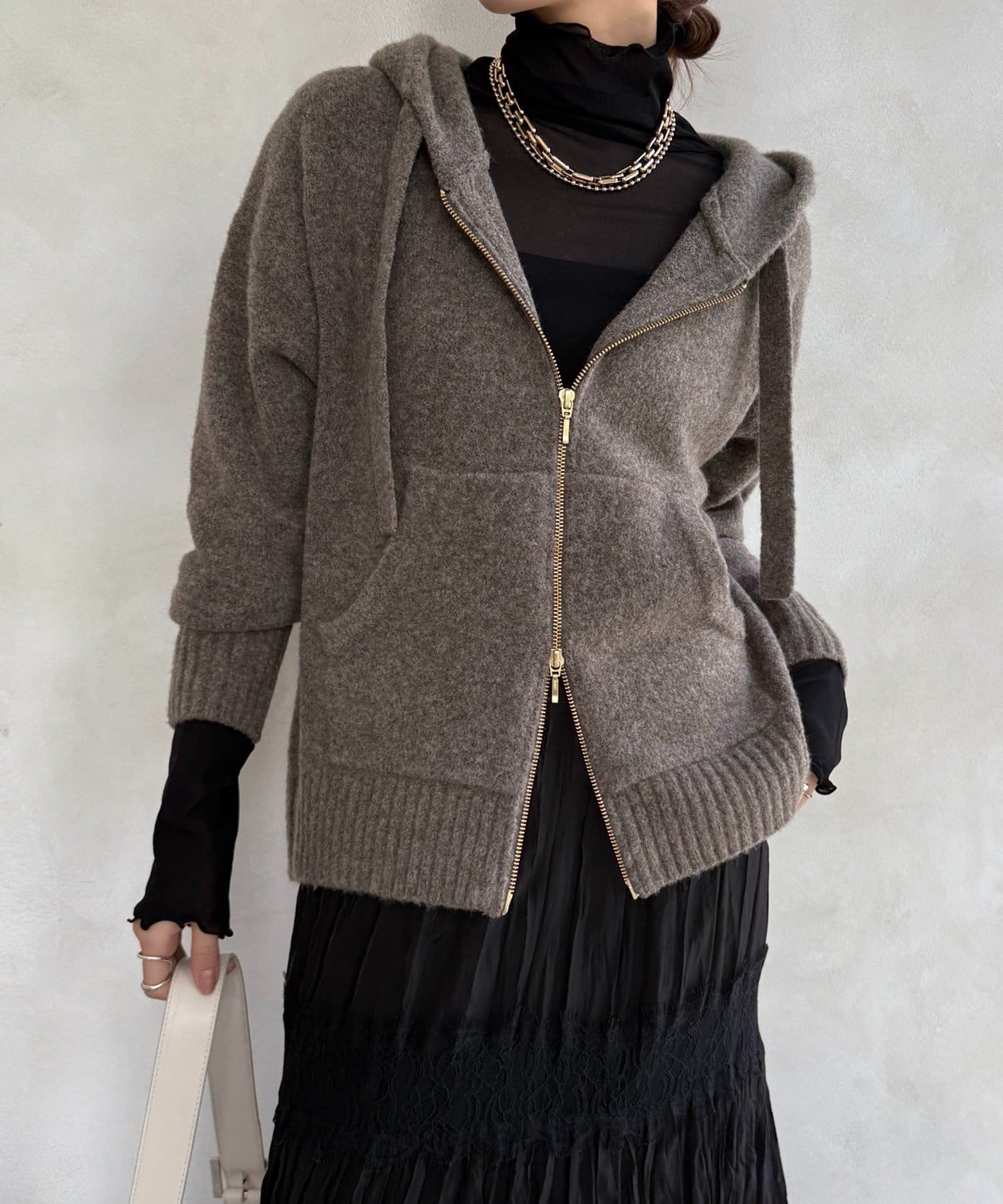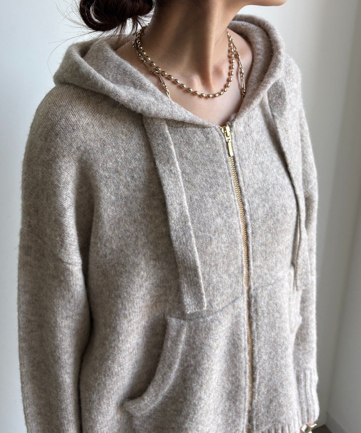 ふんわりとした軽やかさと質感が魅力のホイップヤーンジップフーディー。