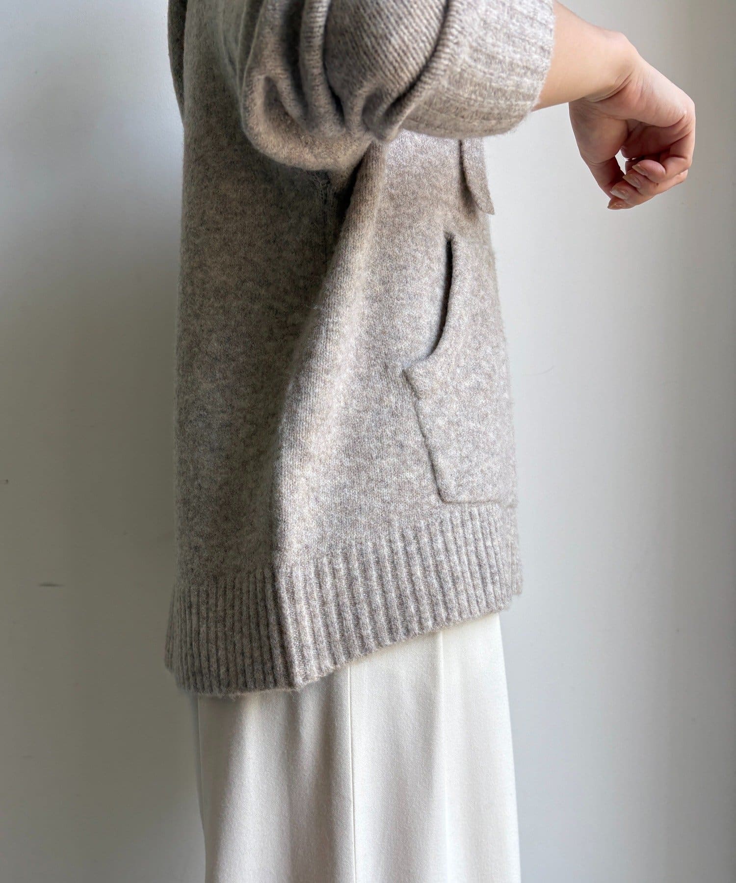 体のラインを拾いすぎず、リブ切り替えのデザインで全体をすっきりとまとめてくれます。