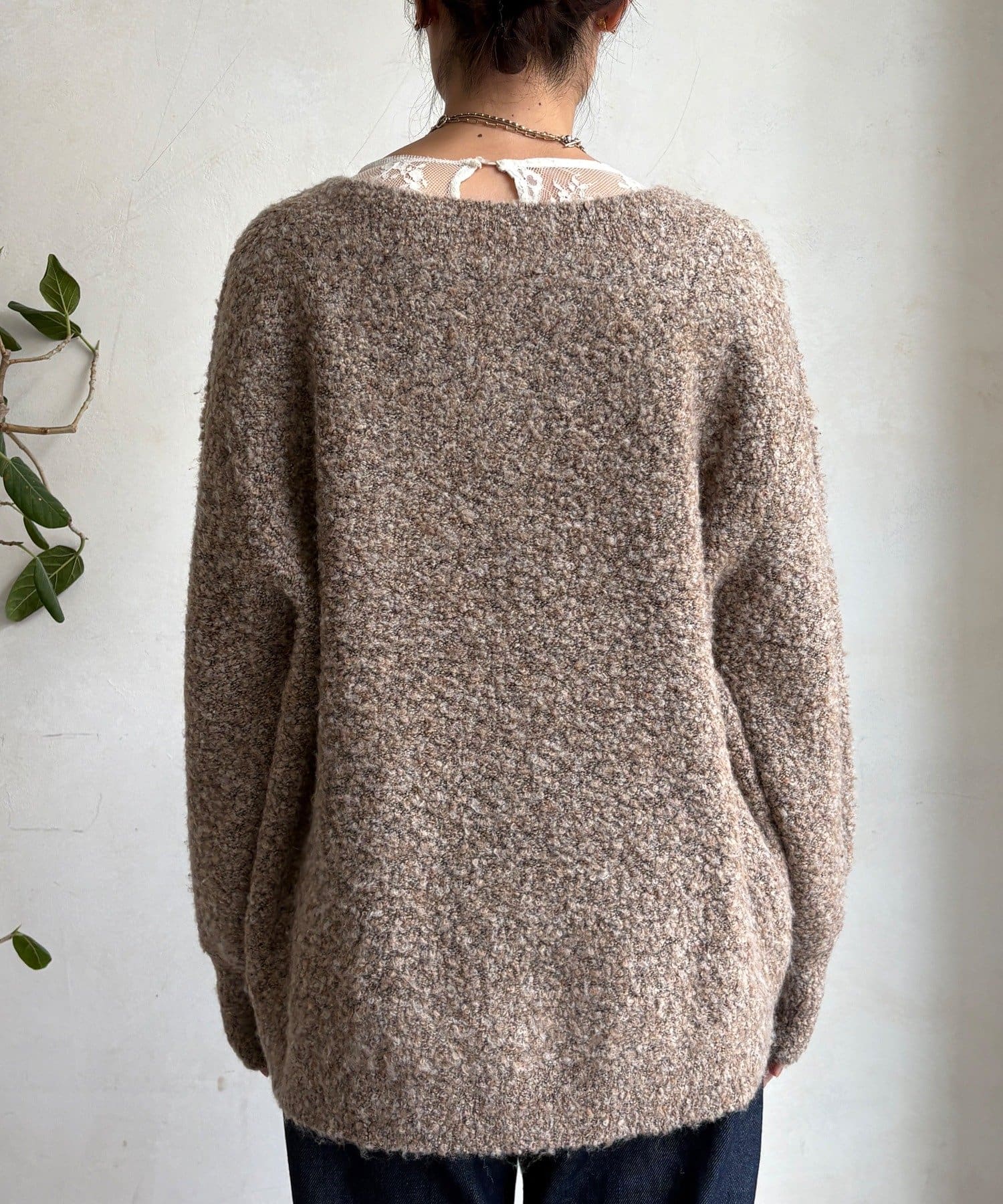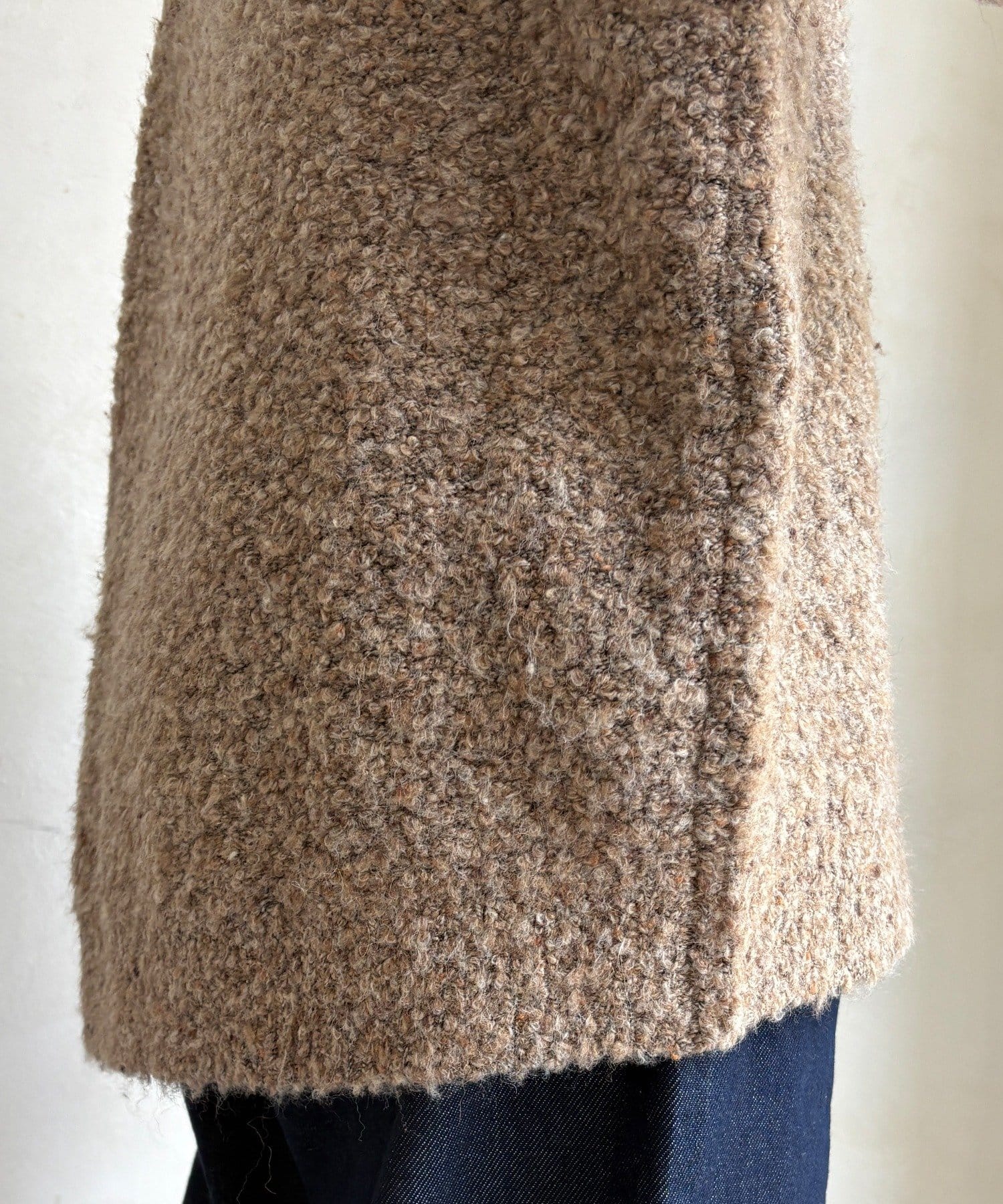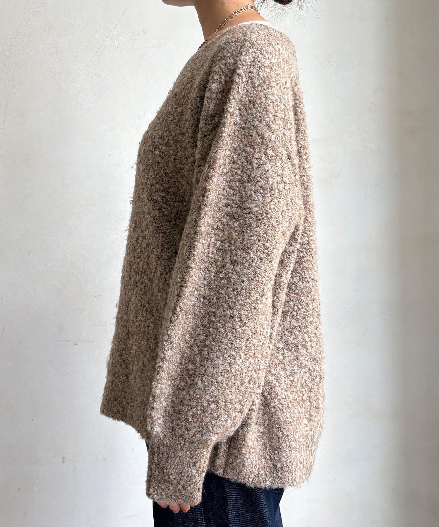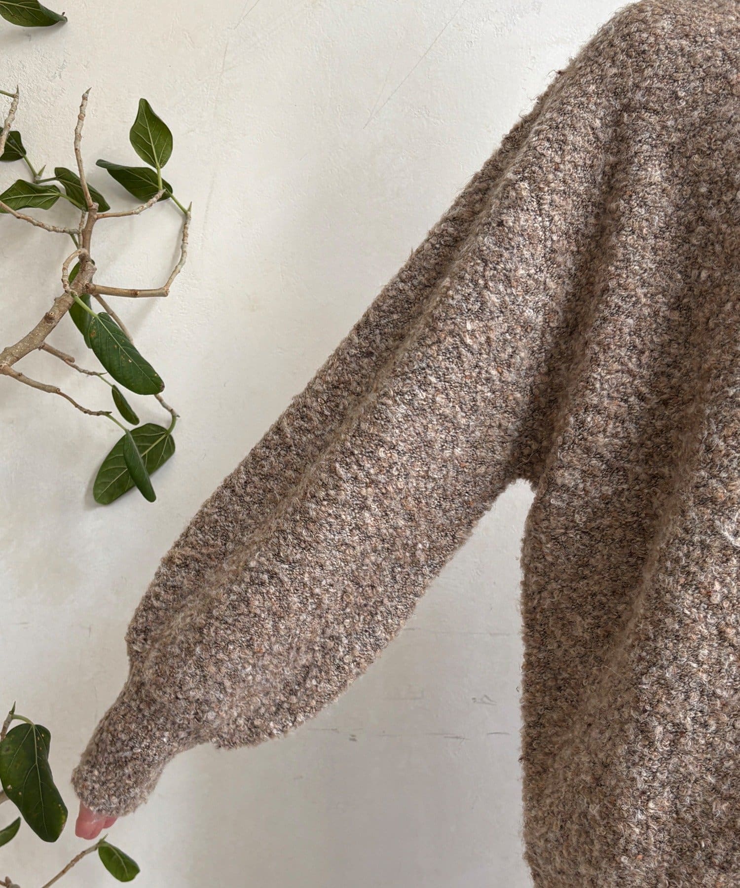ふっくらとした素材感が空気をまとい、見た目にも暖かな風合い。メランジ調のミックスカラーが、シンプルな着こなしに奥行きとニュアンスをプラスします。