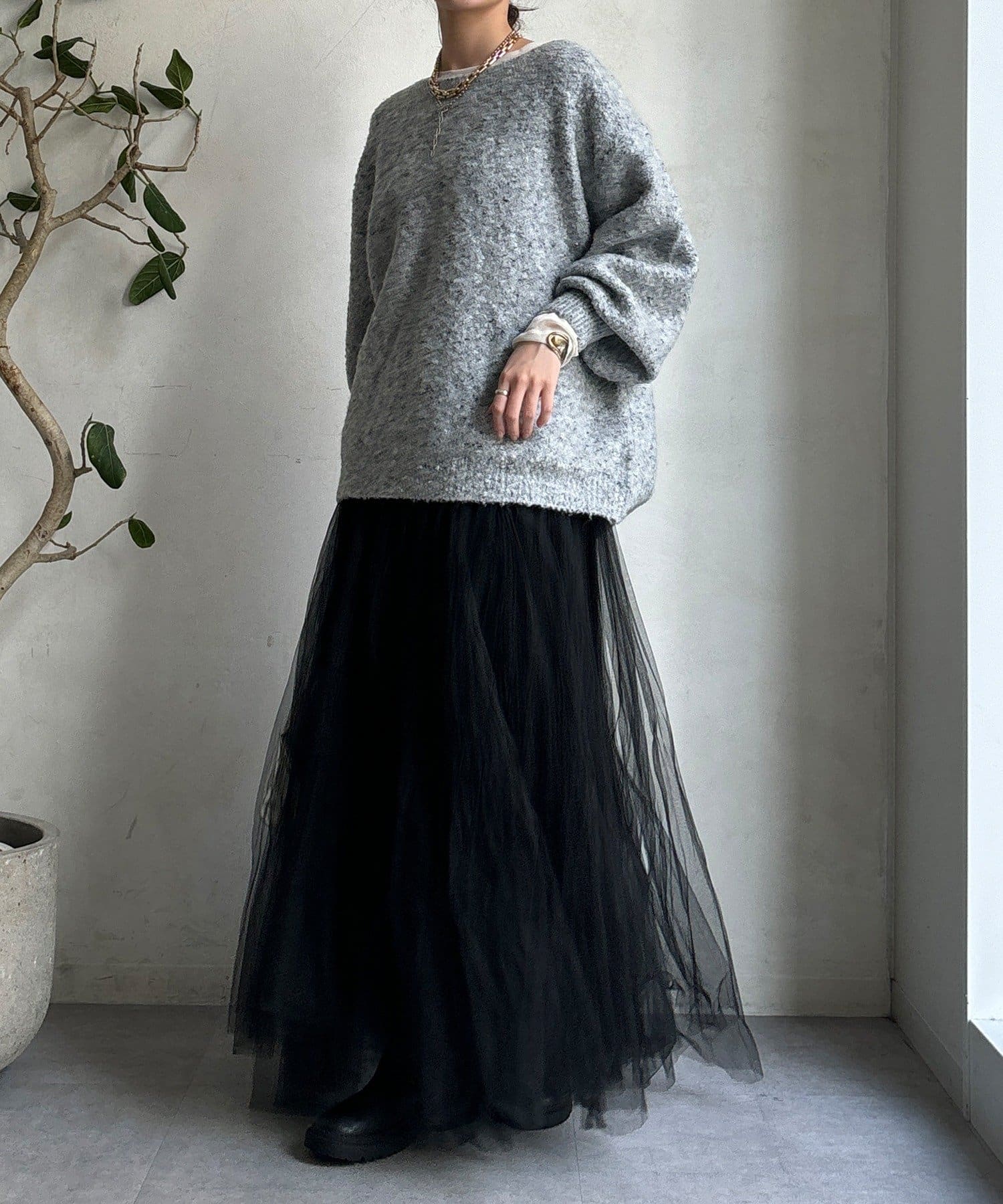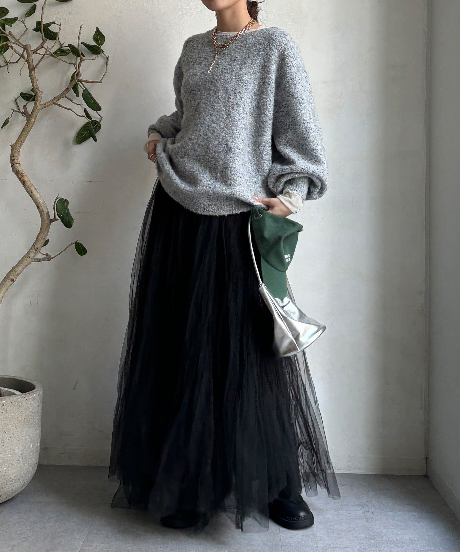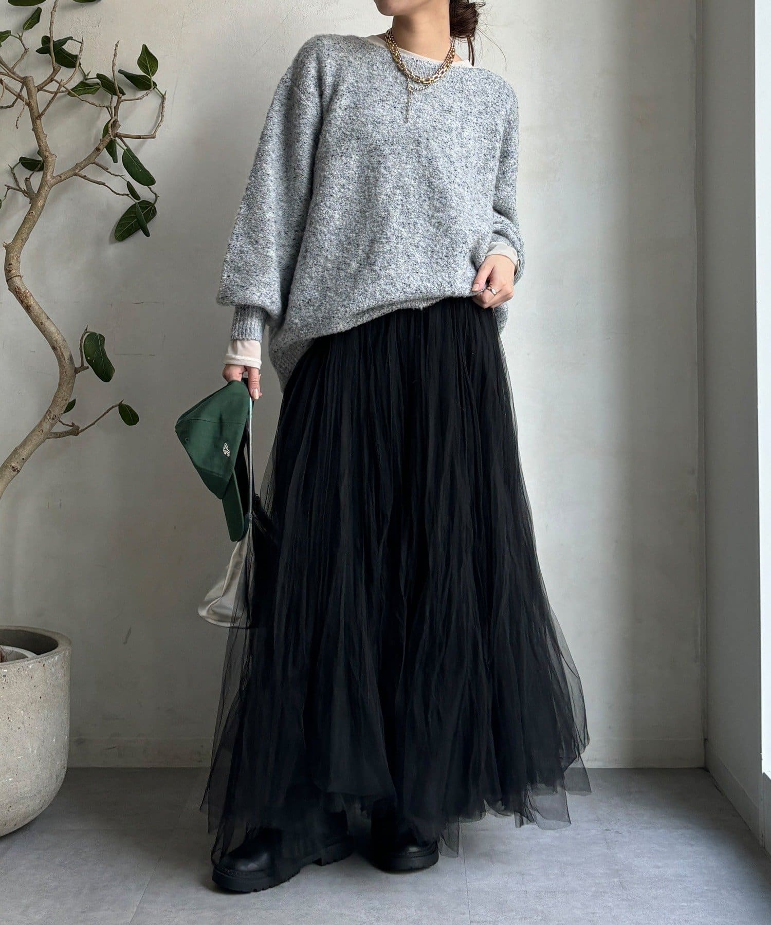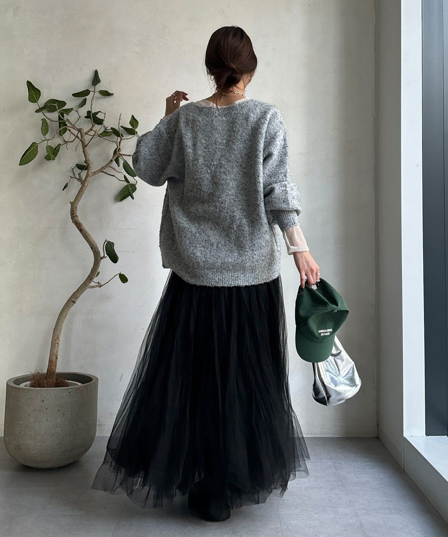 ボリュームがありながらも軽い着心地で、インナーにTシャツやレースを重ねることでさらに着こなしの幅が広がる秋冬のデイリーユースにぴったりのアイテムです。