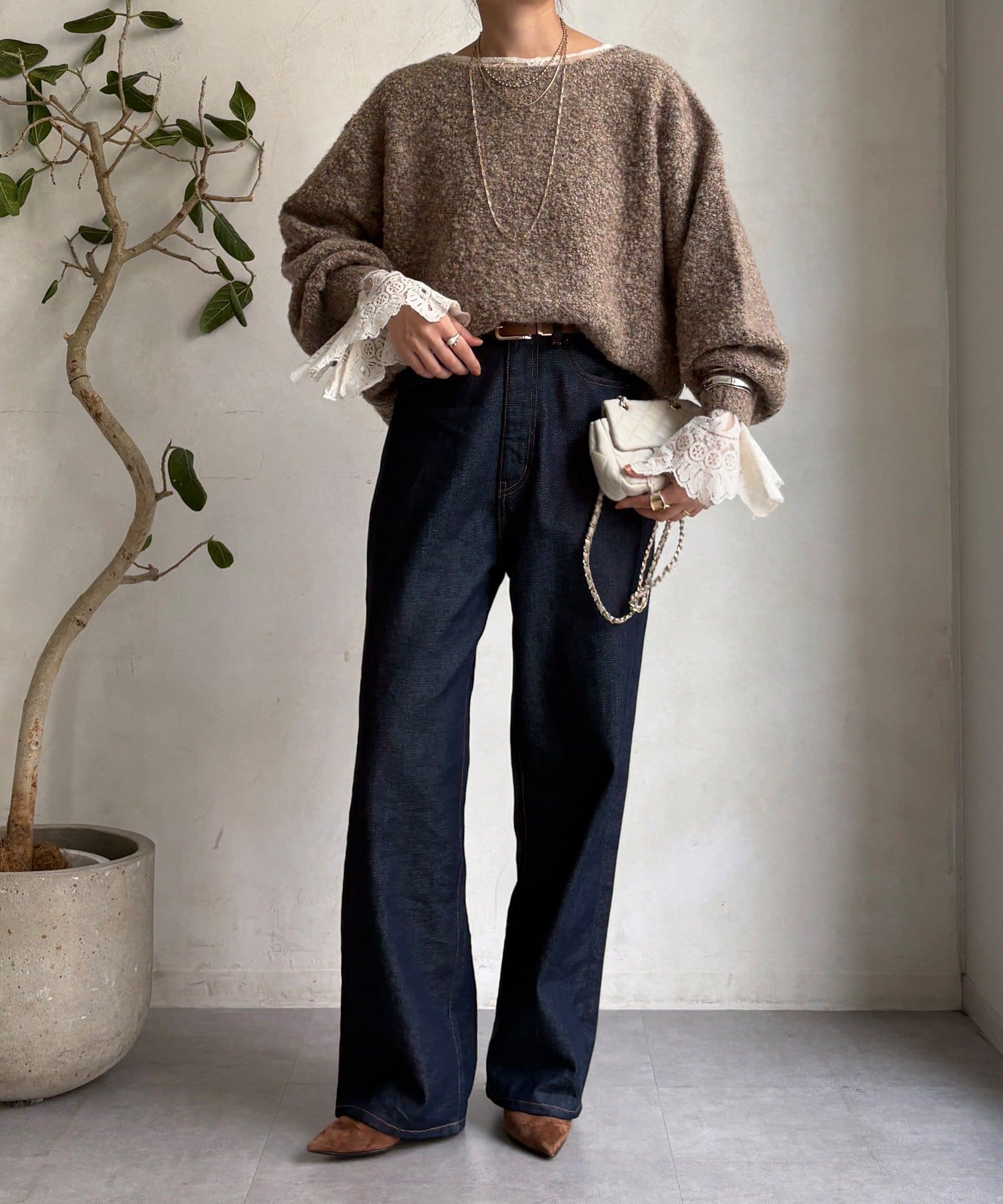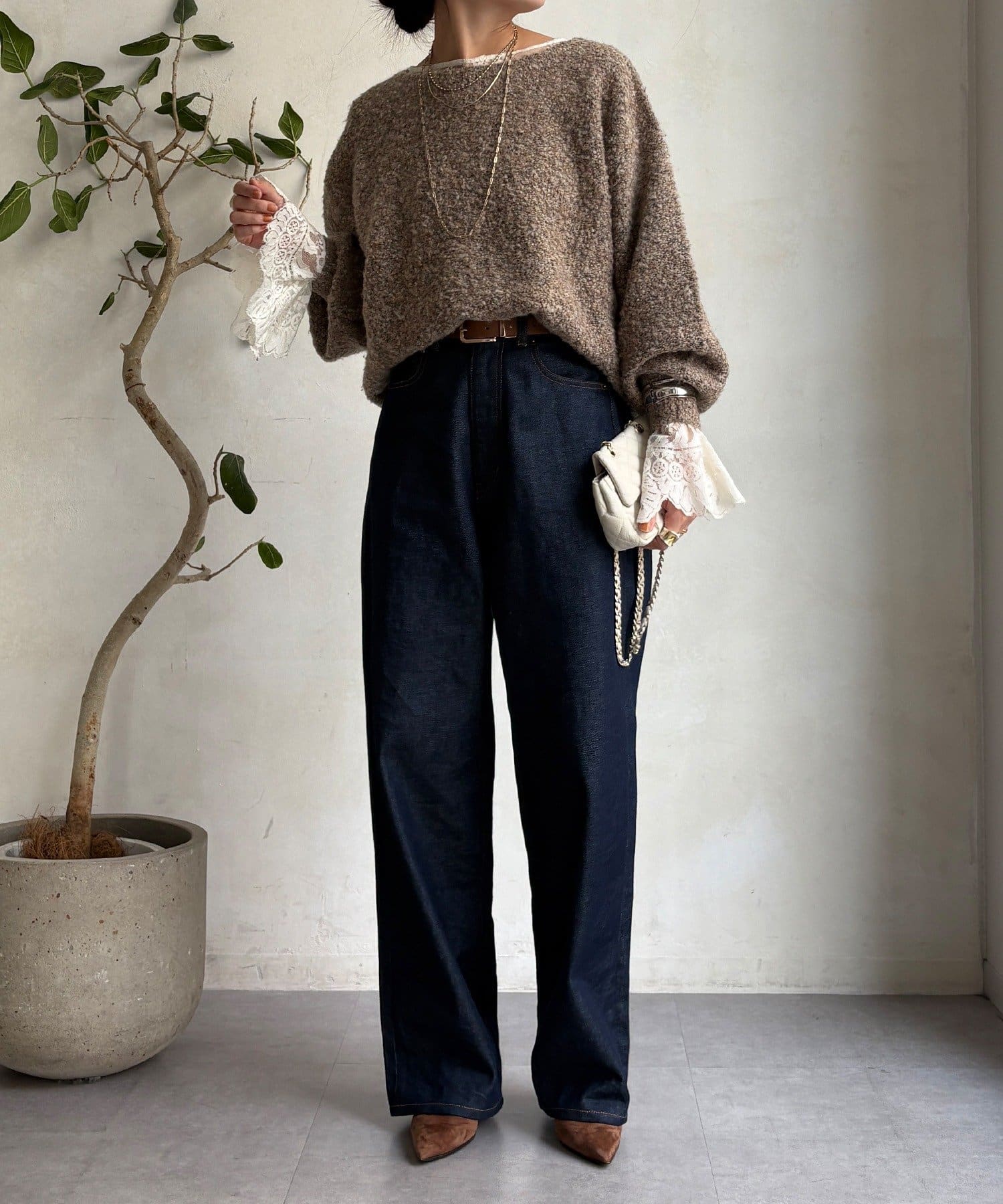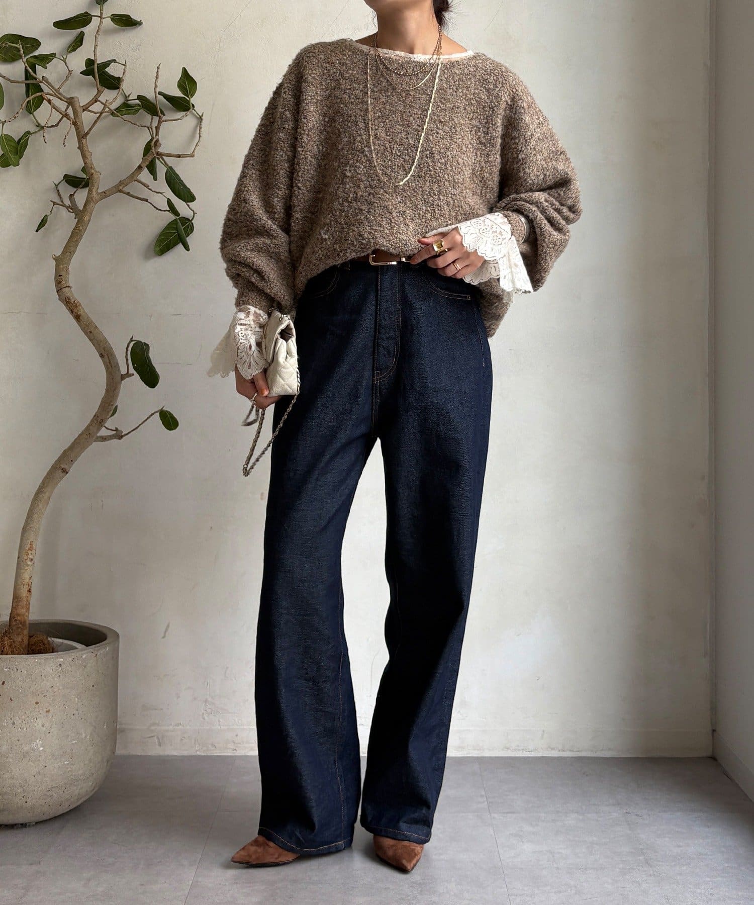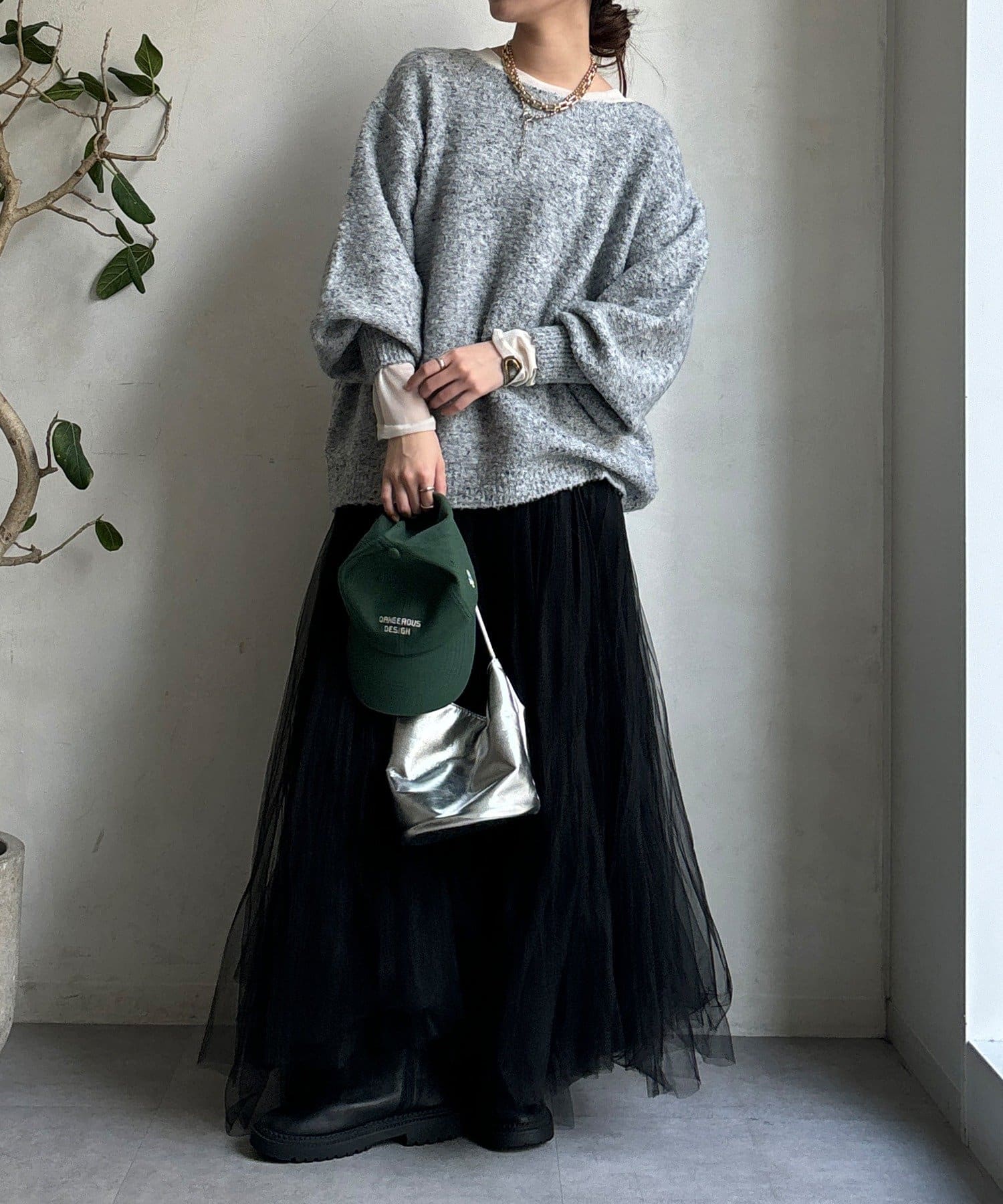 ボリュームがありながらも軽い着心地で、インナーにTシャツやレースを重ねることでさらに着こなしの幅が広がる秋冬のデイリーユースにぴったりのアイテムです。
