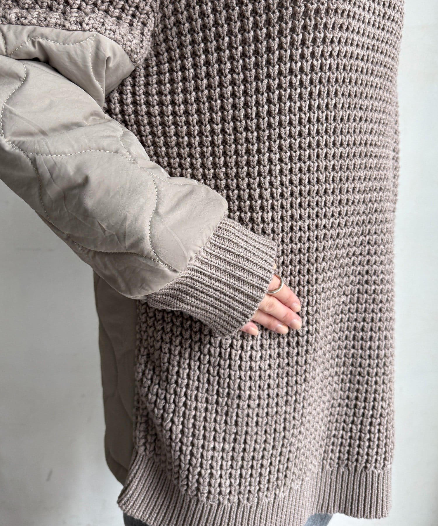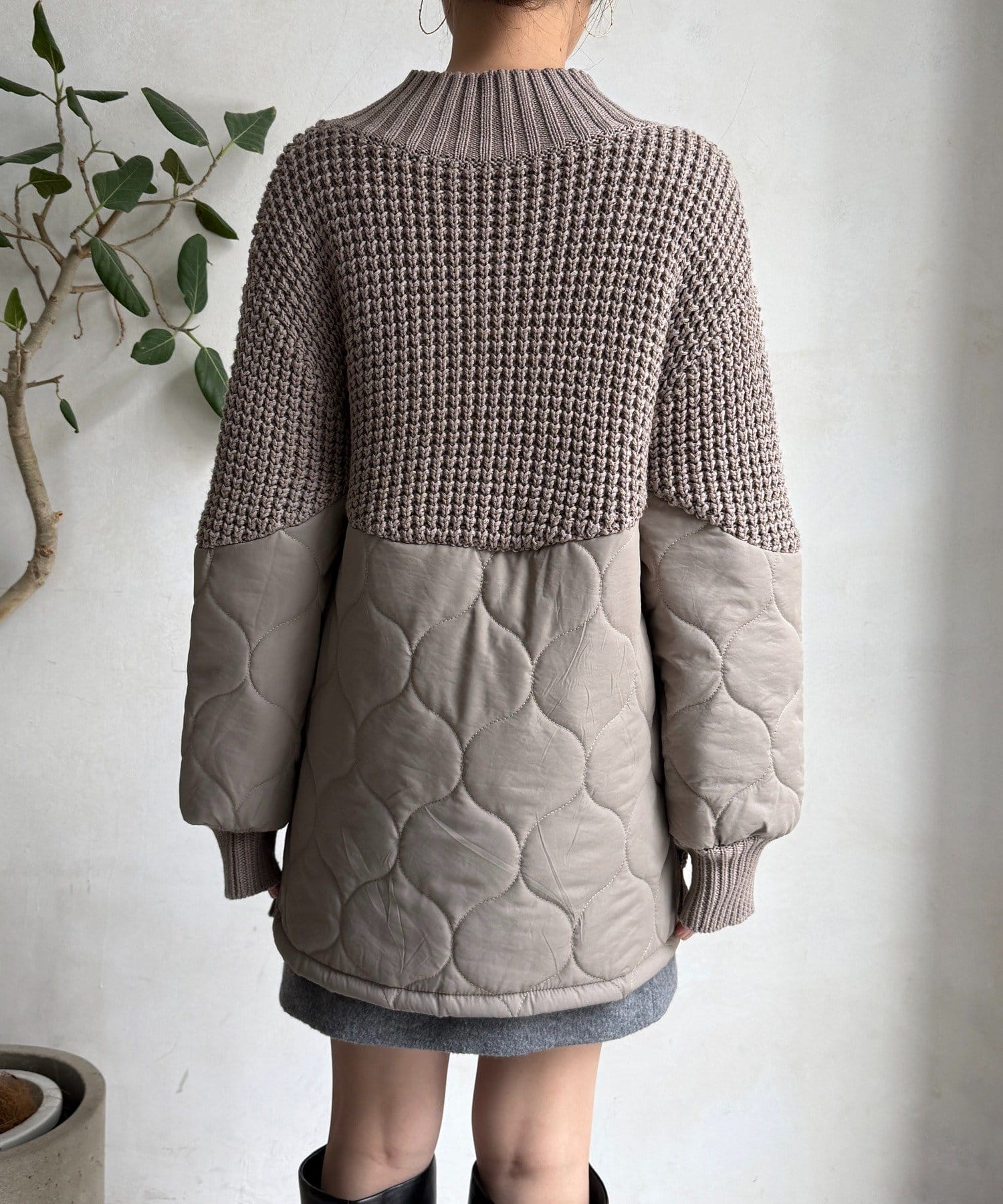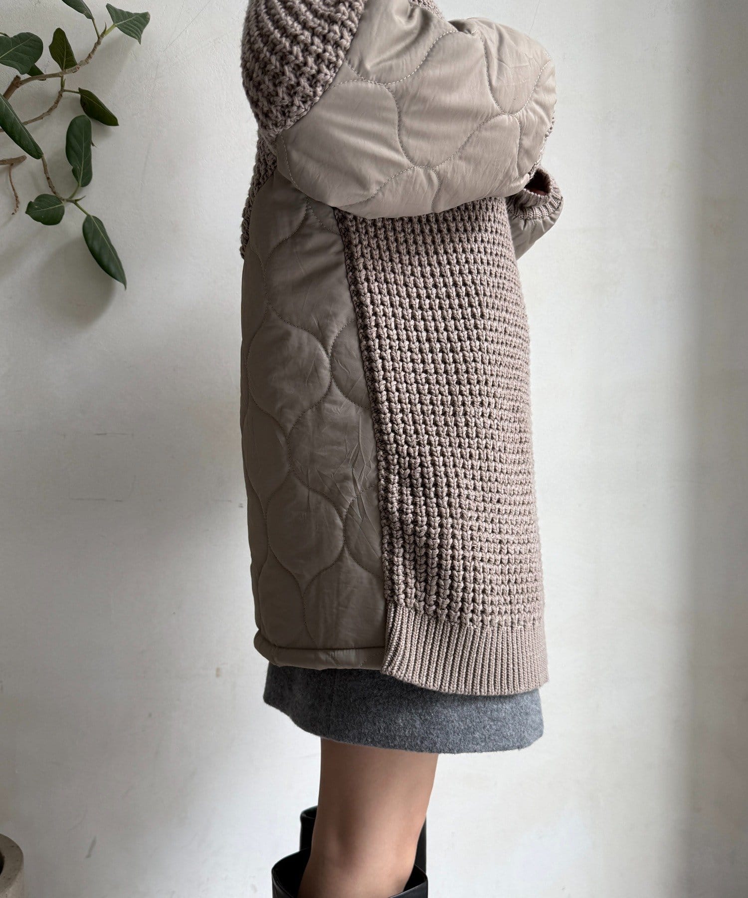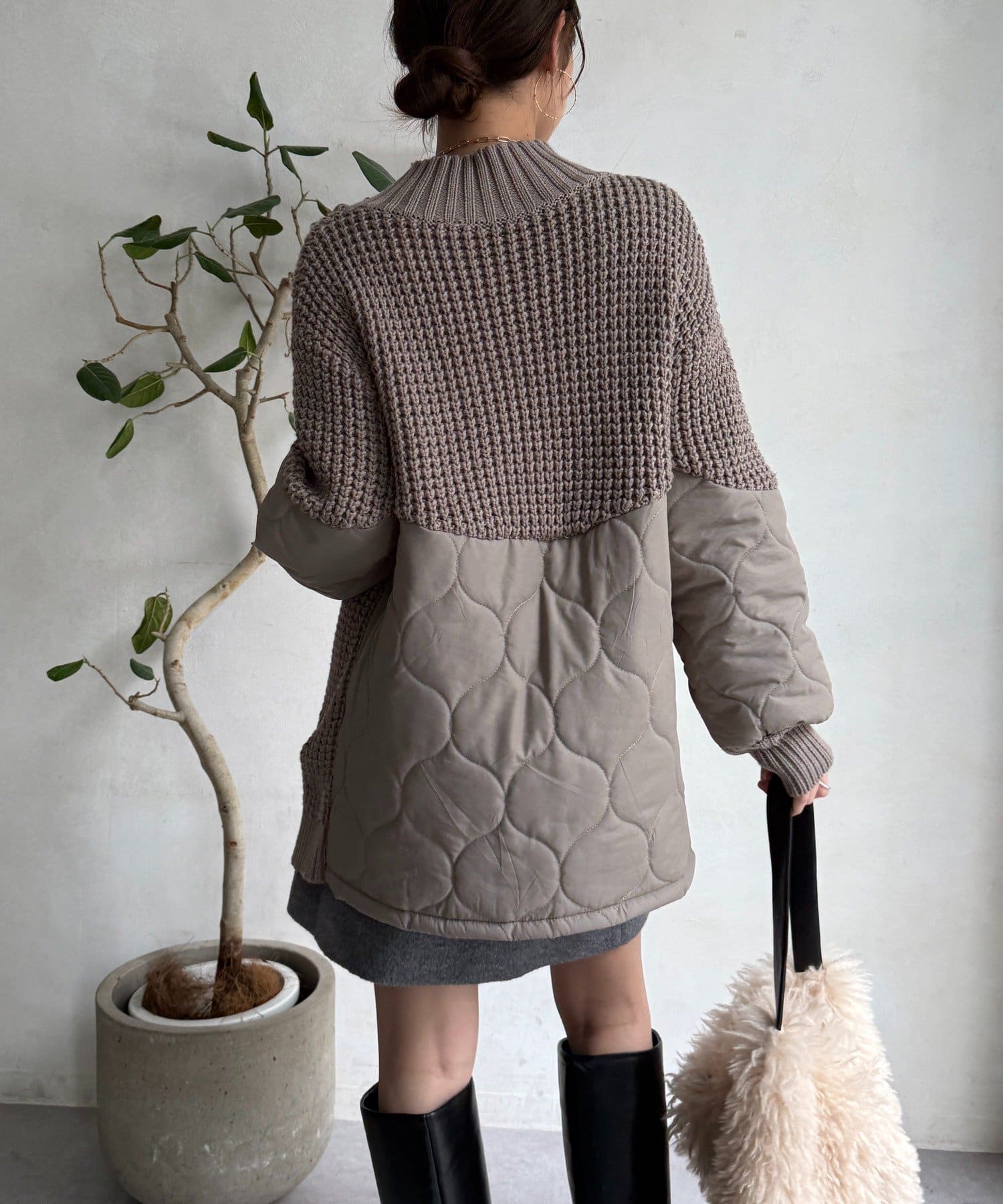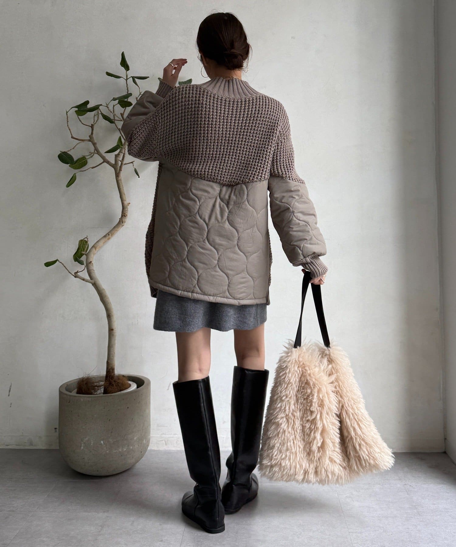 ふっくらとした暖かみのあるニットと、トレンド感溢れるキルティング素材を組み合わせた、他にないデザインが魅力的。