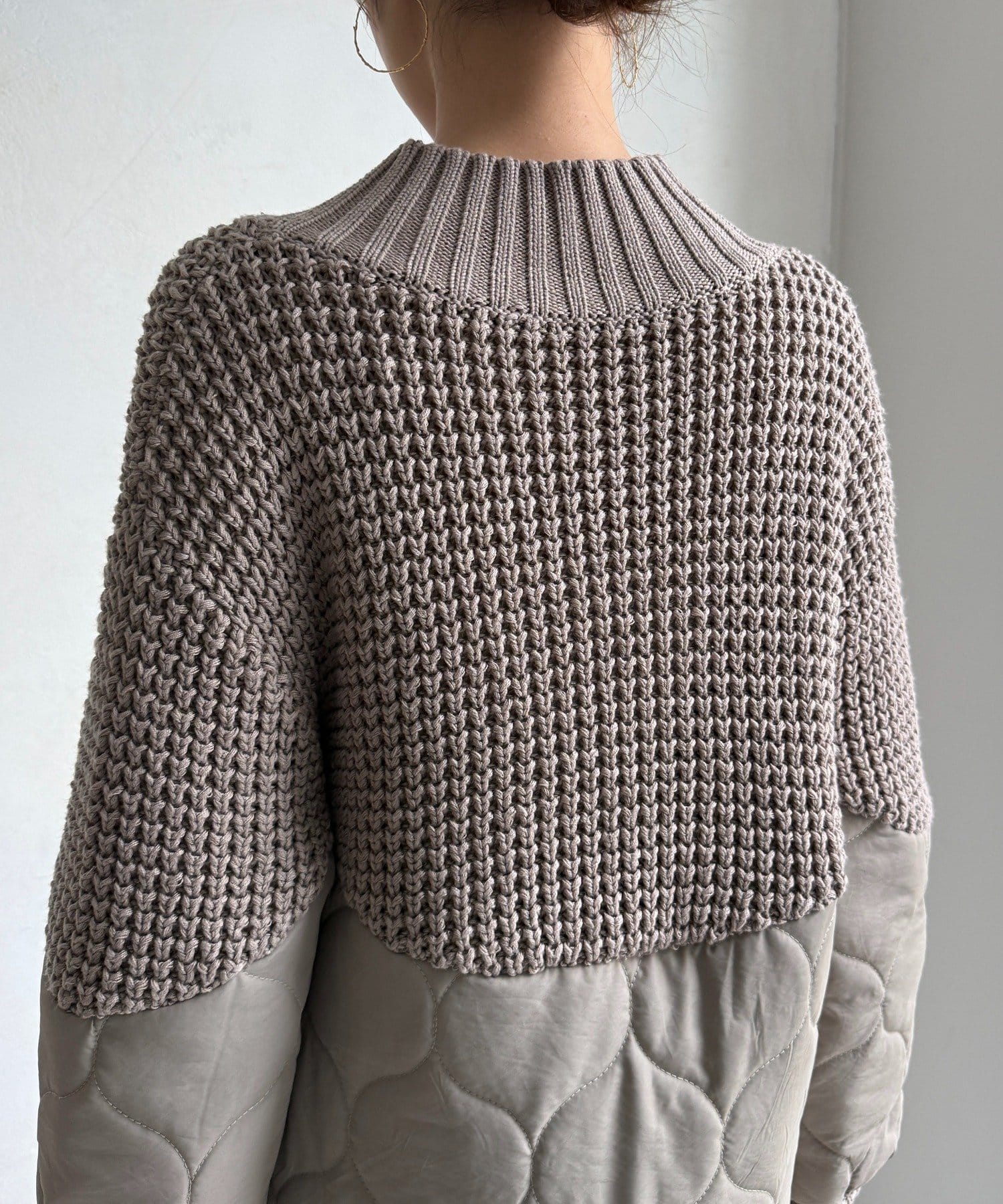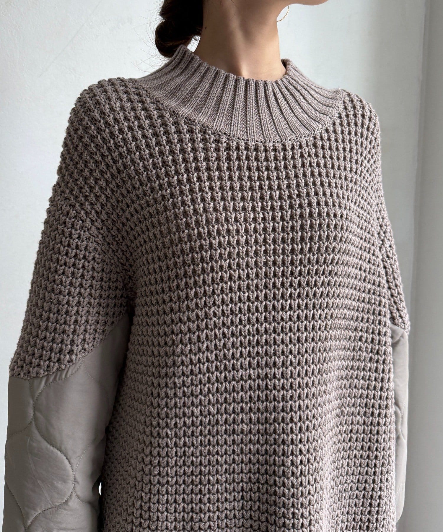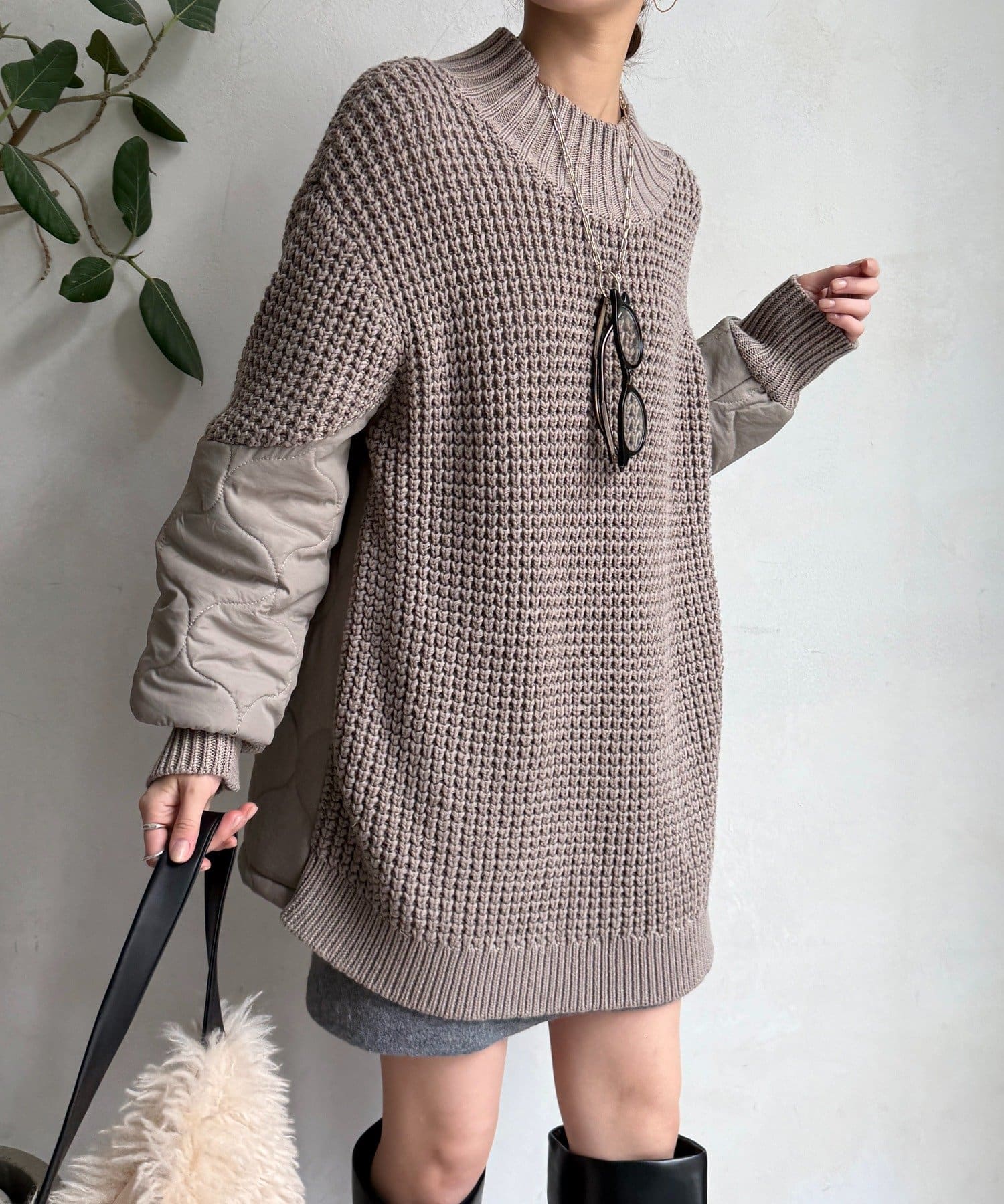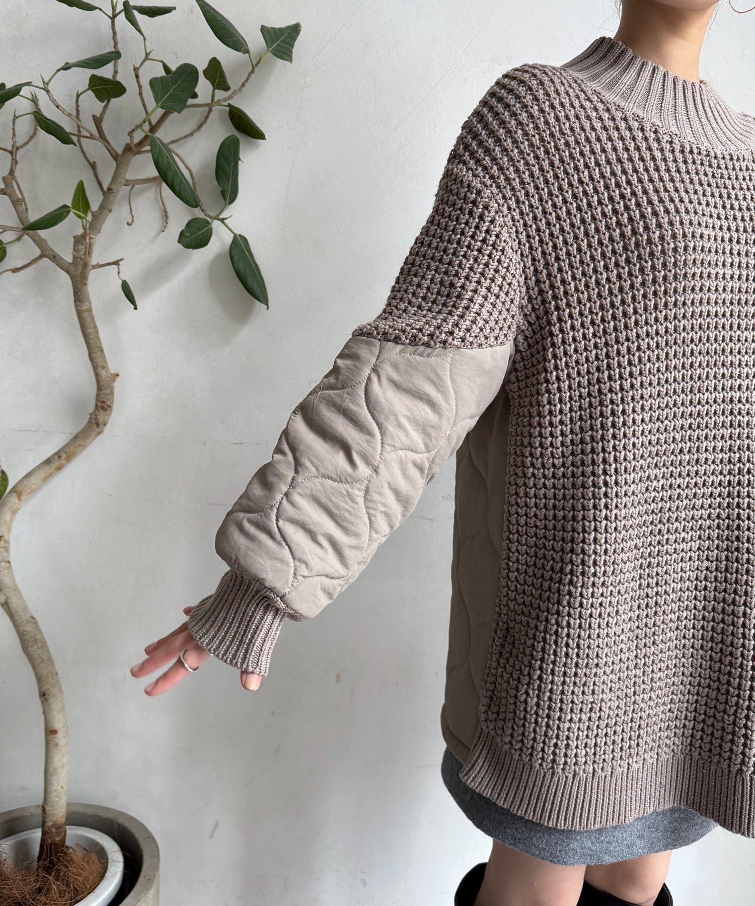 ふっくらとした暖かみのあるニットと、トレンド感溢れるキルティング素材を組み合わせた、他にないデザインが魅力的。