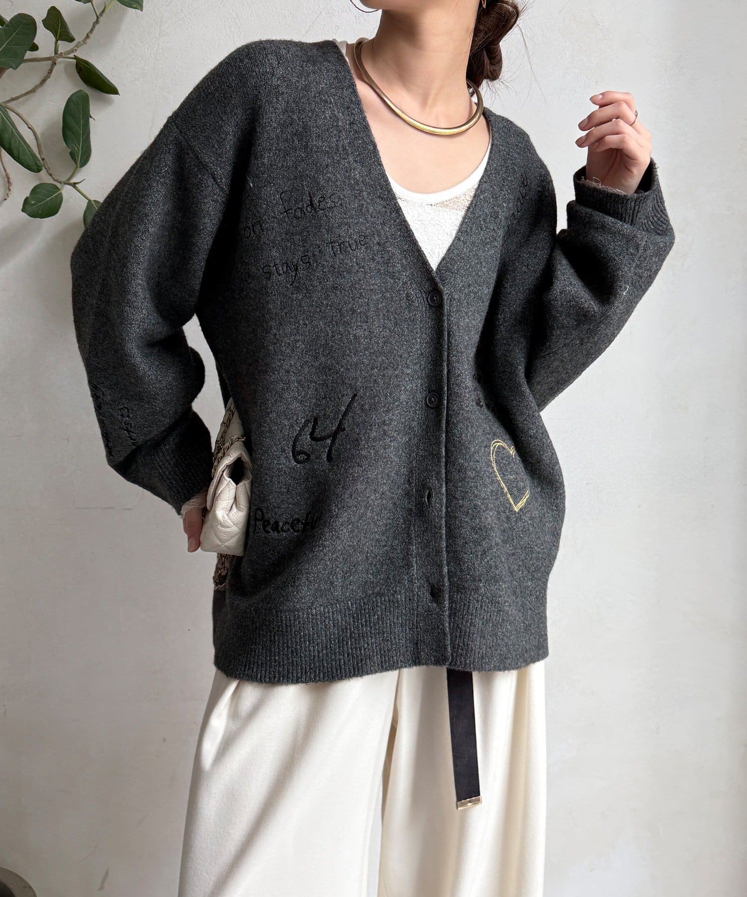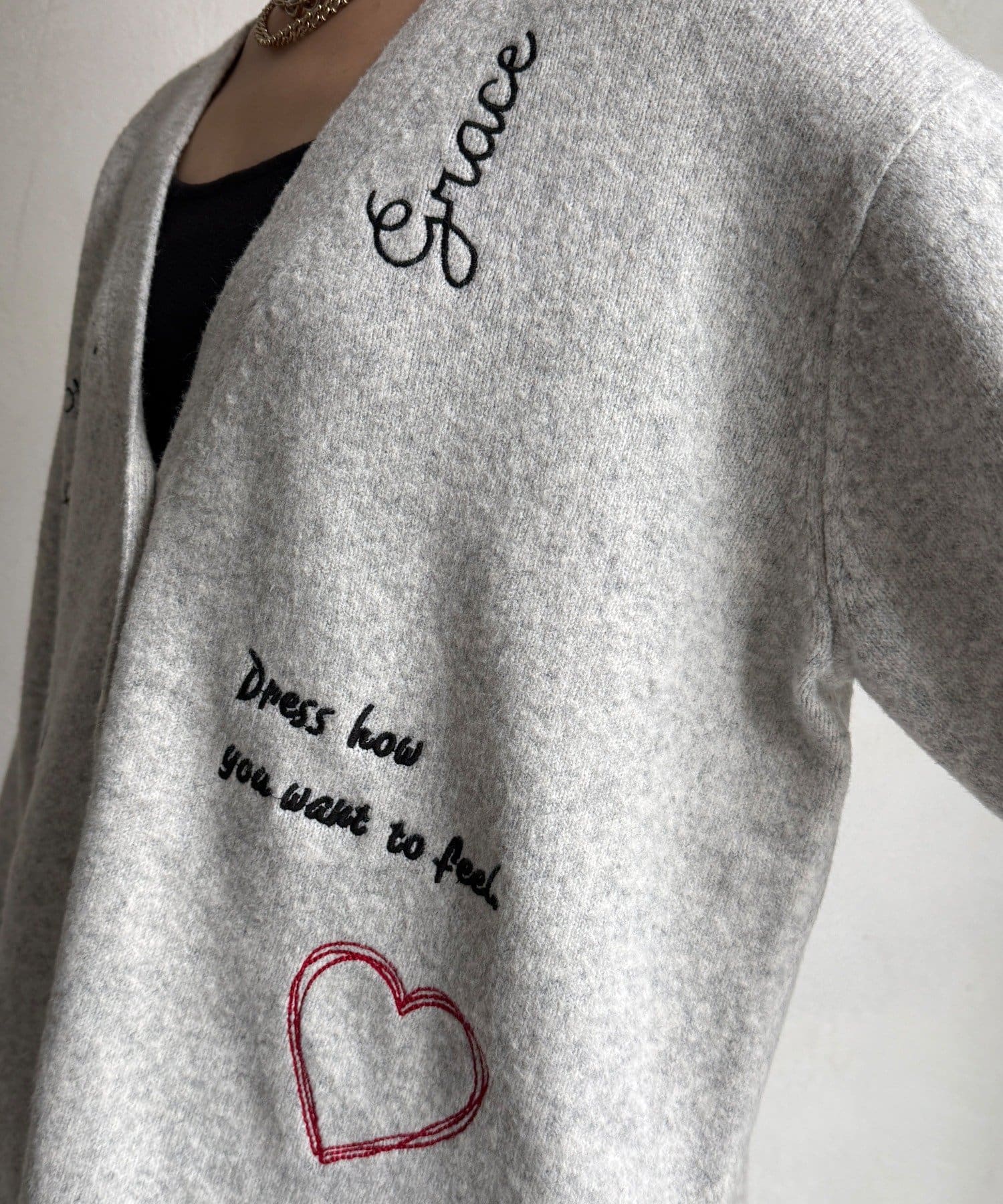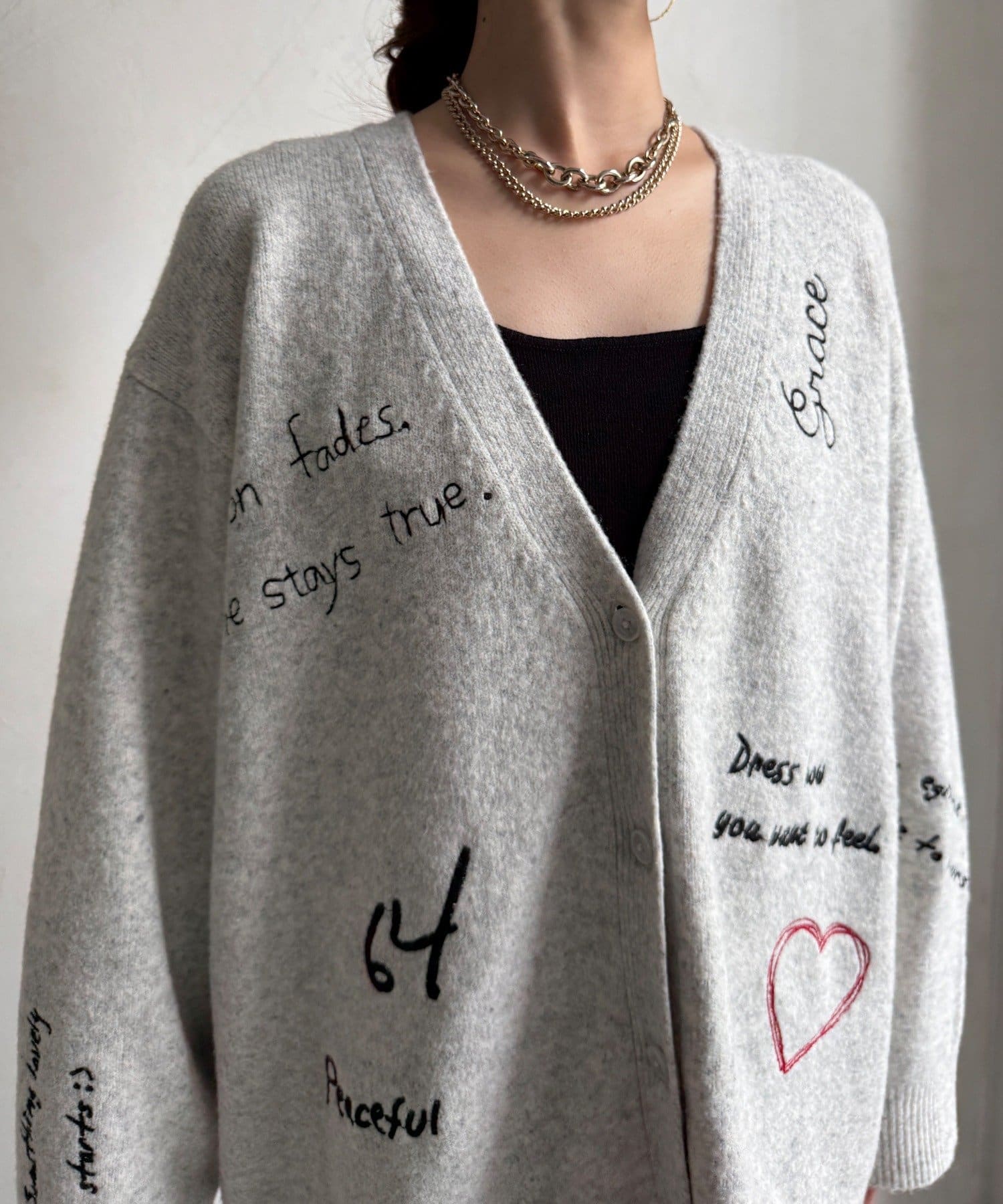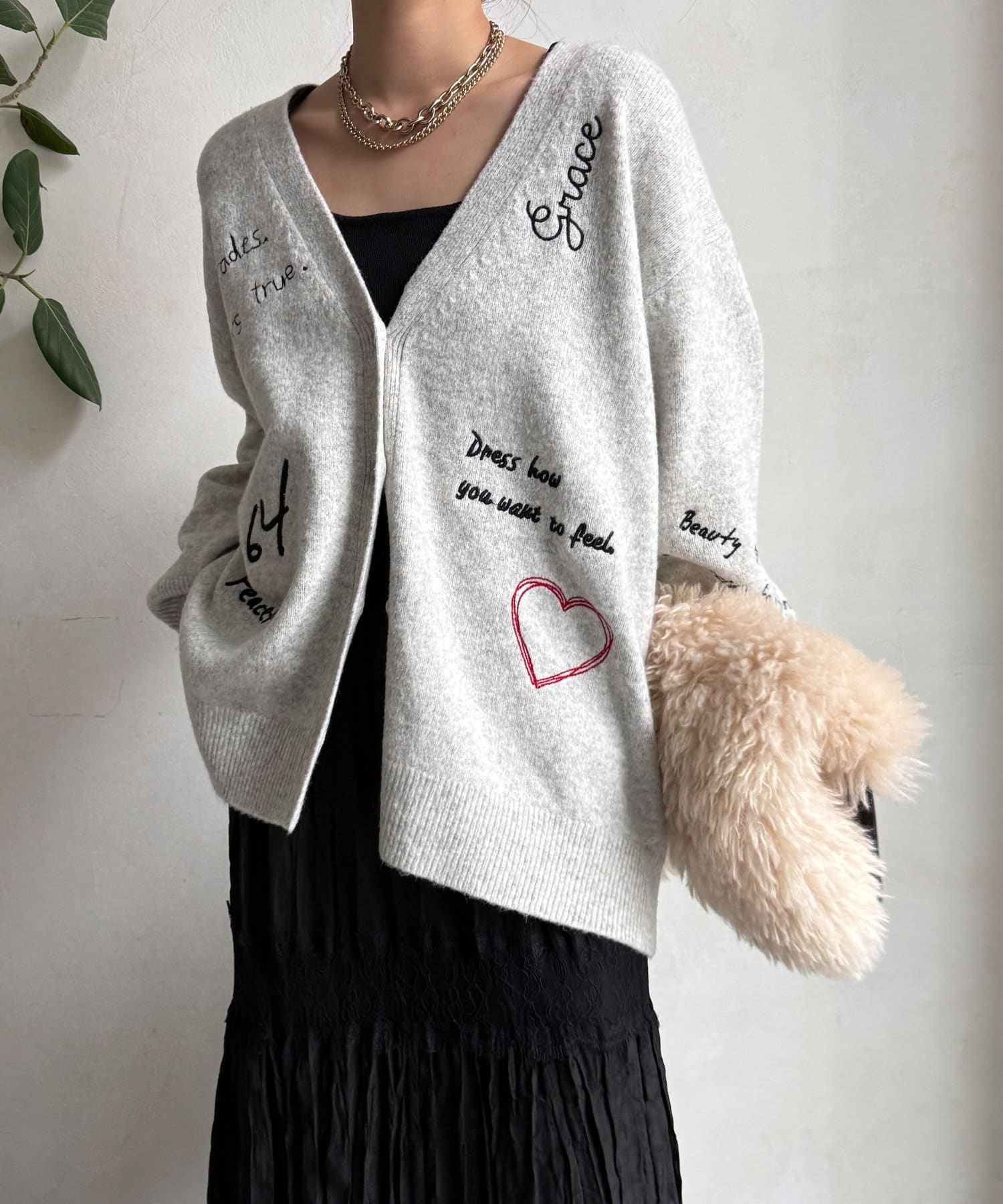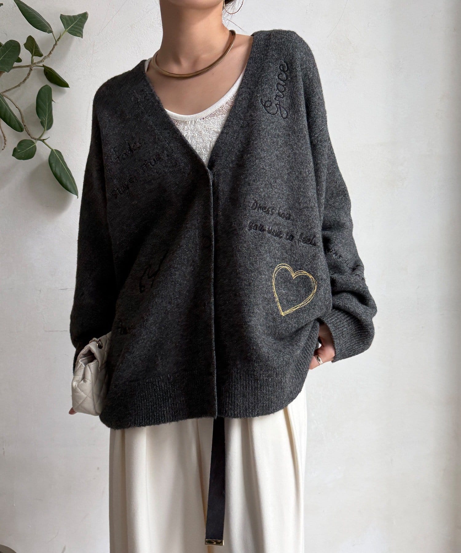 ひと目で惹かれる、遊び心。ロゴ×ハート刺繍ニットカーディガン