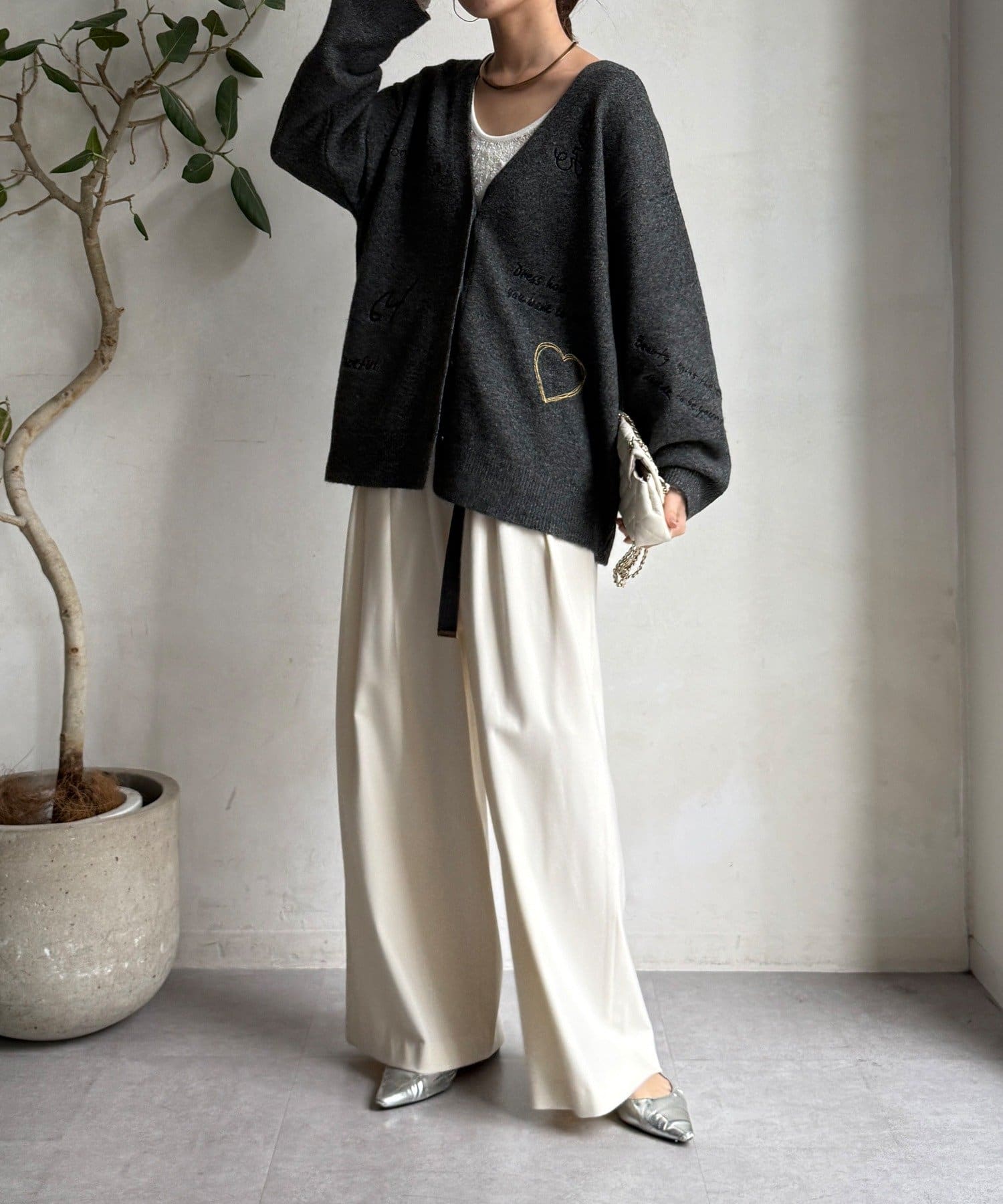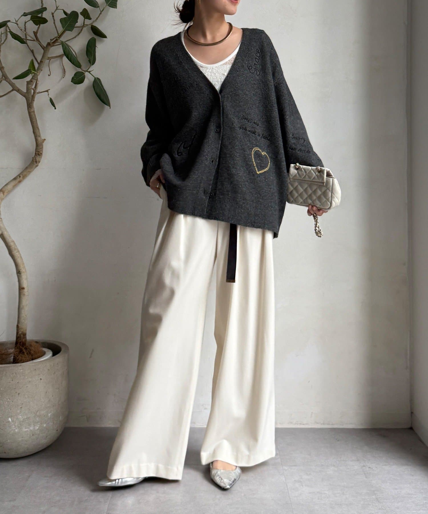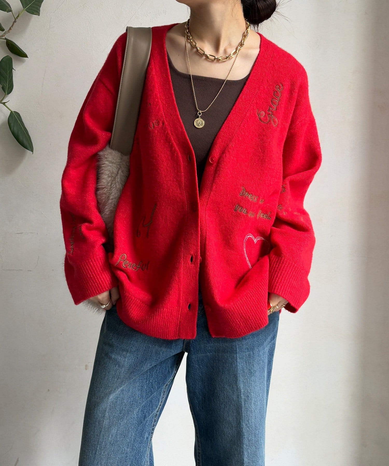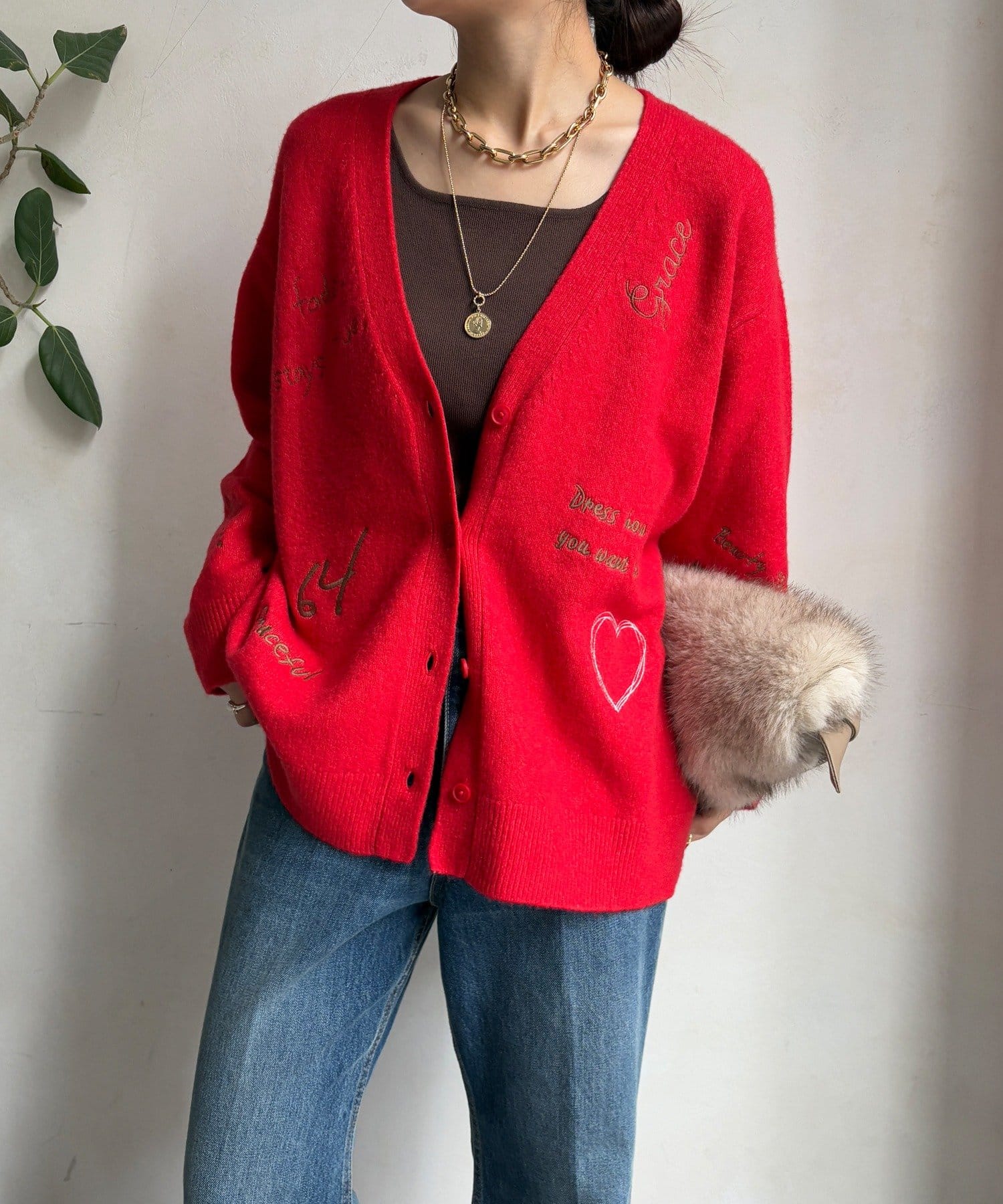 ひと目で惹かれる、遊び心。ロゴ×ハート刺繍ニットカーディガン