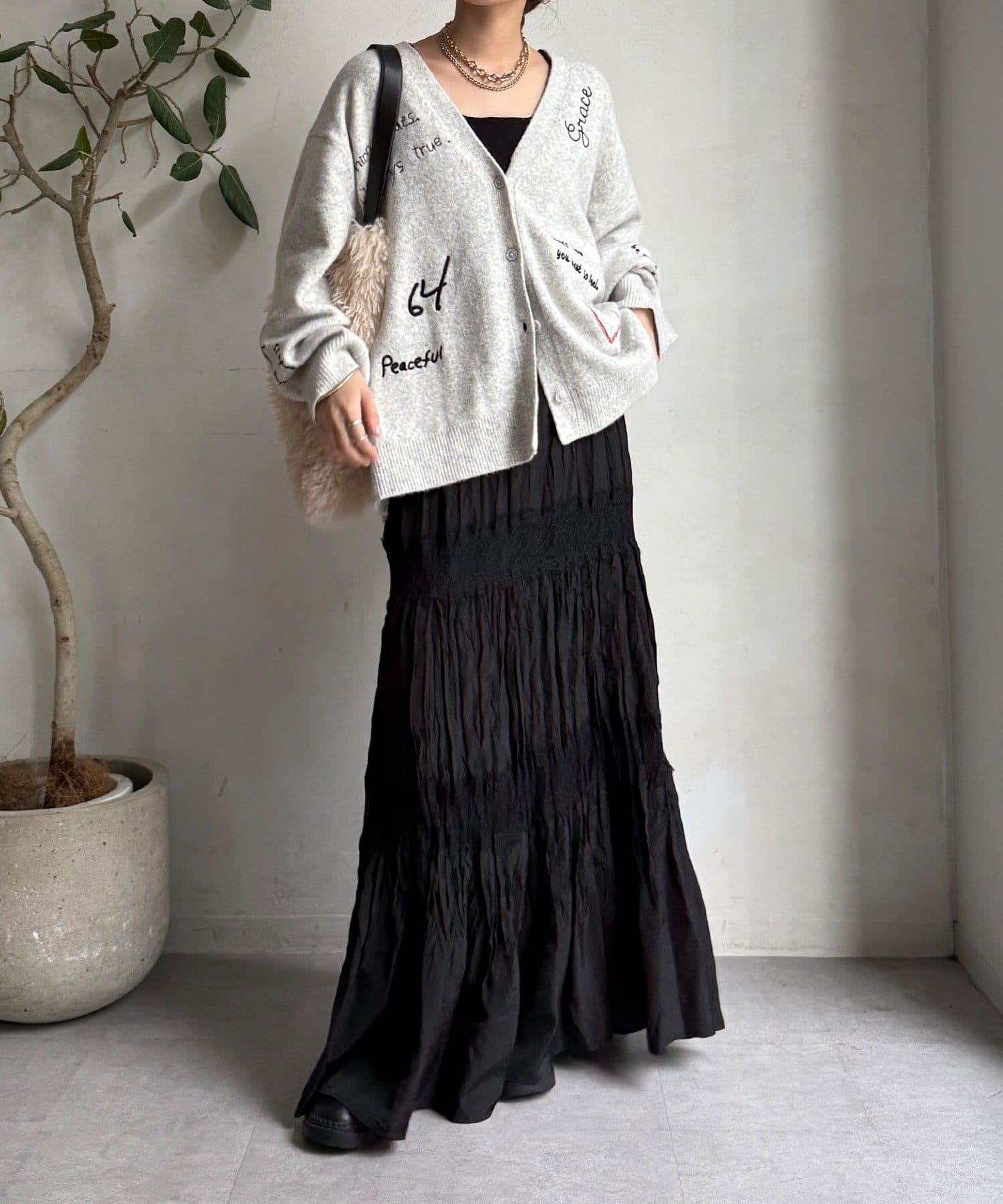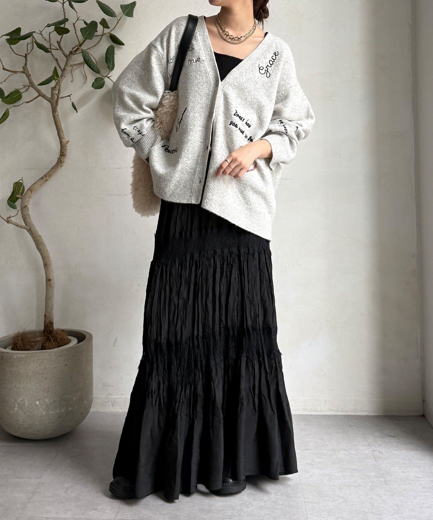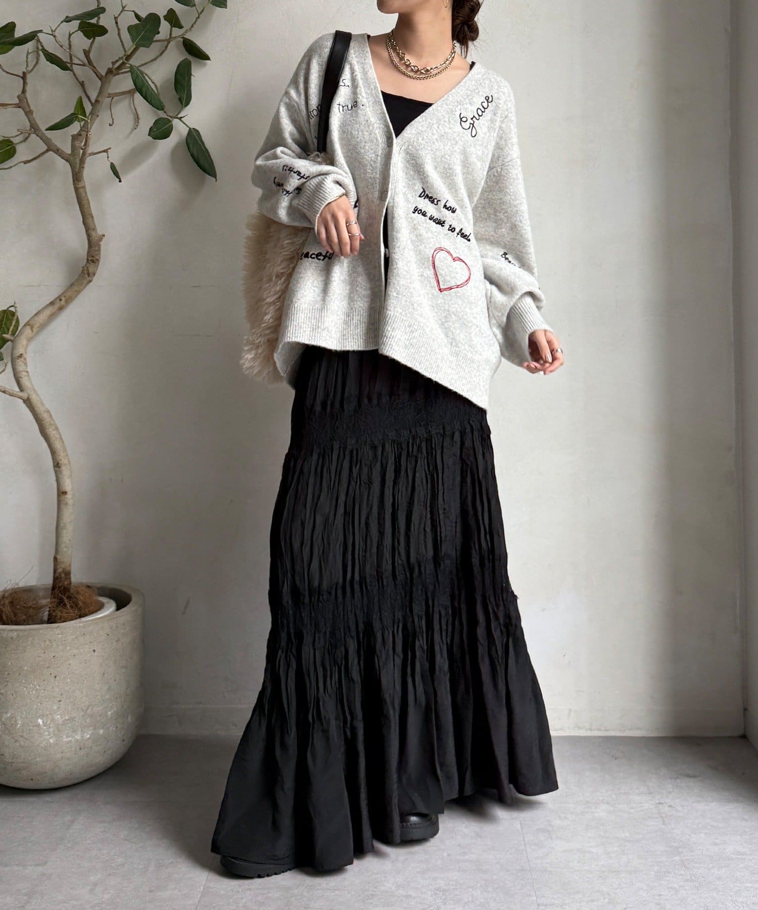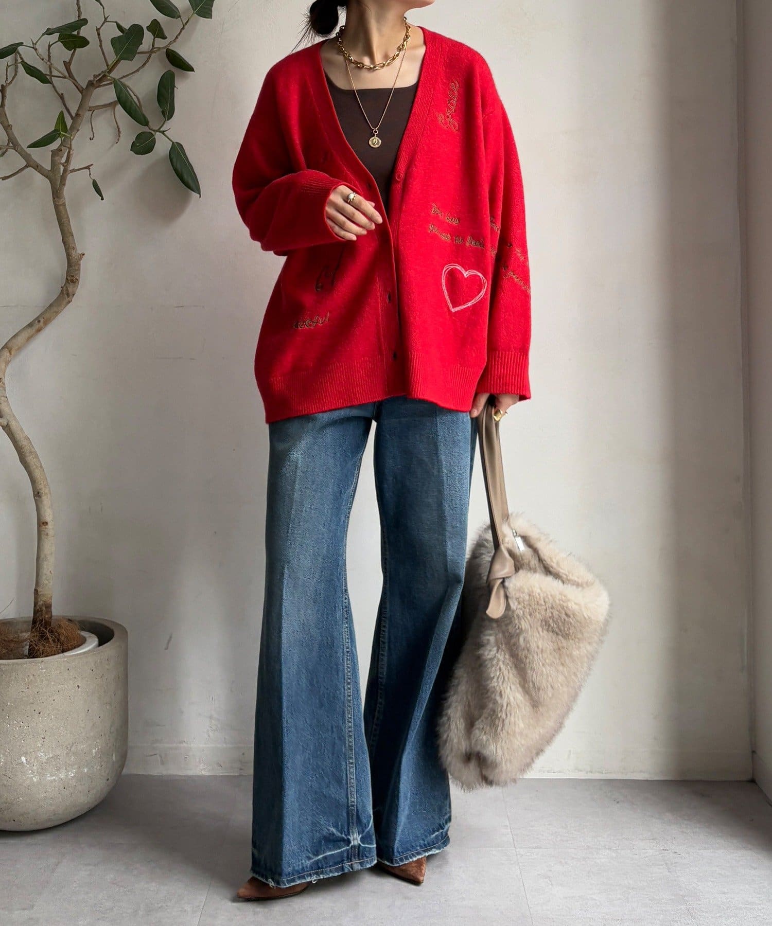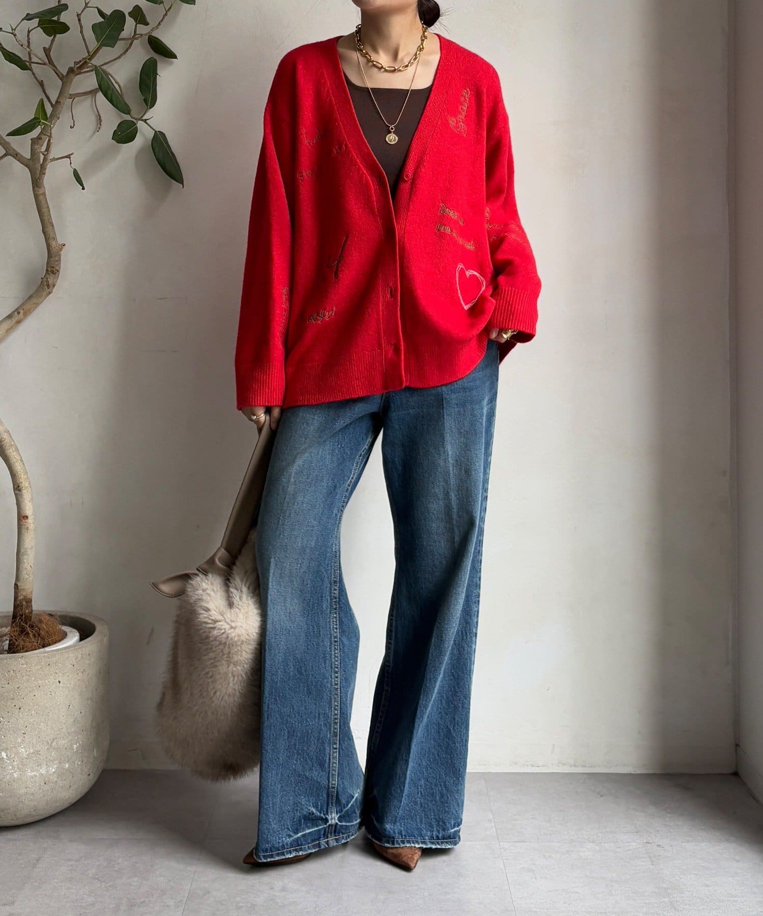 ひと目で惹かれる、遊び心。ロゴ×ハート刺繍ニットカーディガン