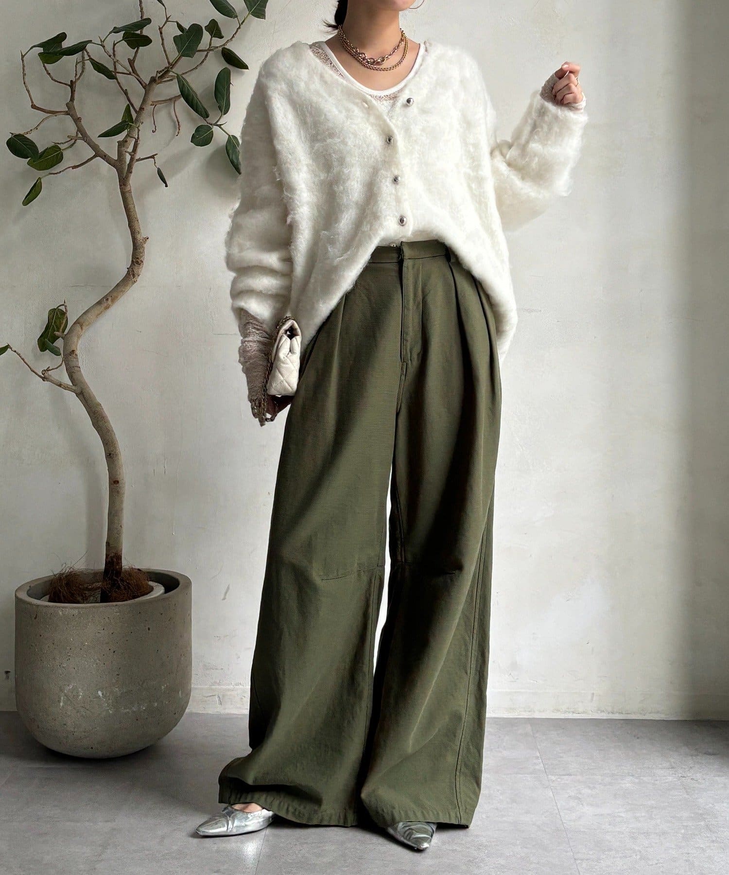 シルエットはゆったりとしたドロップショルダーで、こなれ感を演出。