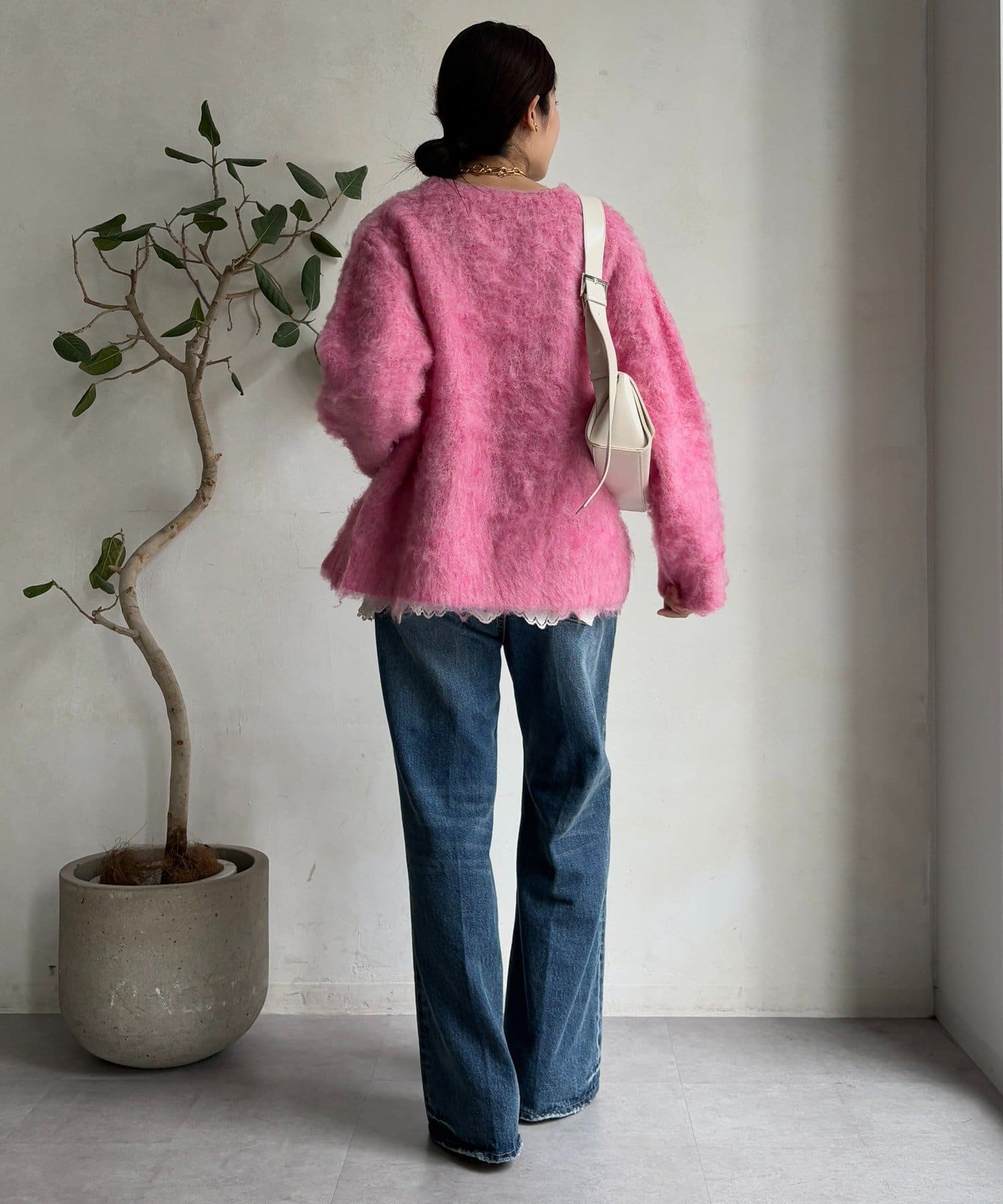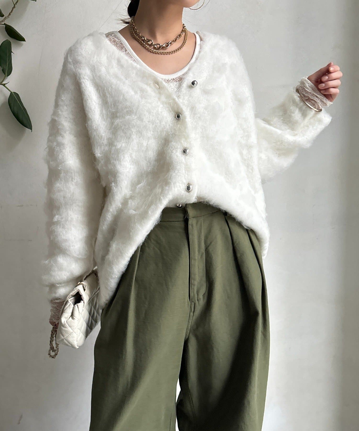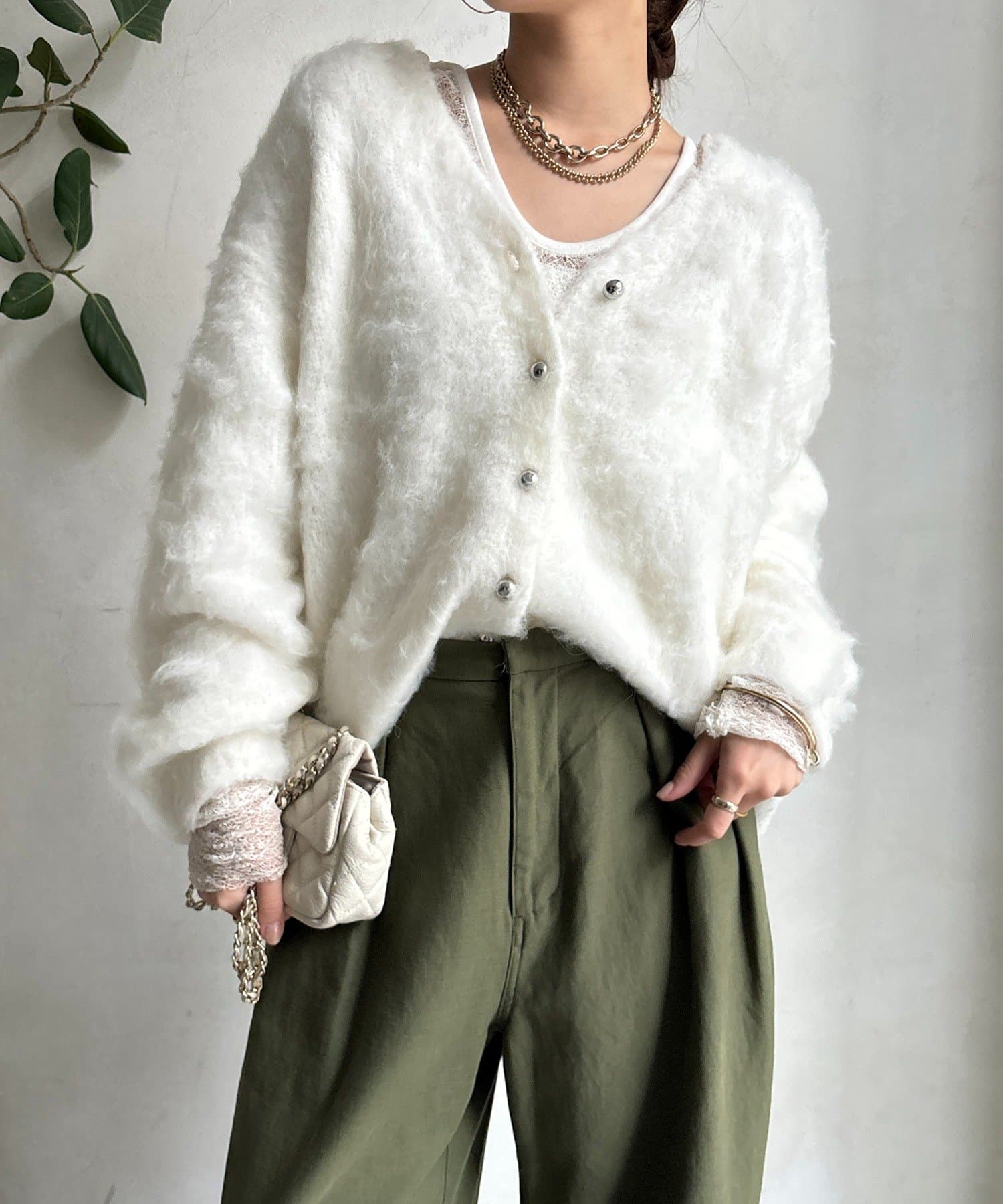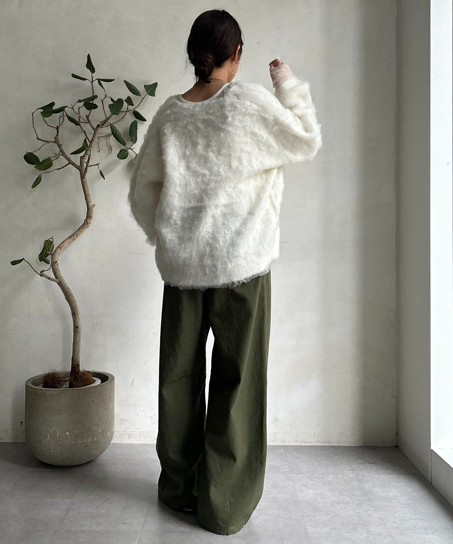 丁寧にブラッシュ加工を施した糸が、ふんわりとしたシルエットに!