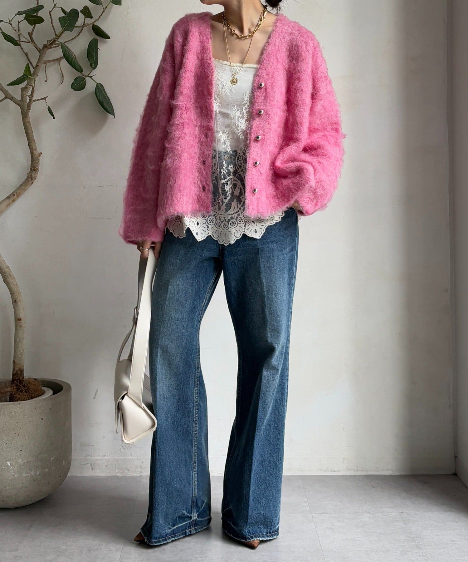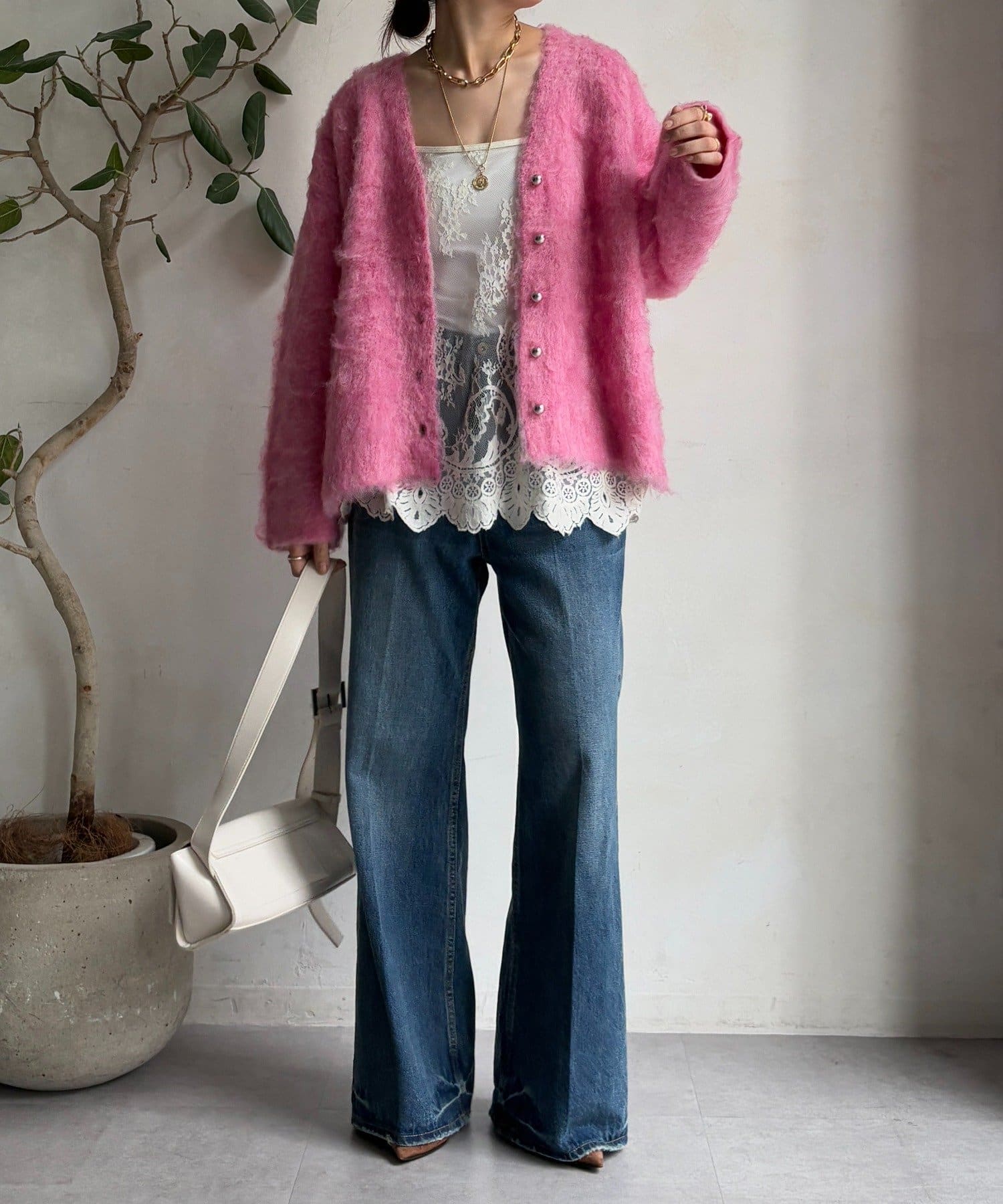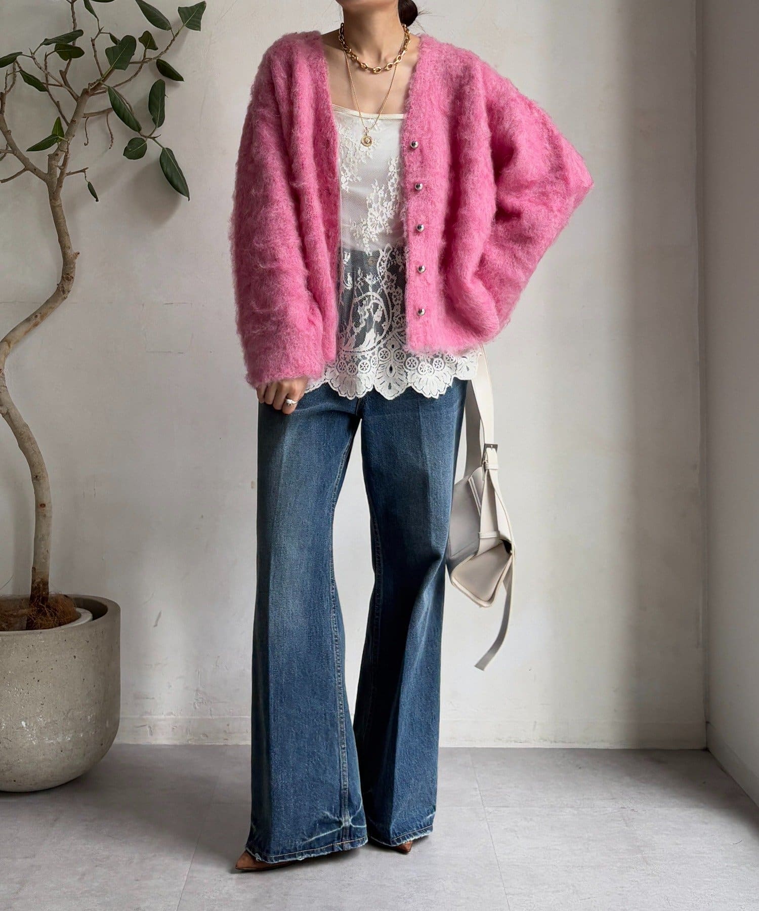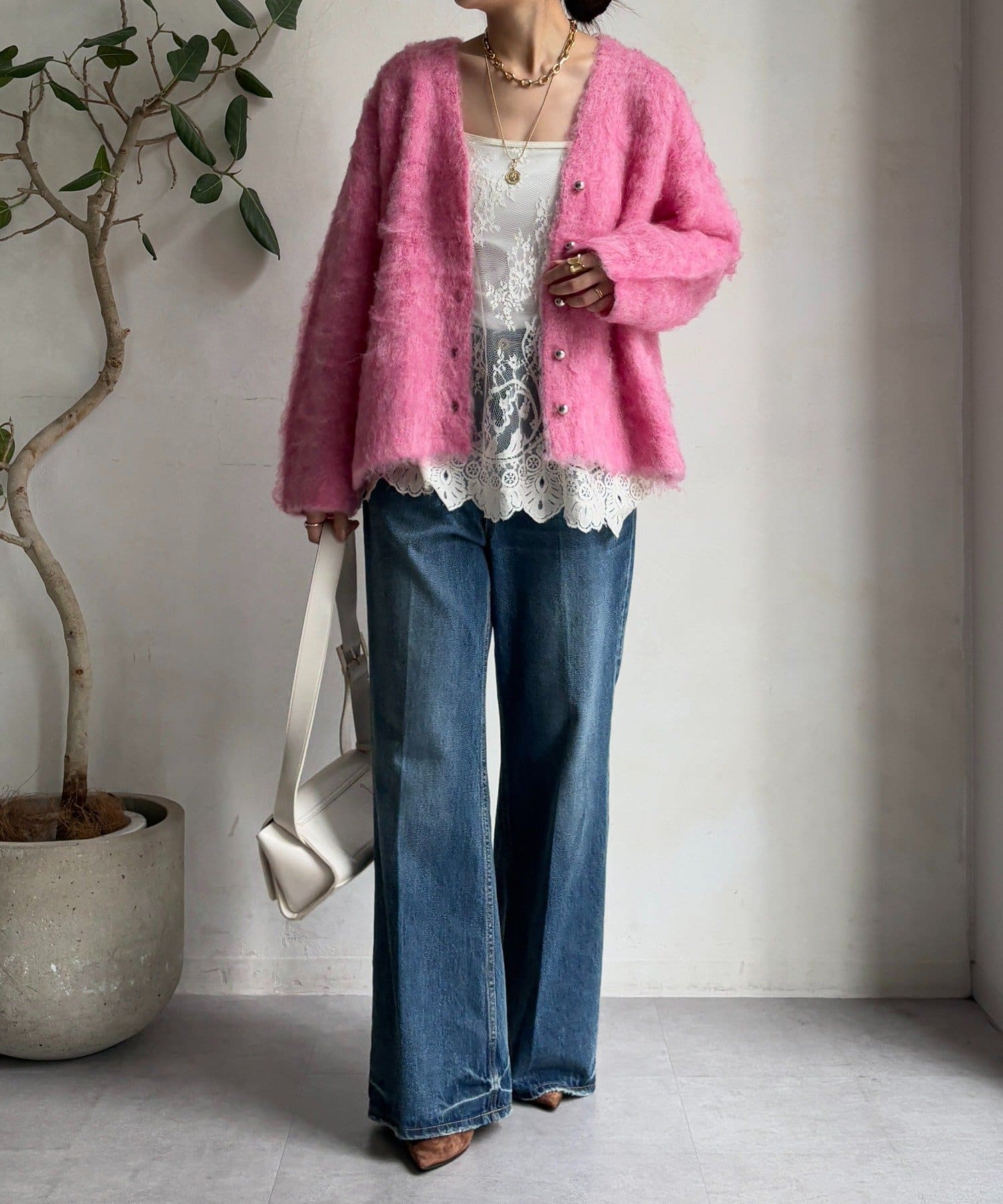 丁寧にブラッシュ加工を施した糸が、ふんわりとしたシルエットに!
