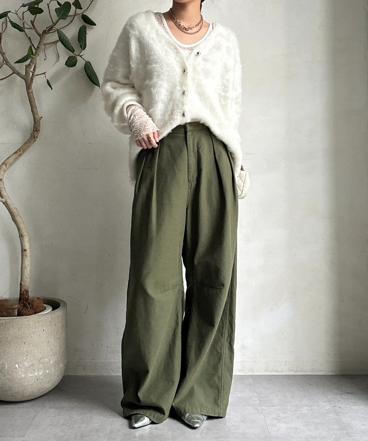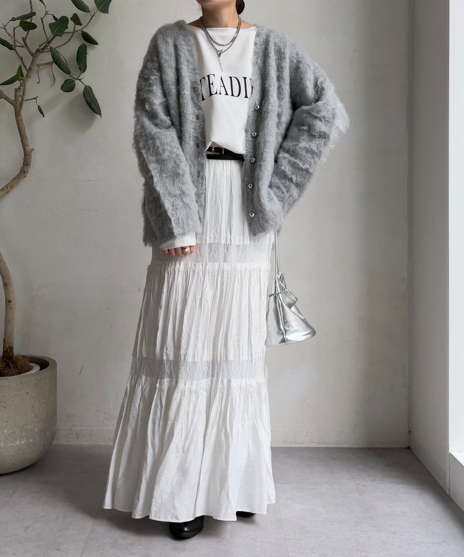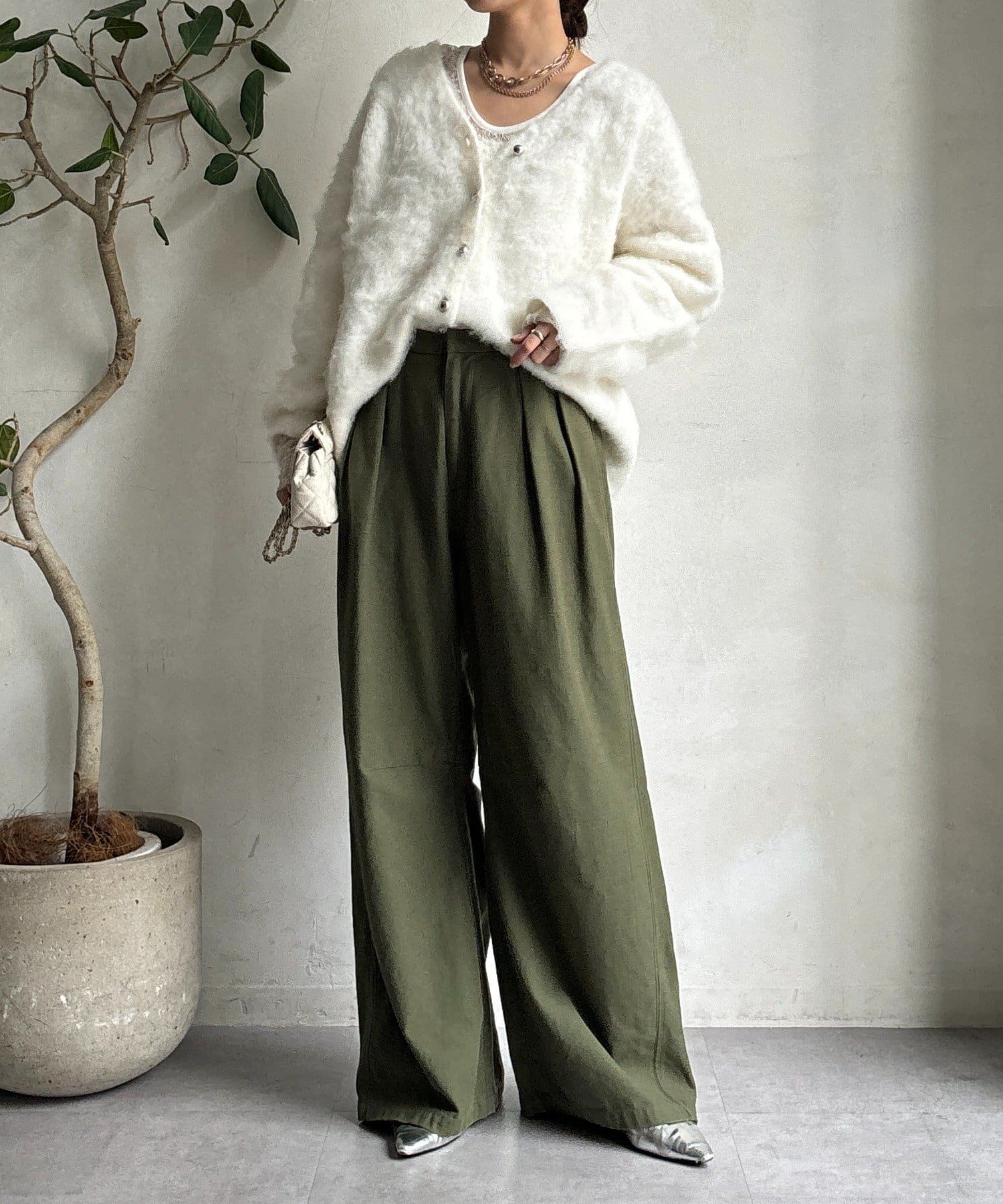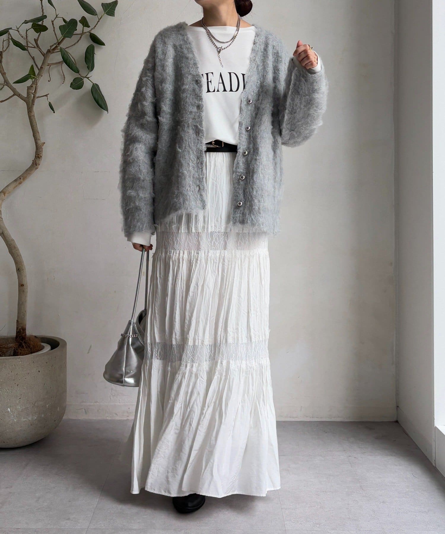 丁寧にブラッシュ加工を施した糸が、ふんわりとしたシルエットに!