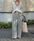 アクリルをベースにウールやナイロンを混紡することで、ふっくらとした肉感と柔らかな肌触りを実現。程よい厚みのミドルゲージの畦編みが、豊かな表情とカジュアルな雰囲気をプラスします。