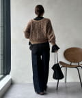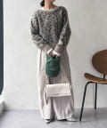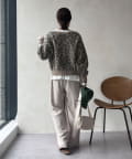 同系色でまとめ、トーンを抑えた配色と起毛素材特有の柔らかな風合いが、柄の持つエッジを優しく和らげます。