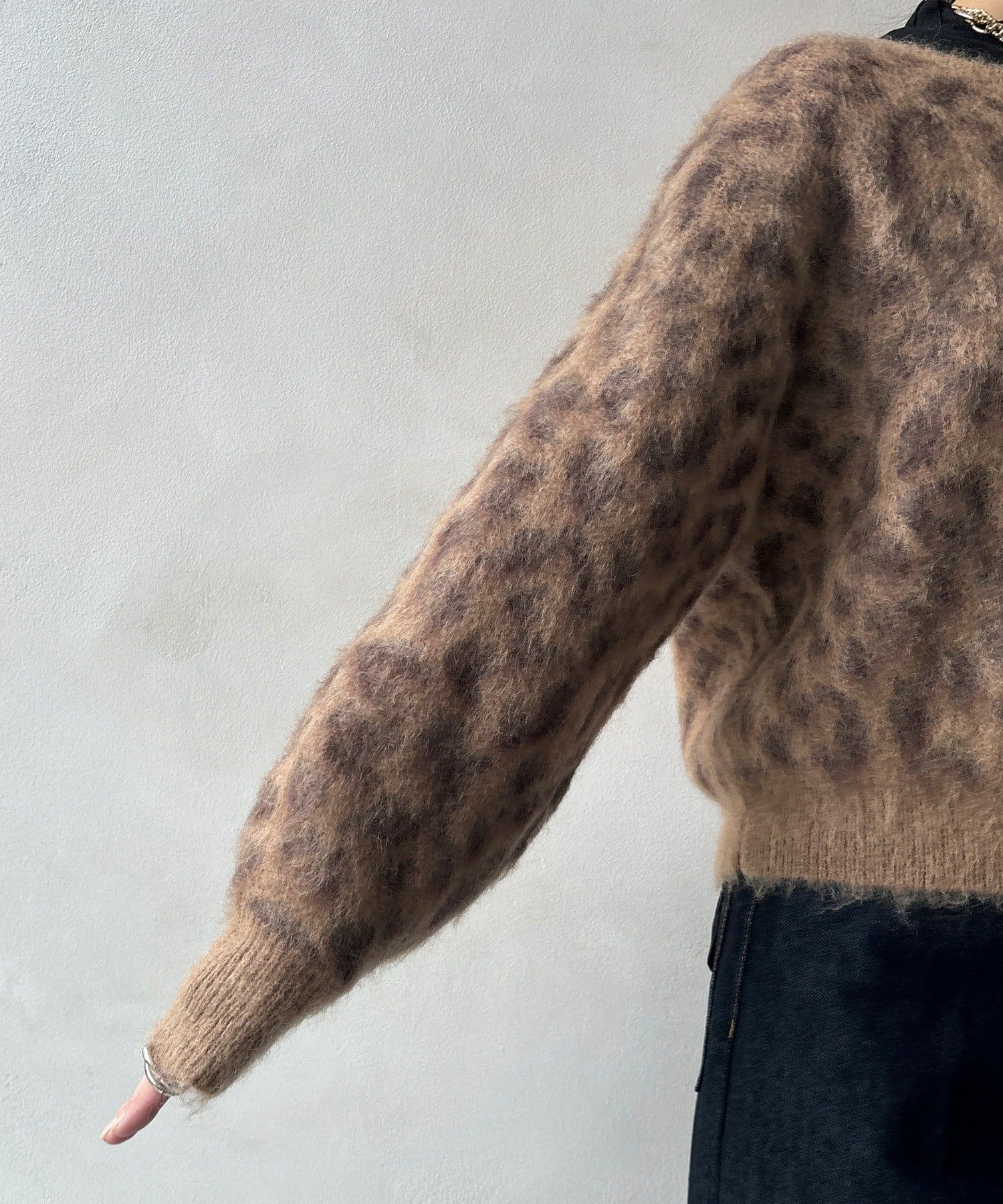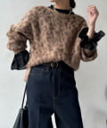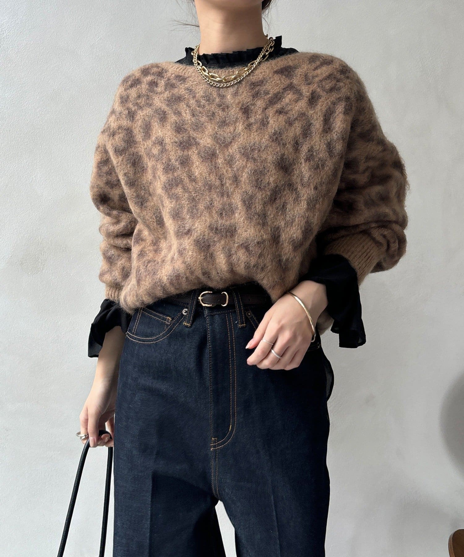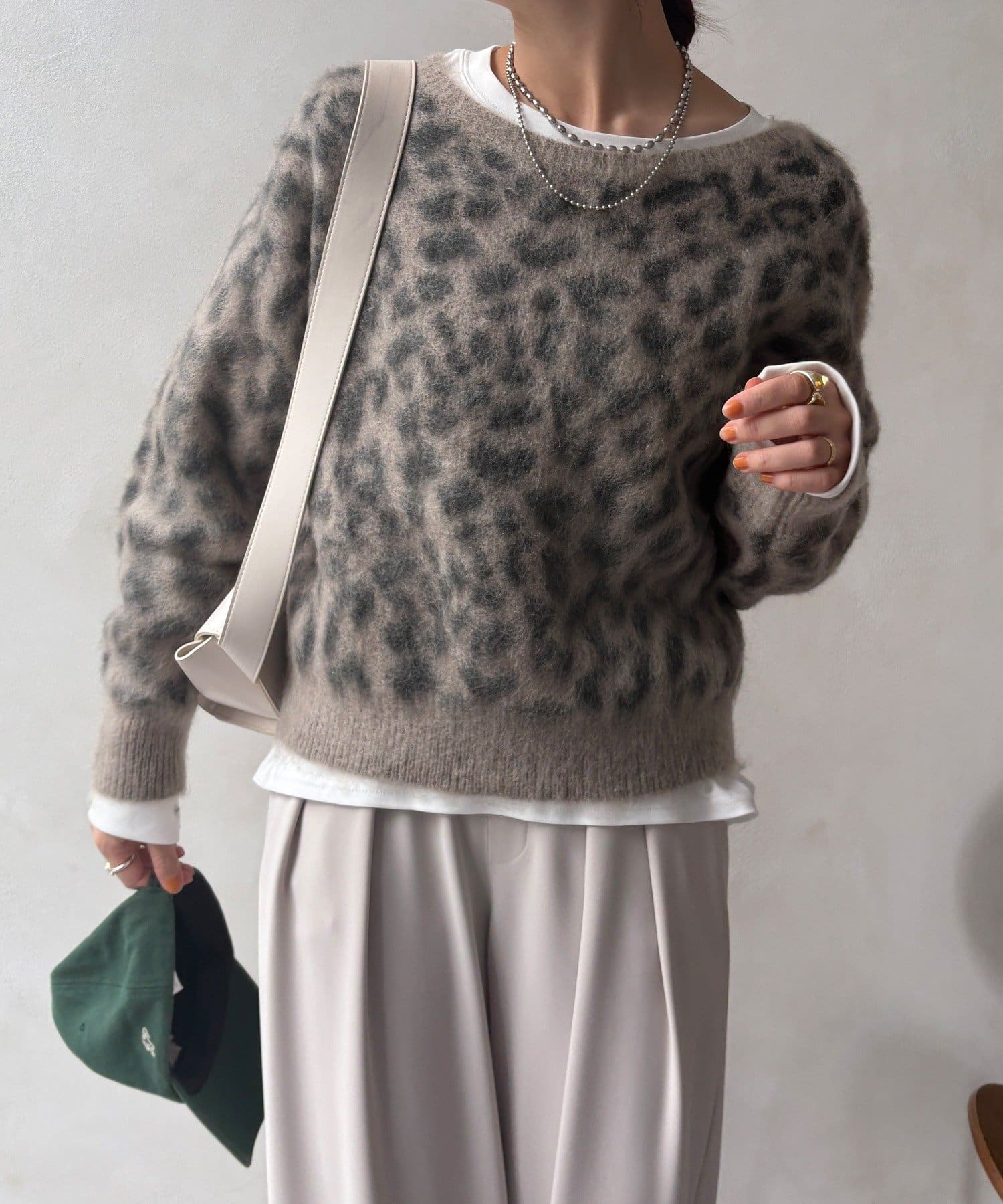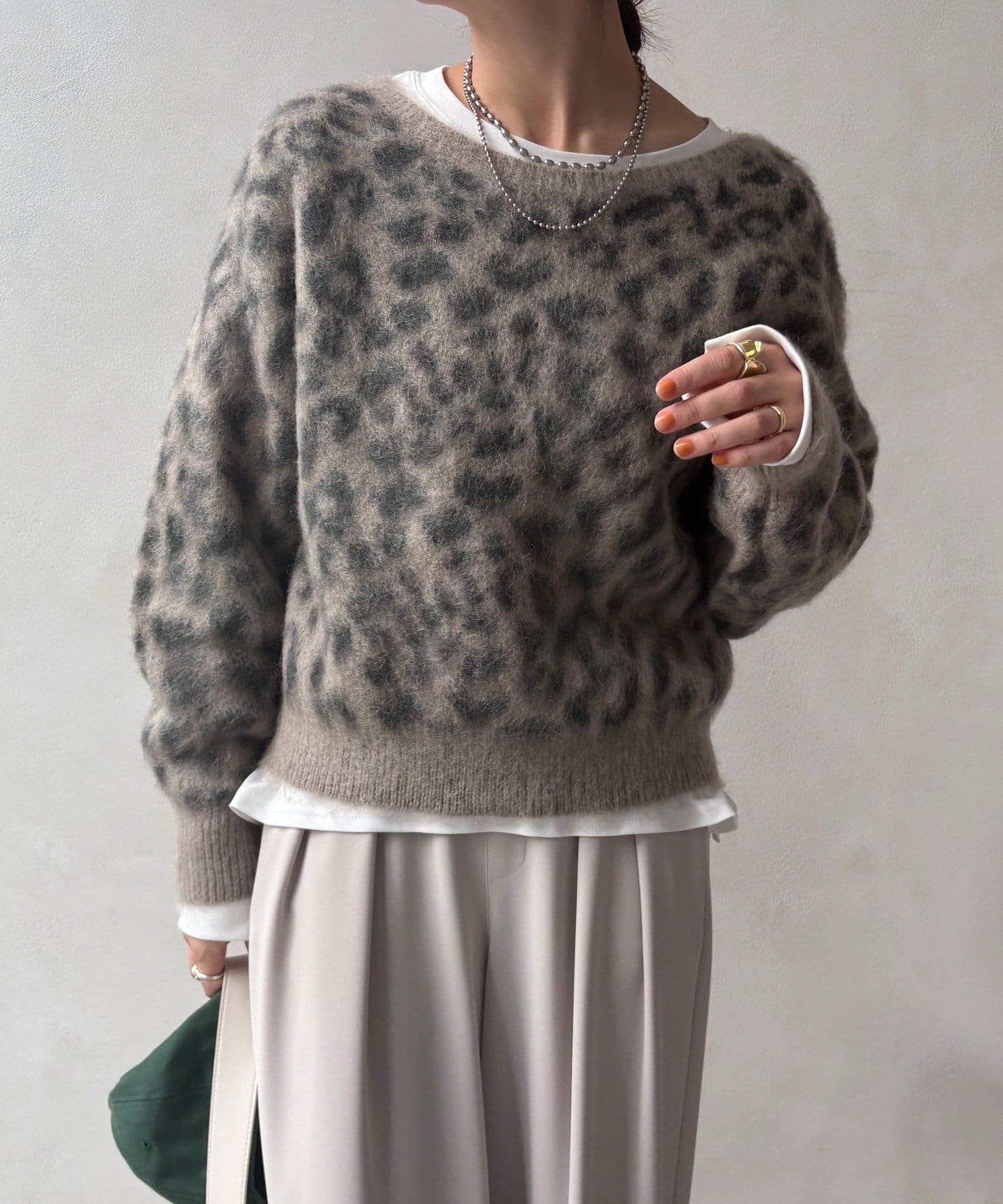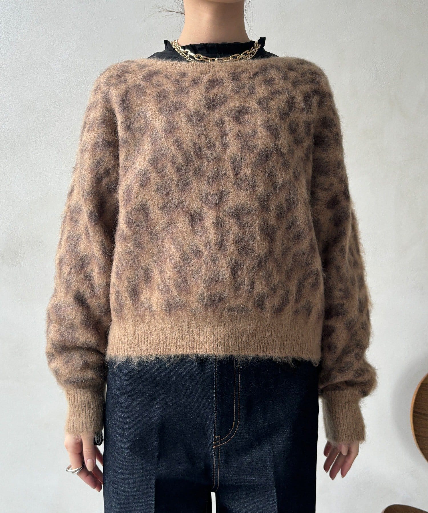 毛足の長い起毛感が、ふんわりと暖かなレオパード柄ニットプルオーバー。
