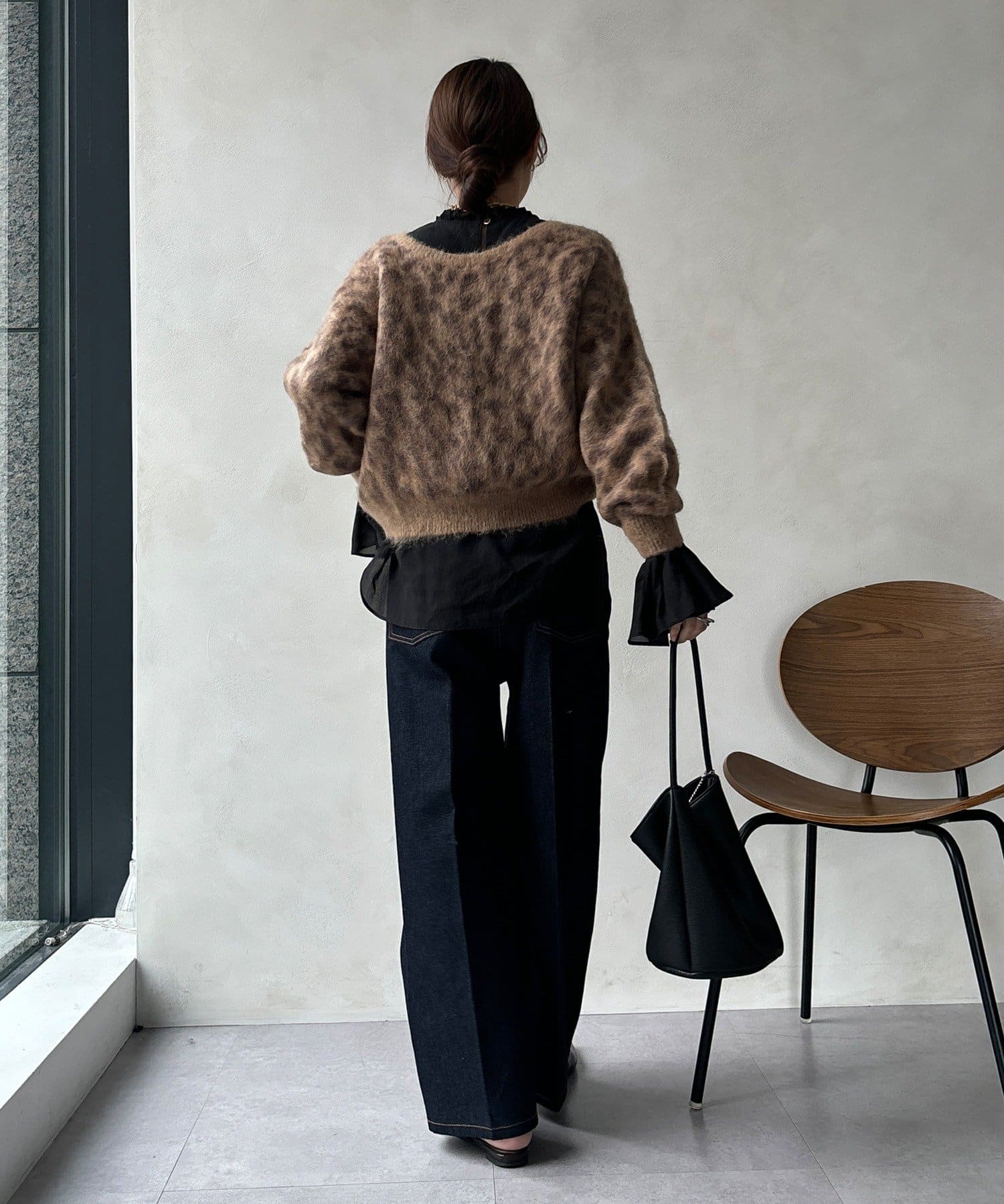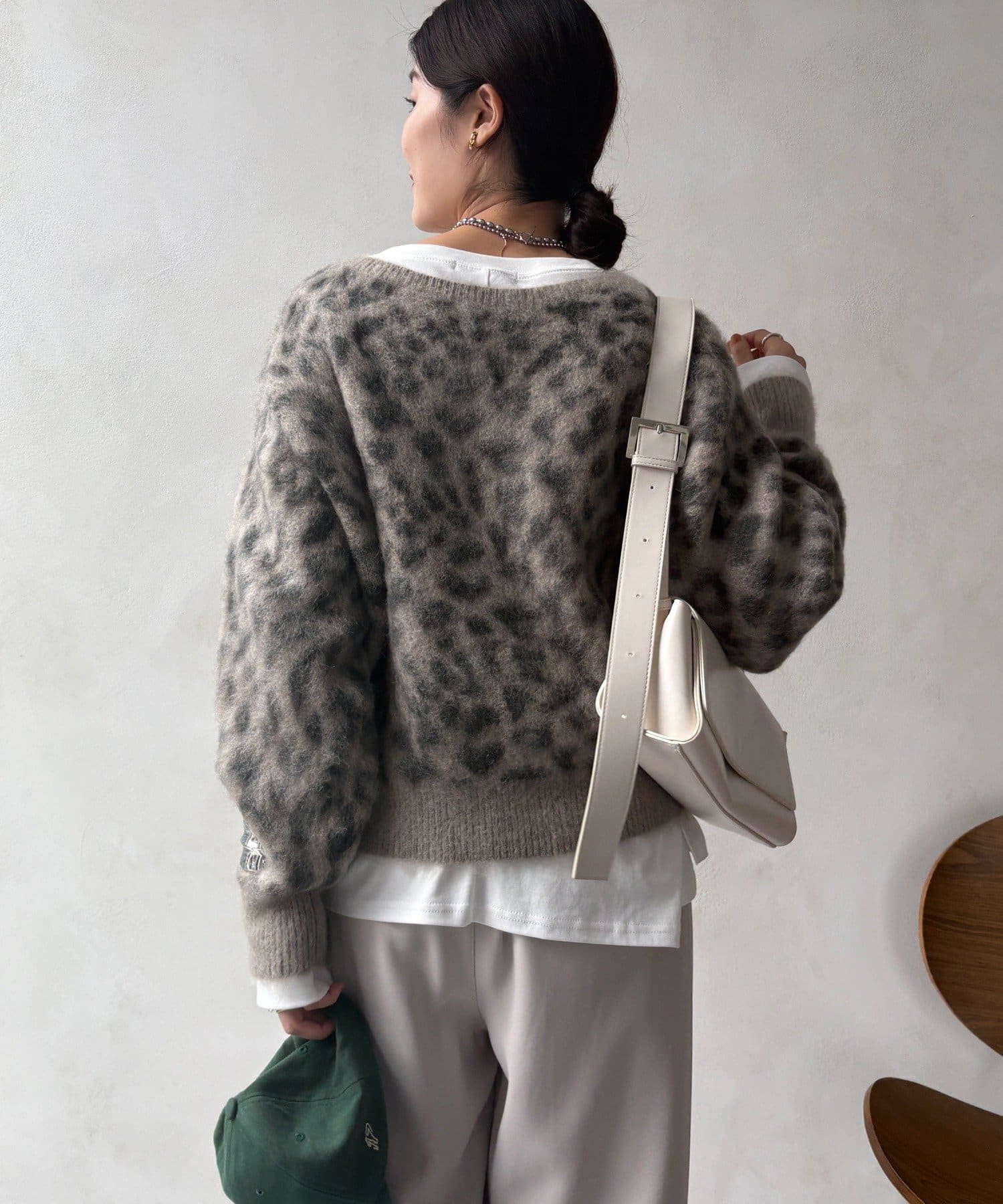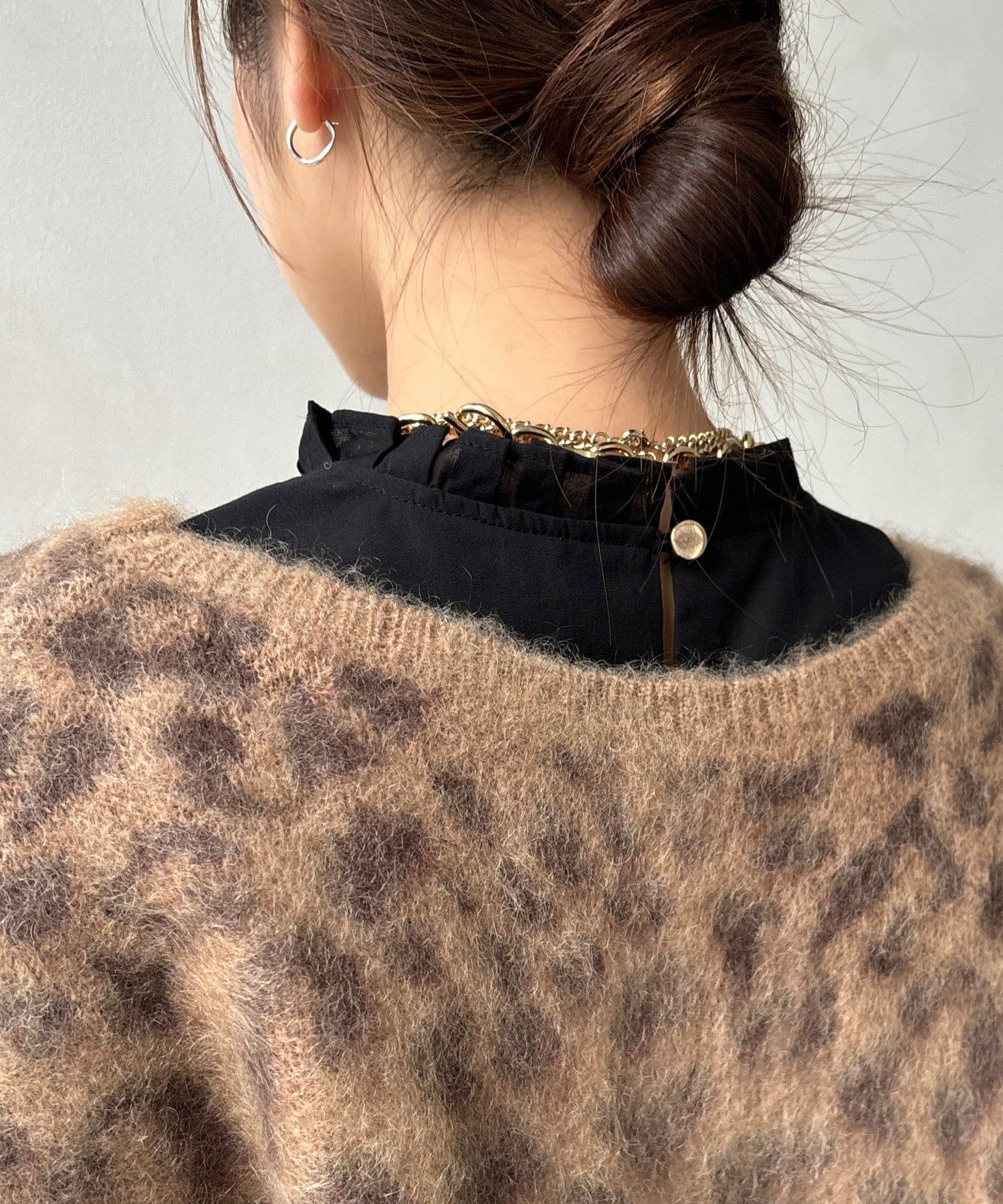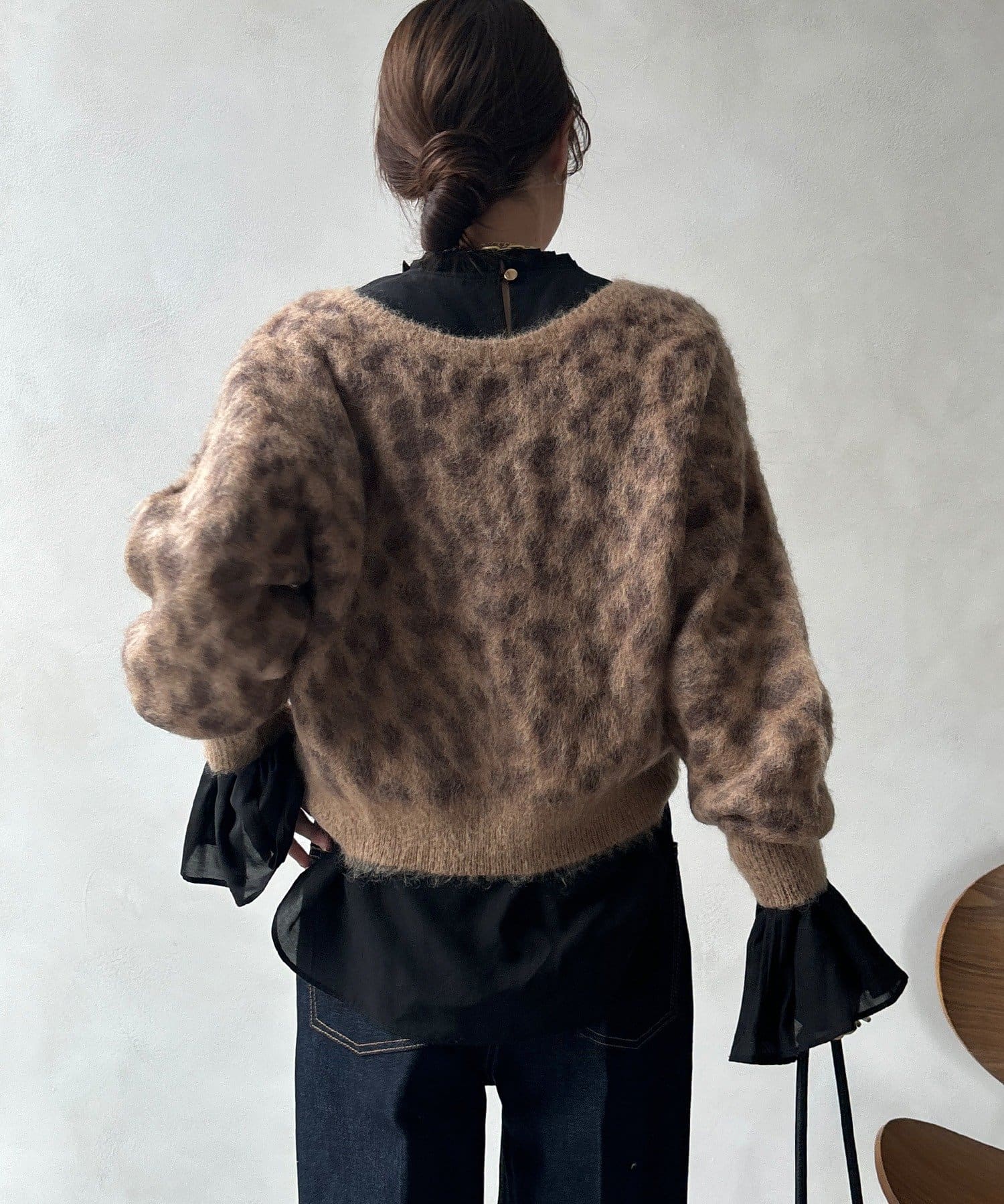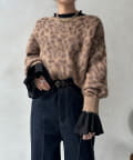 毛足の長い起毛感が、ふんわりと暖かなレオパード柄ニットプルオーバー。