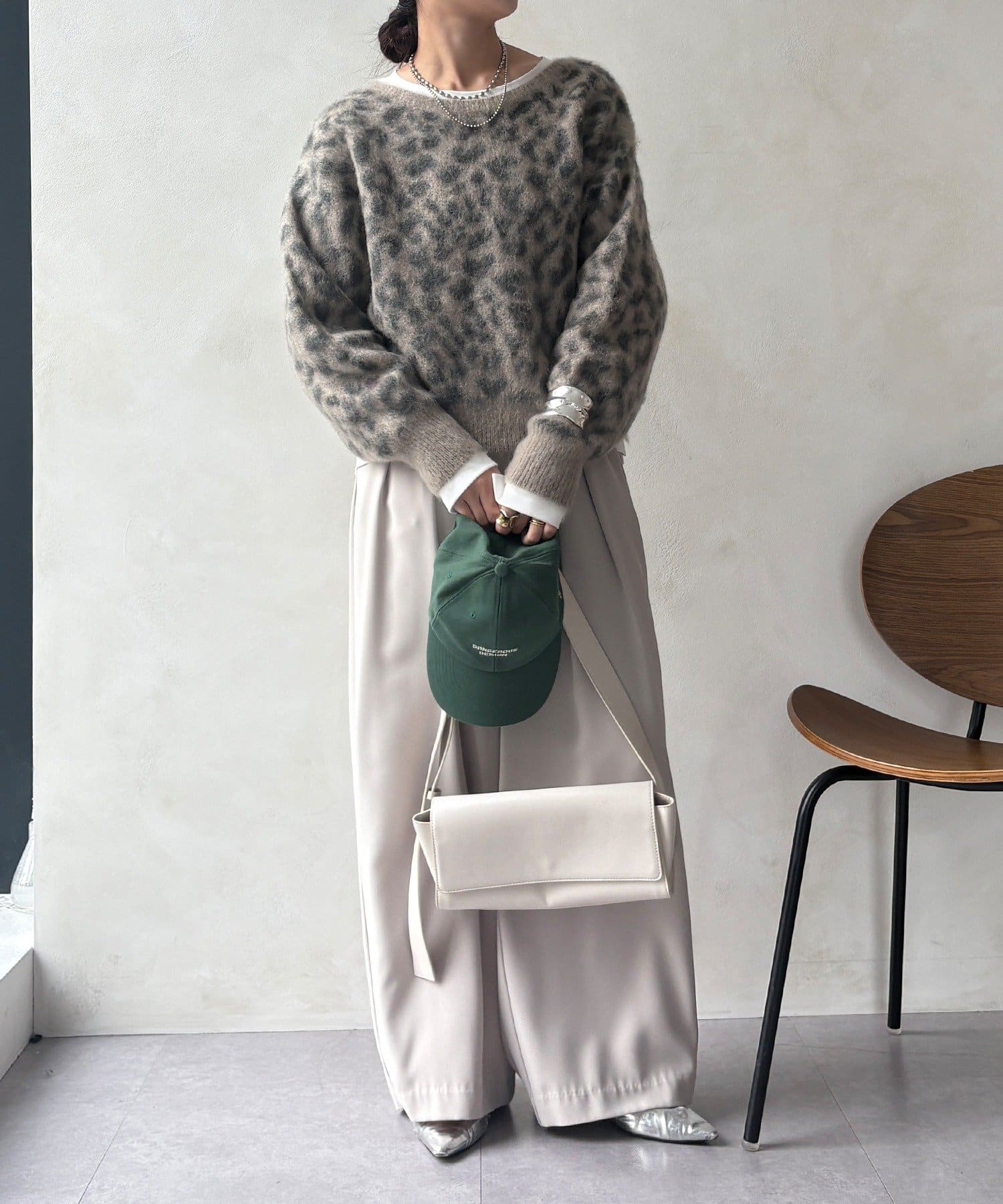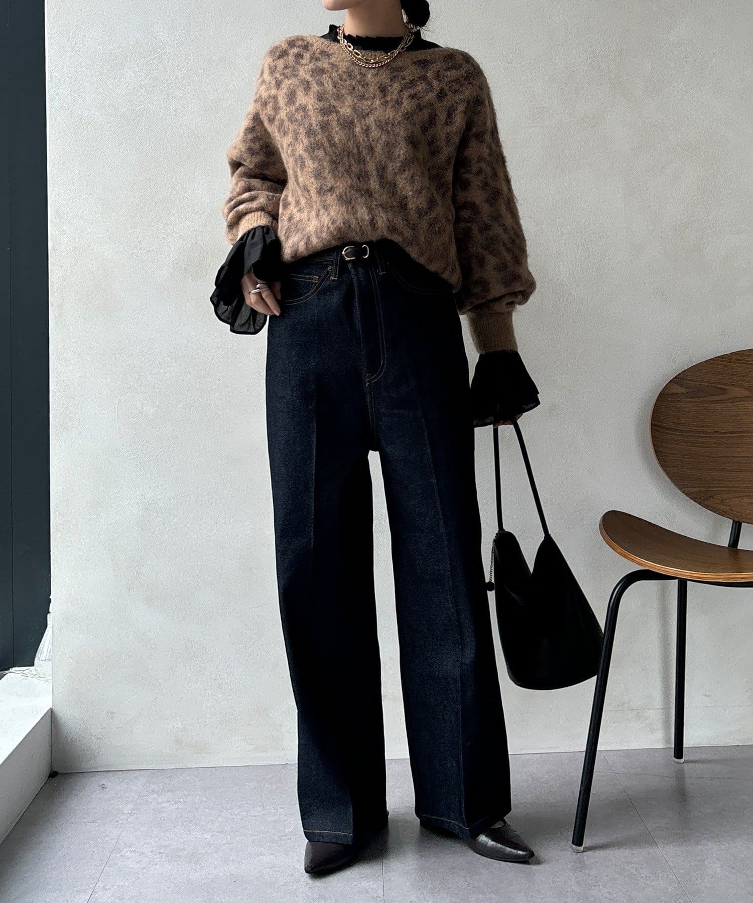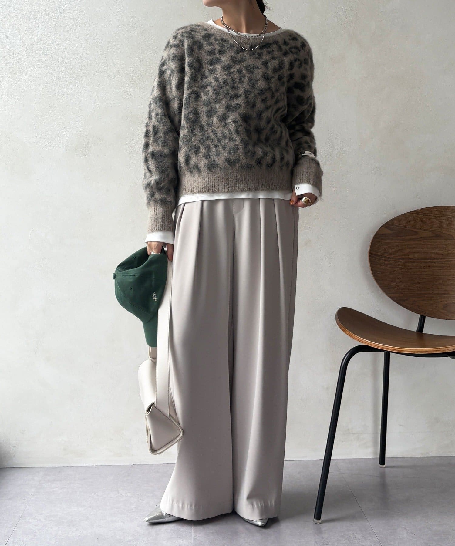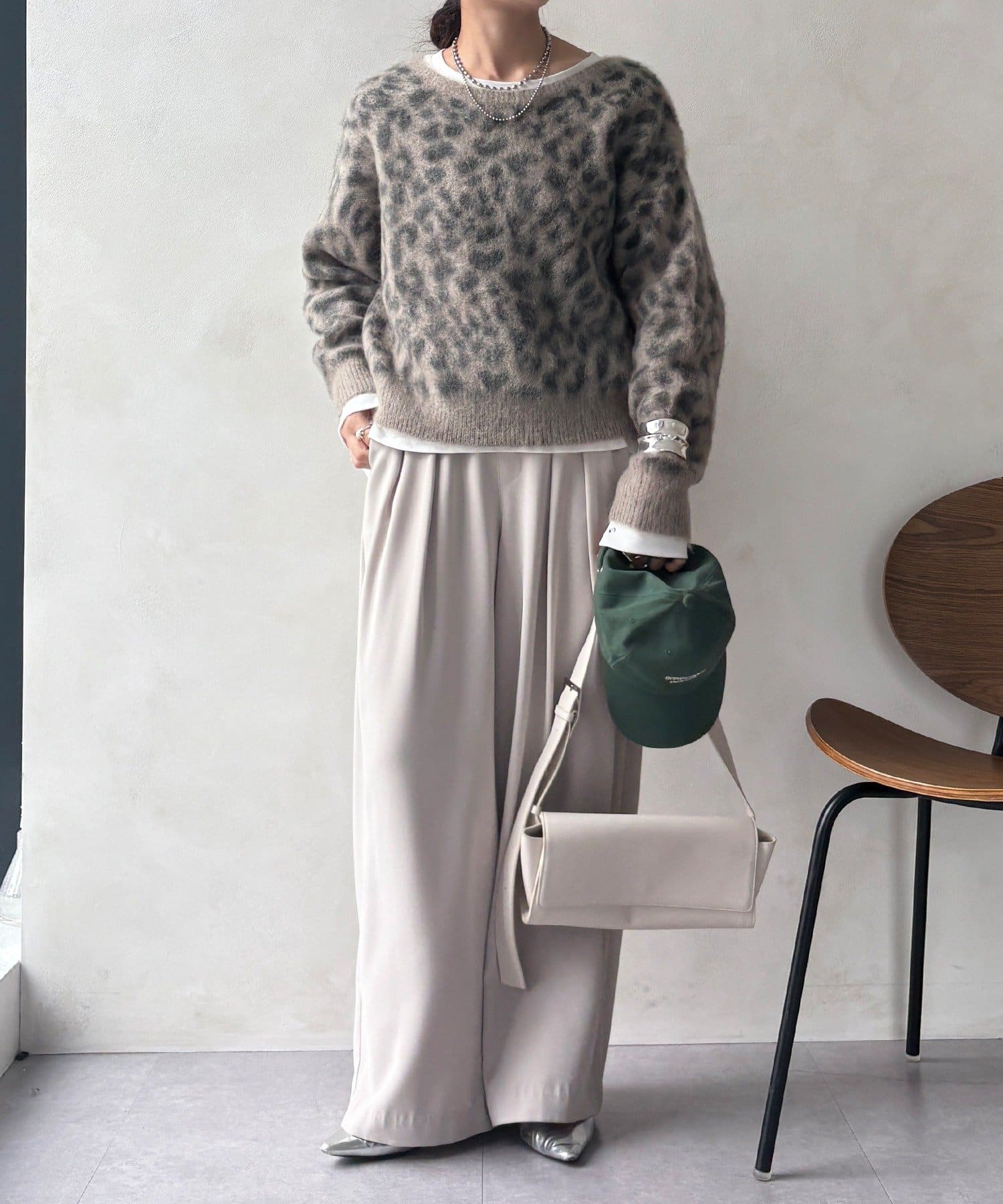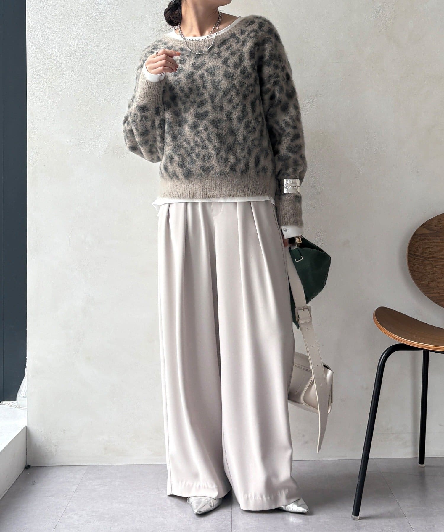毛足の長い起毛感が、ふんわりと暖かなレオパード柄ニットプルオーバー。