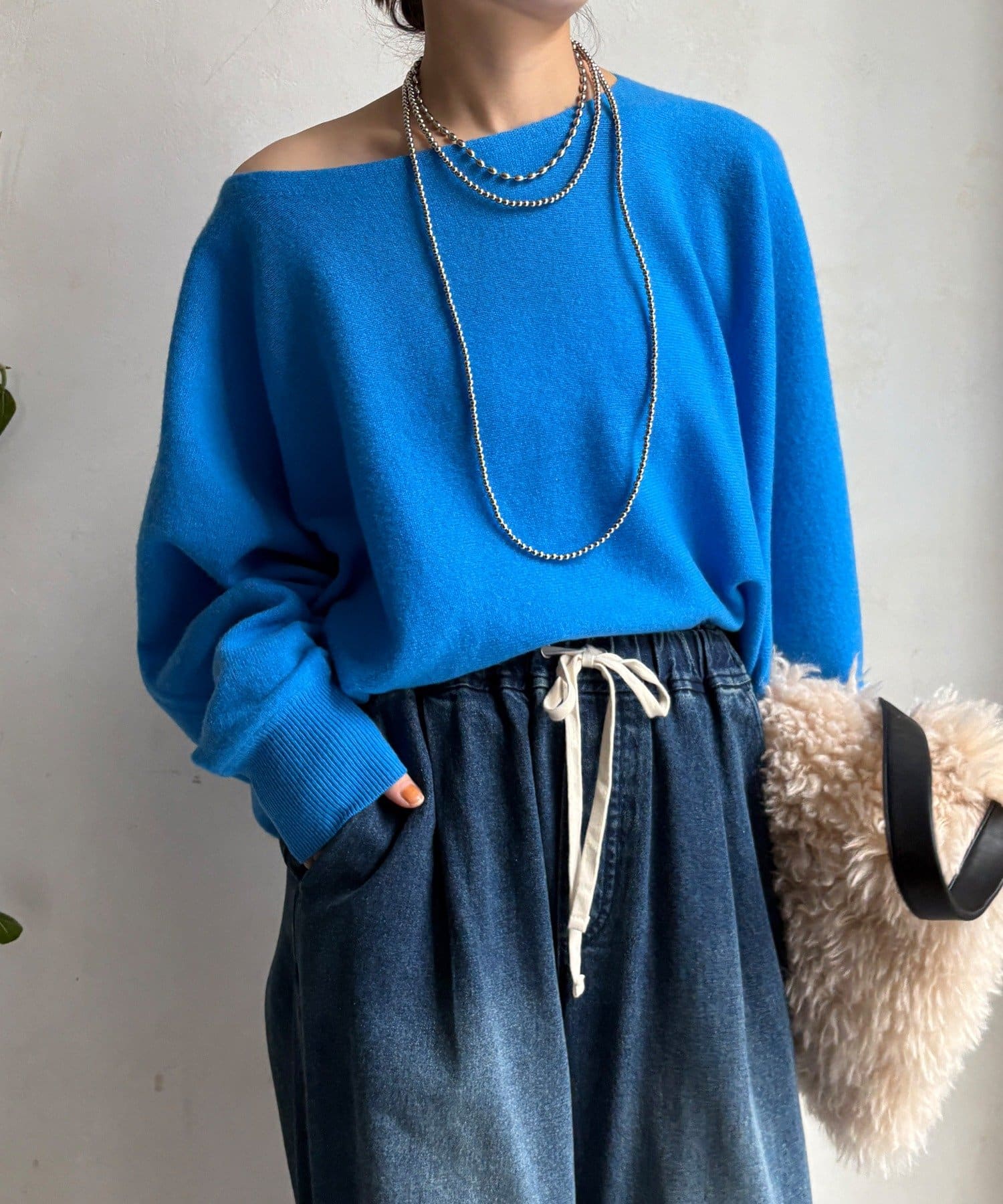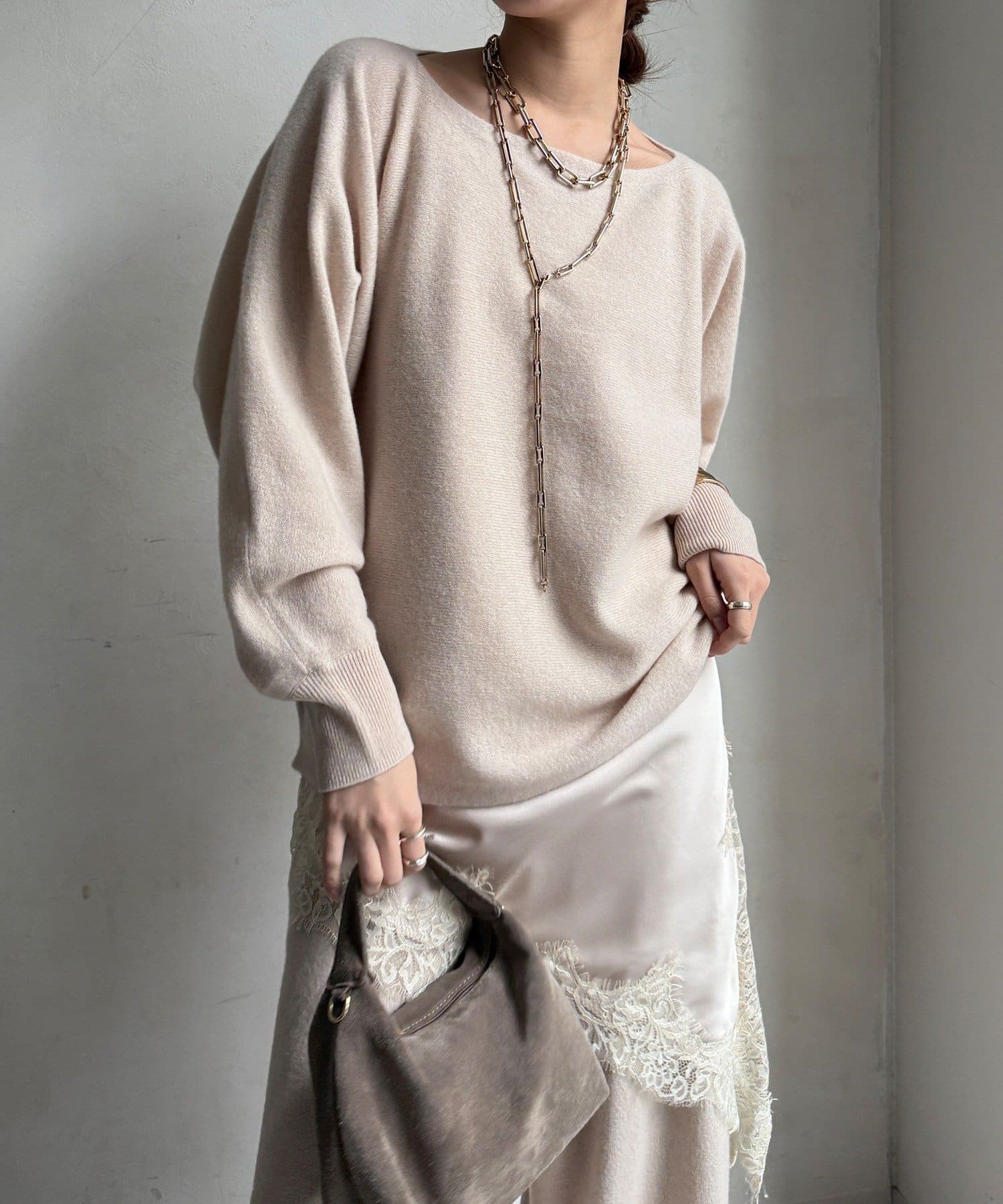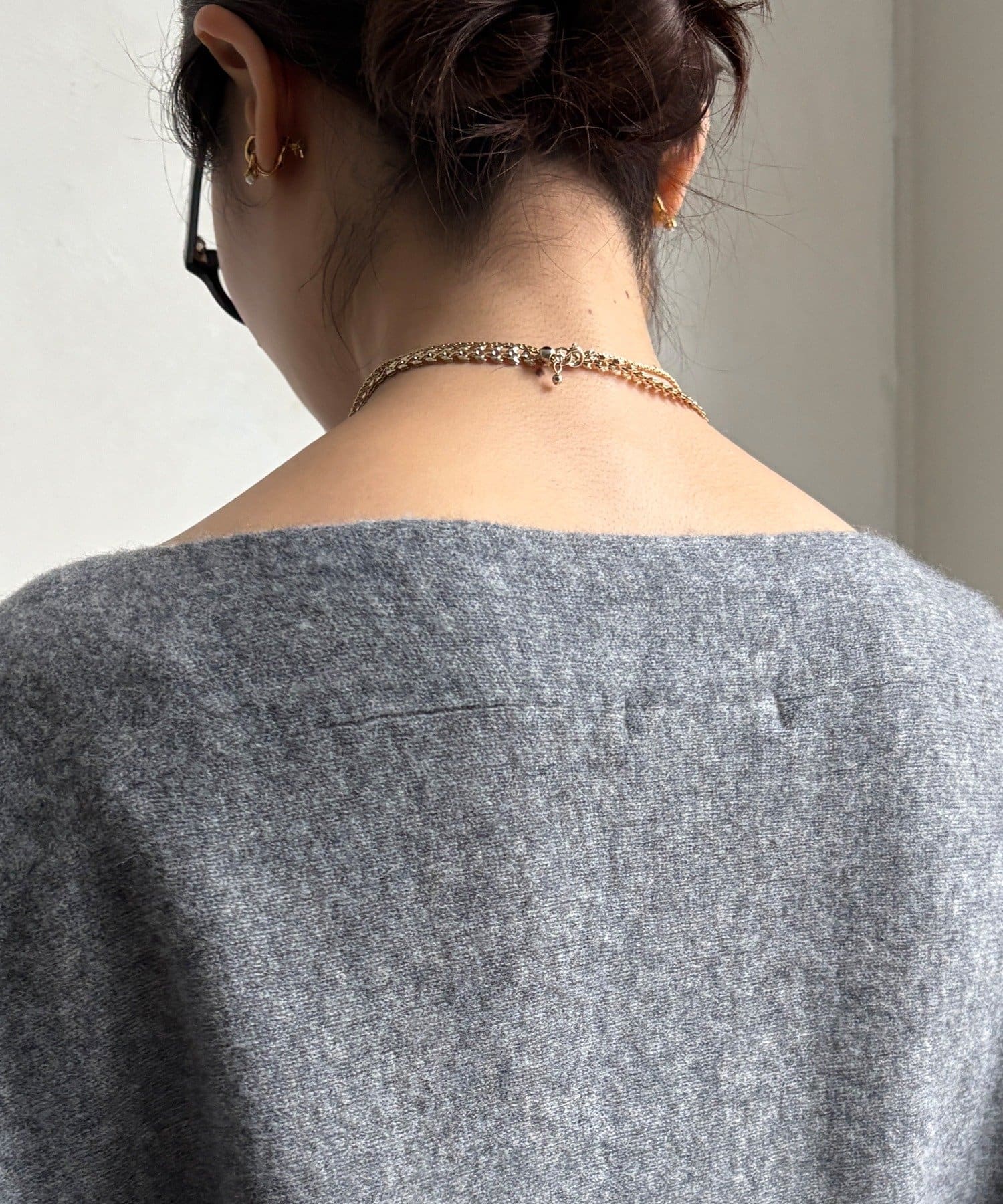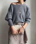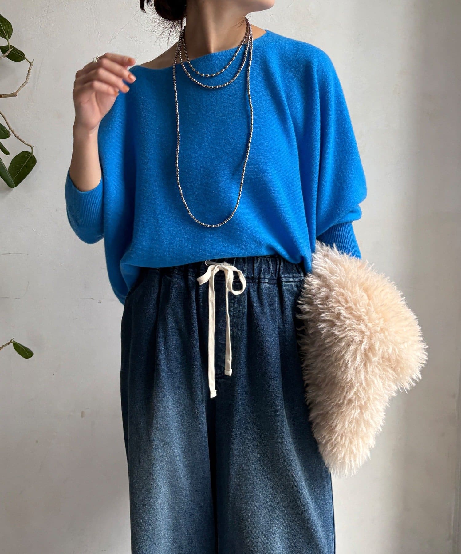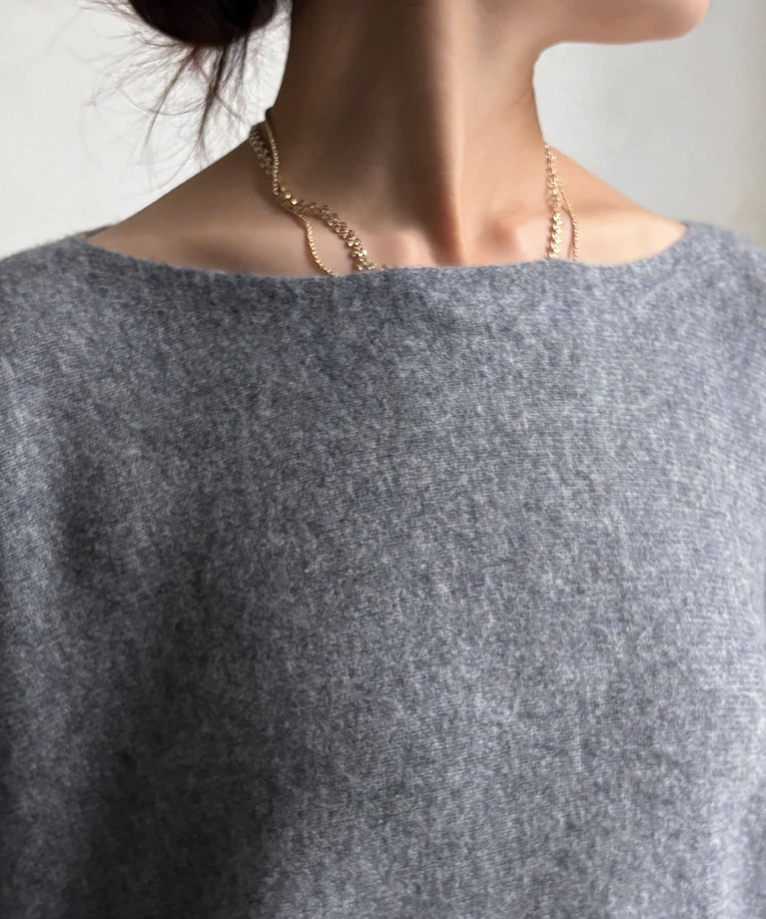 ネックラインは、デコルテと鎖骨を美しく見せるボートネック。女性らしい抜け感をプラスし、顔周りをすっきりと見せてくれます。