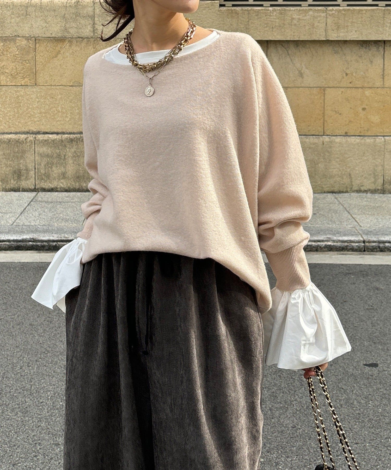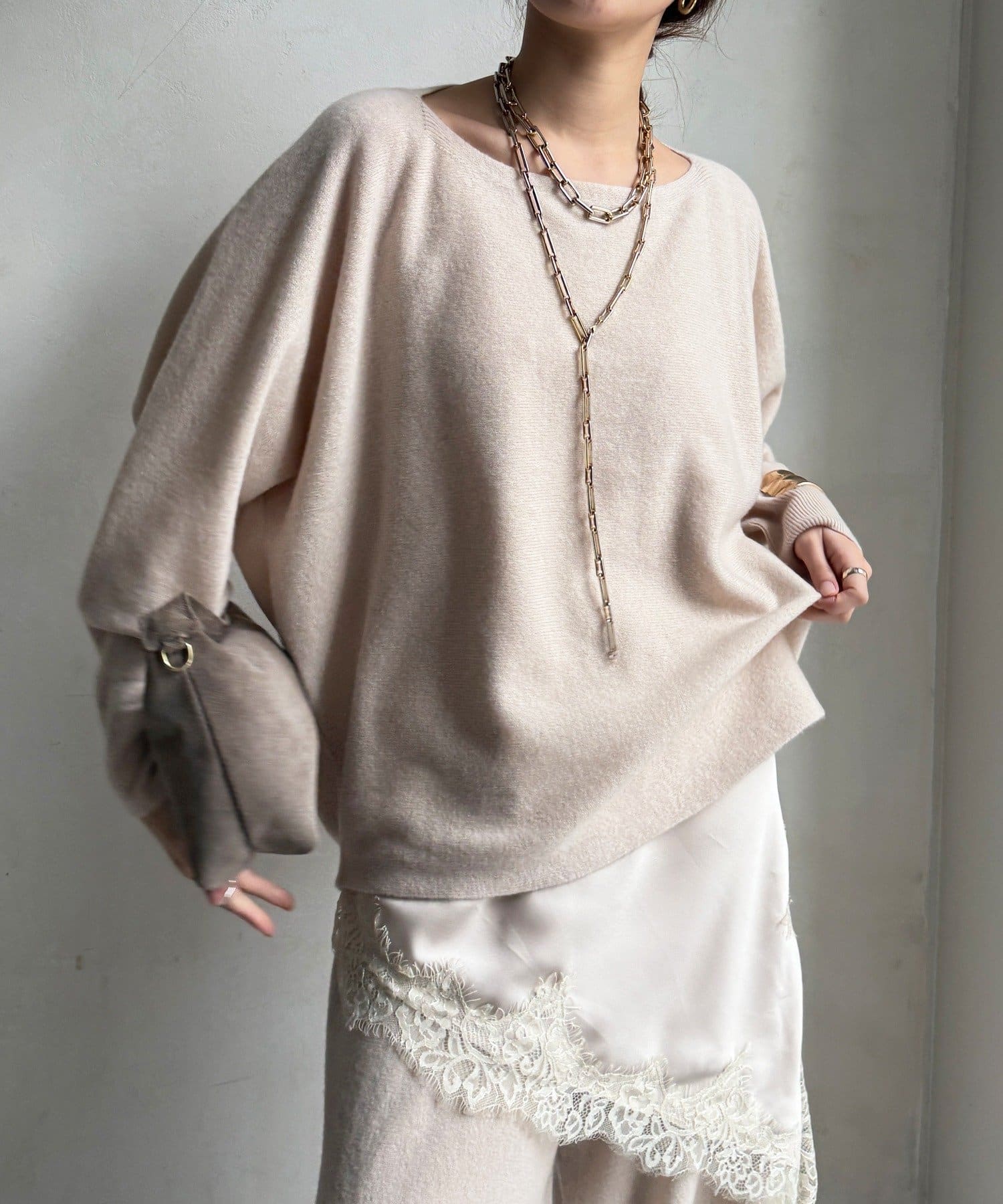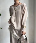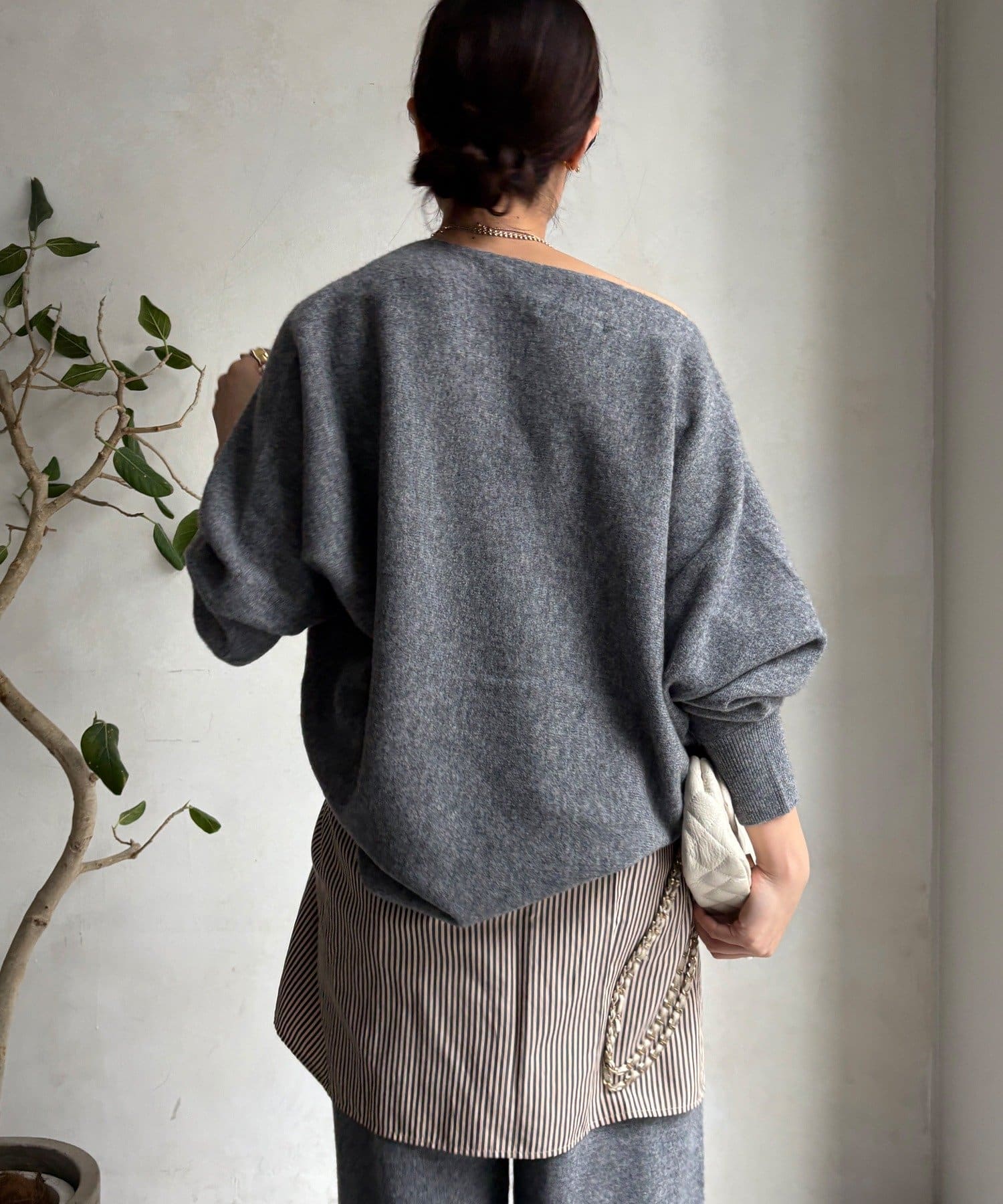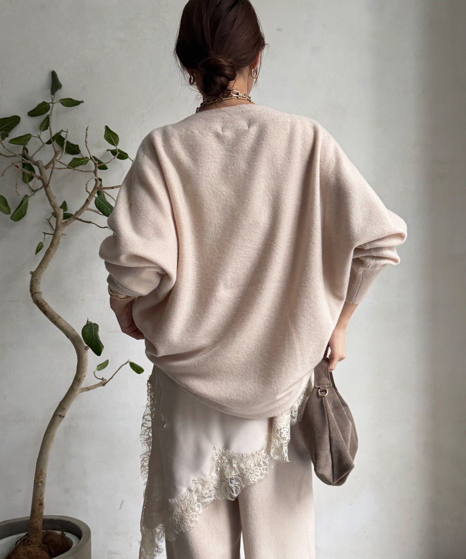 ゆったりとしたオーバーサイズシルエットに身頃と一体化したようなドルマンスリーブが、着るだけで旬のこなれたムードを演出。