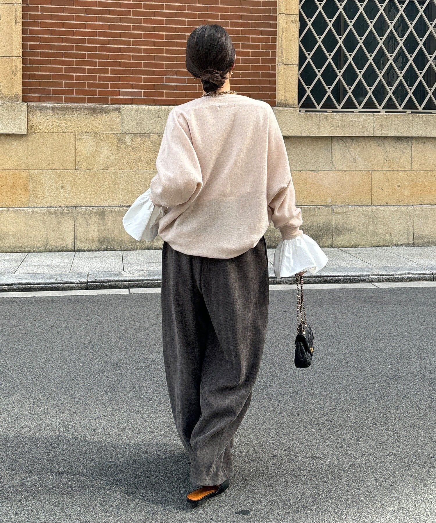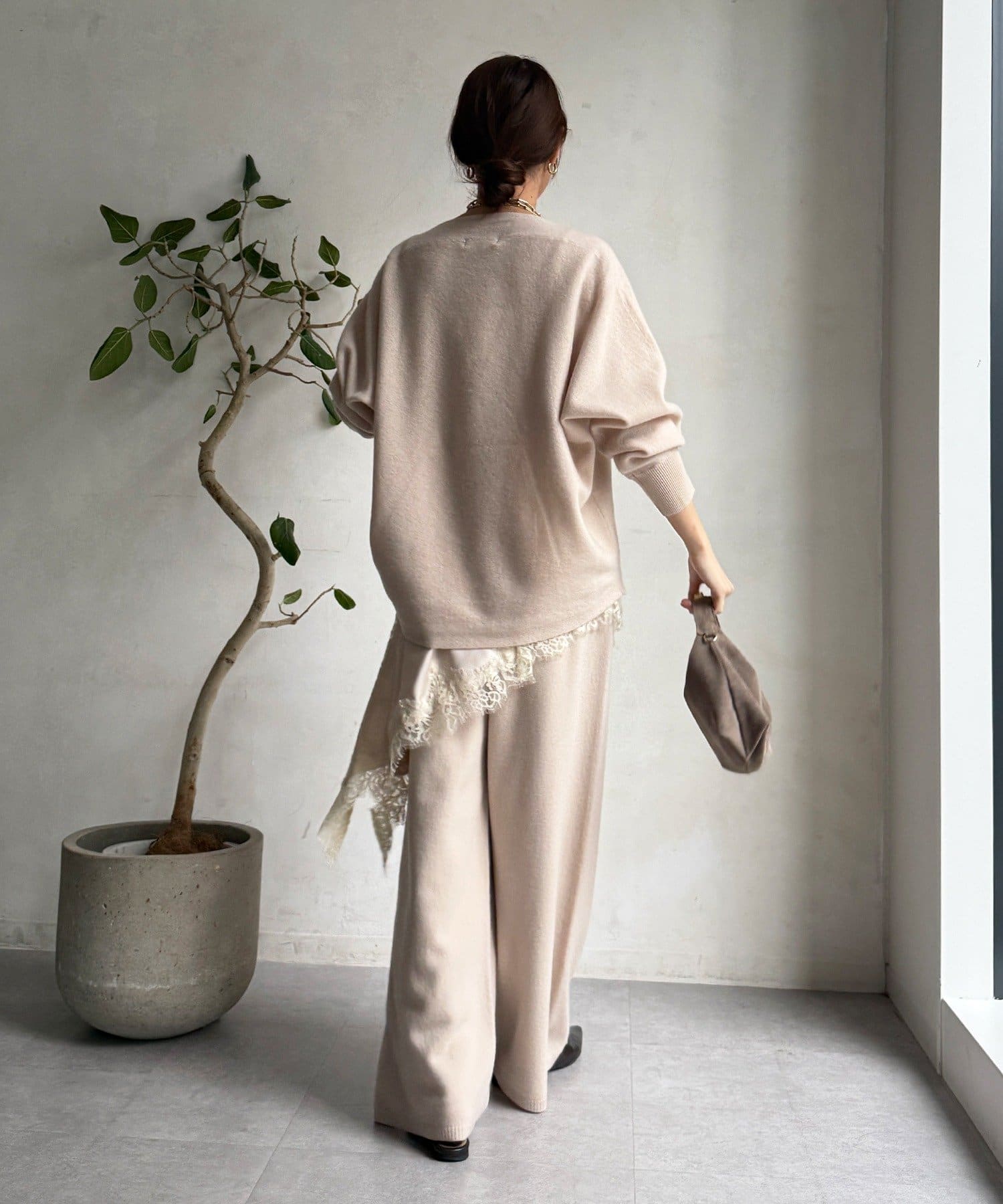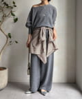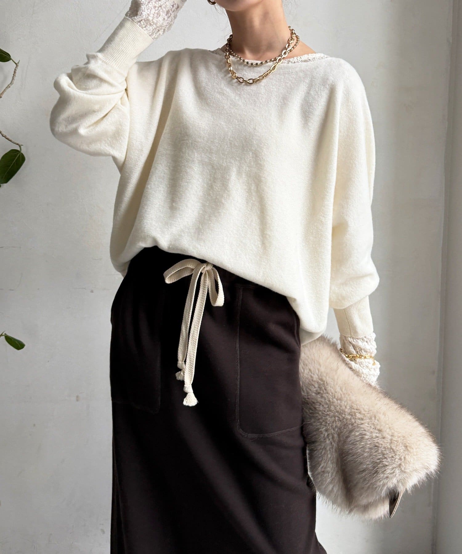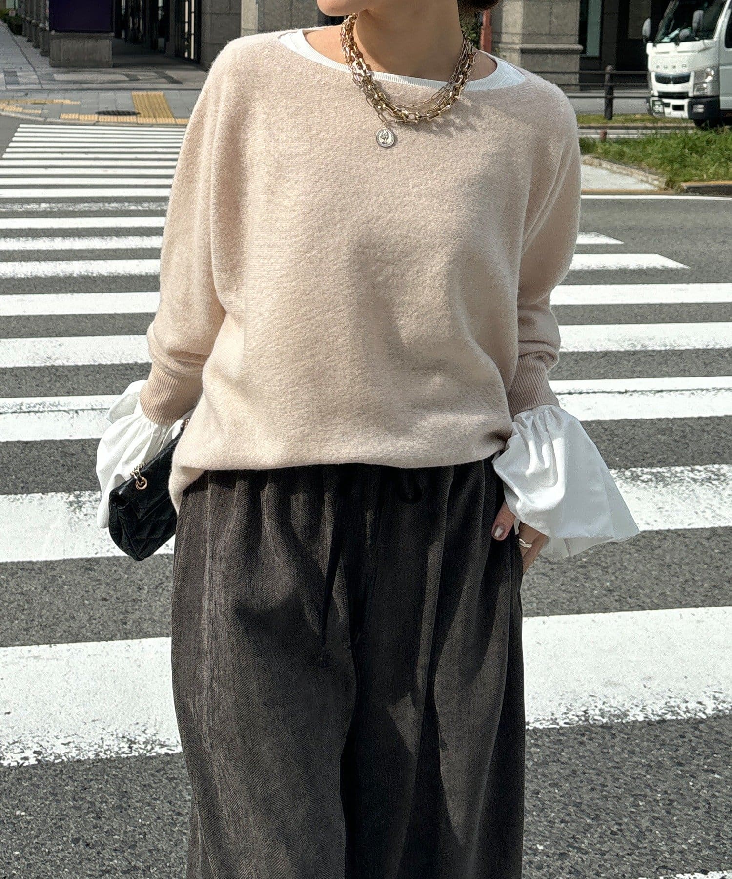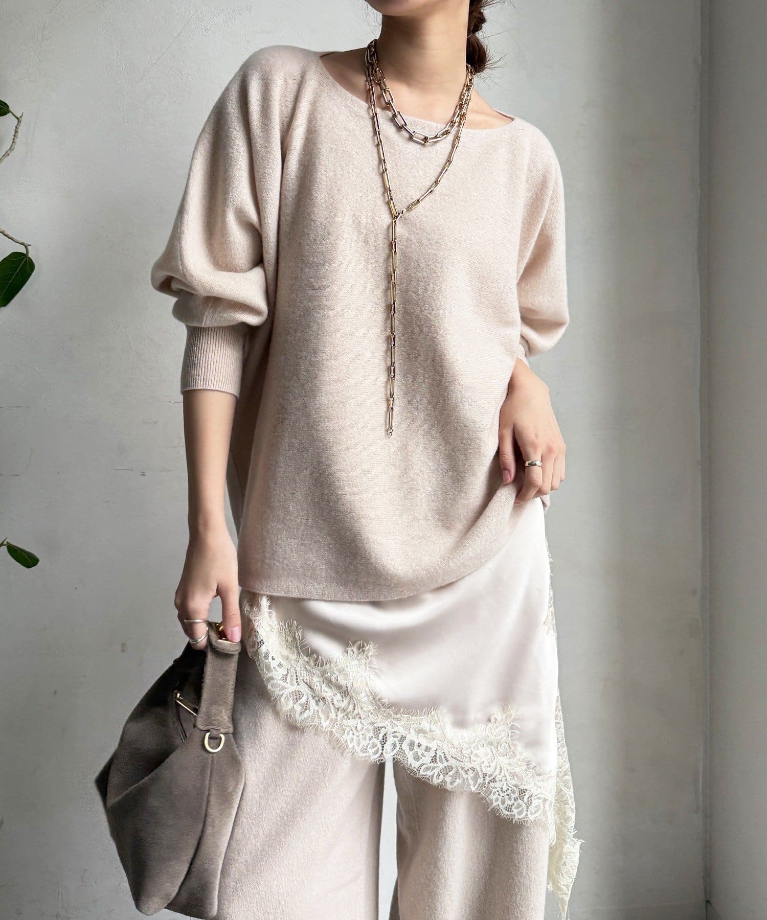 ゆったりとしたオーバーサイズシルエットに身頃と一体化したようなドルマンスリーブが、着るだけで旬のこなれたムードを演出。