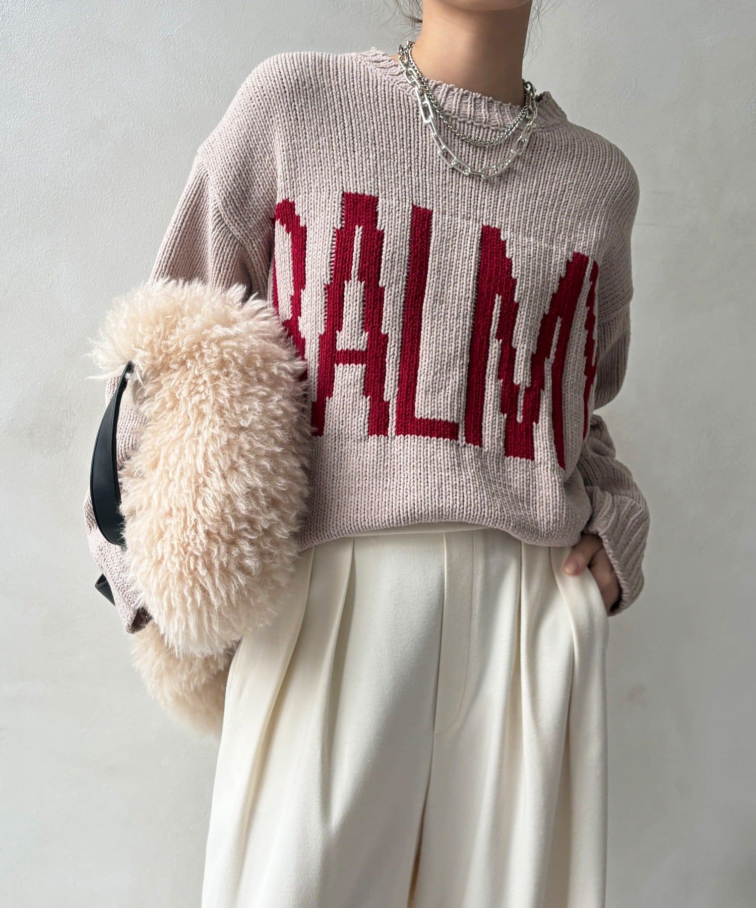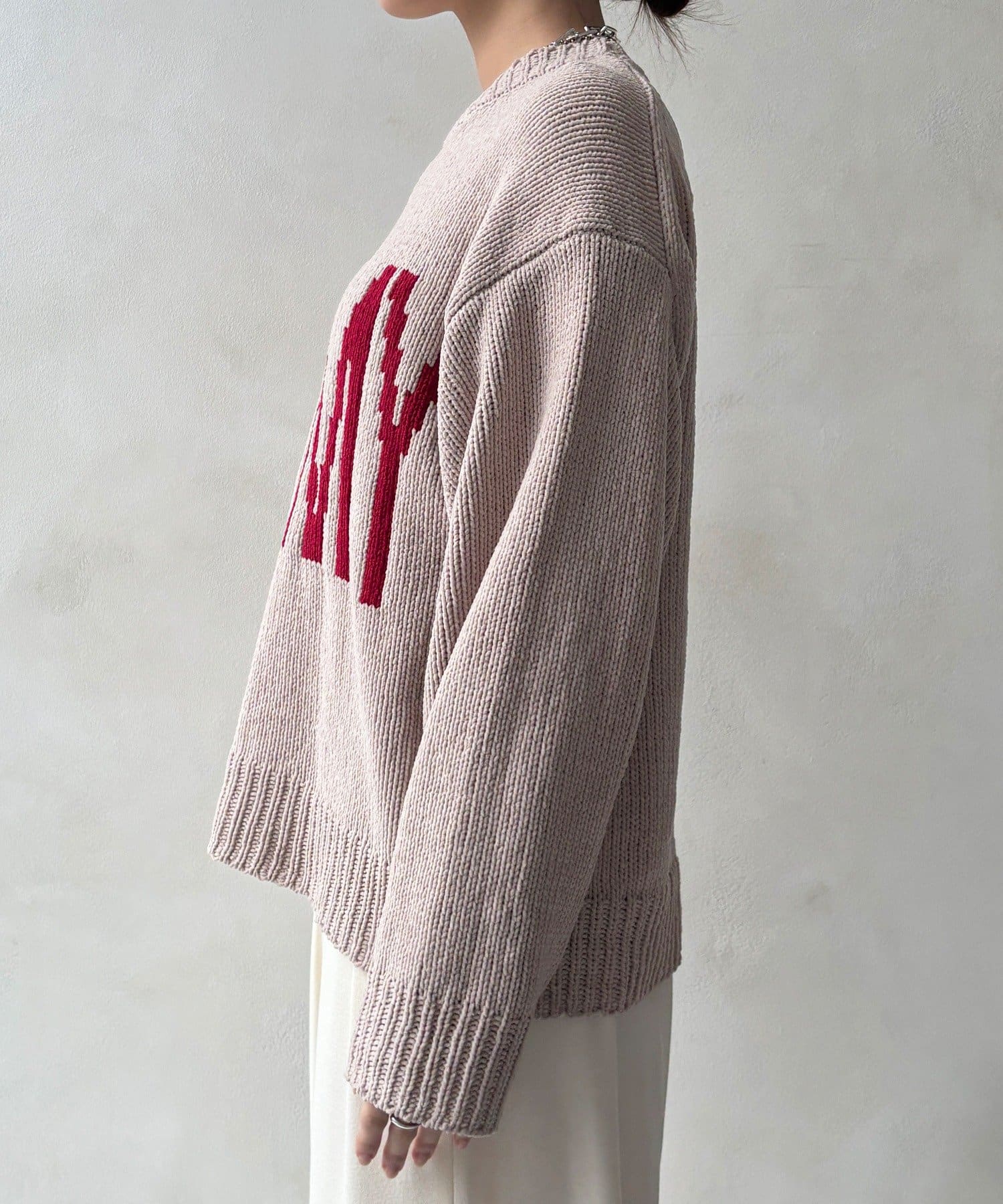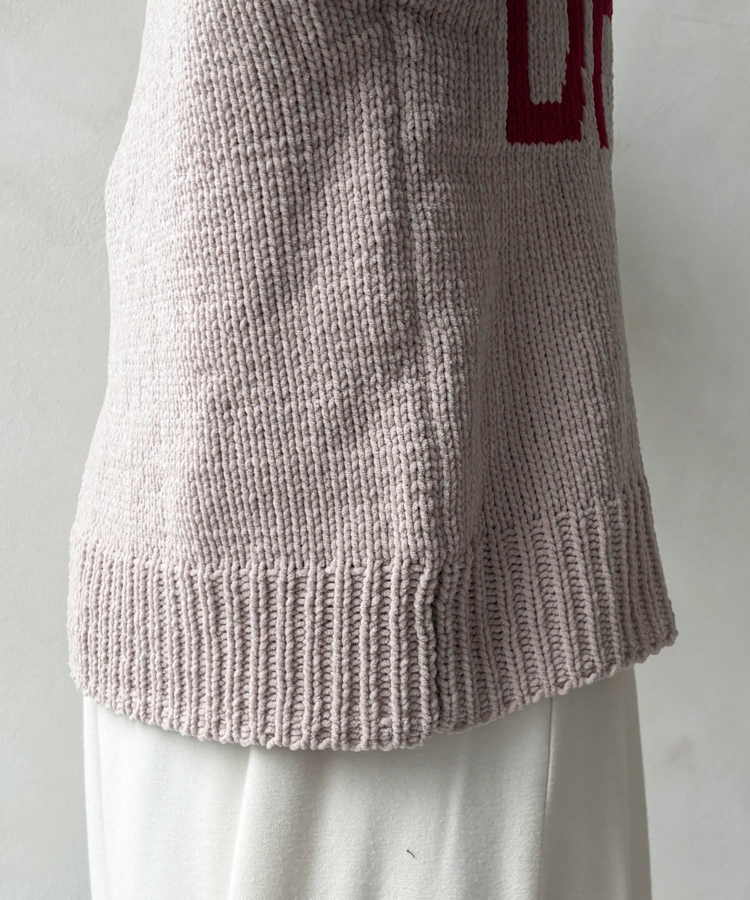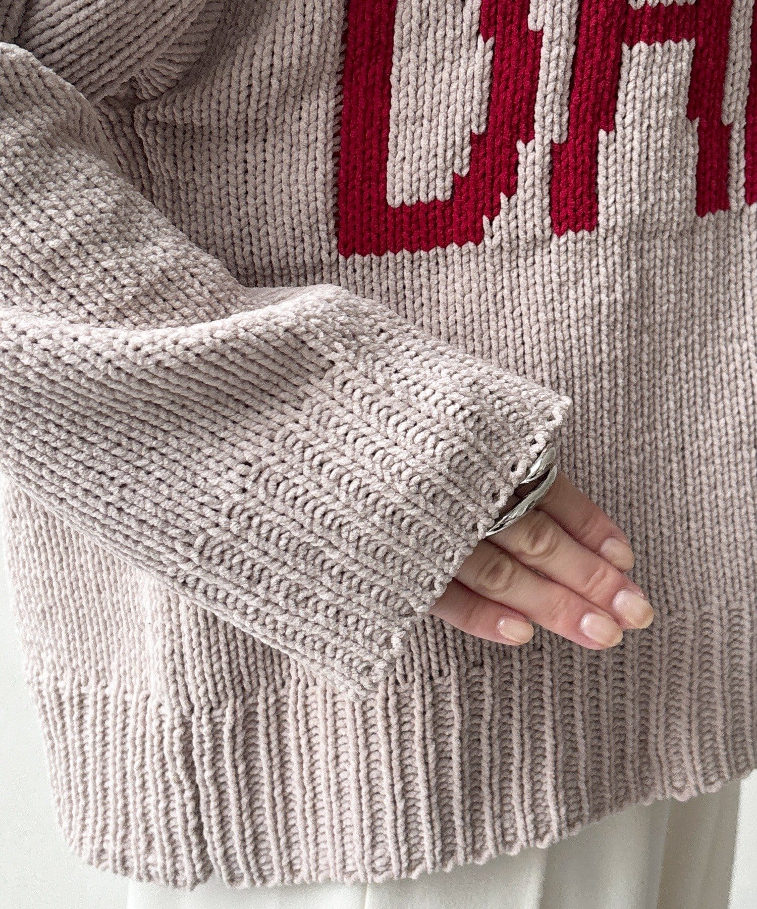 柔らかな肌触りのモールヤーンで編み上げられたロゴデザインが目を惹くニットプルオーバー。