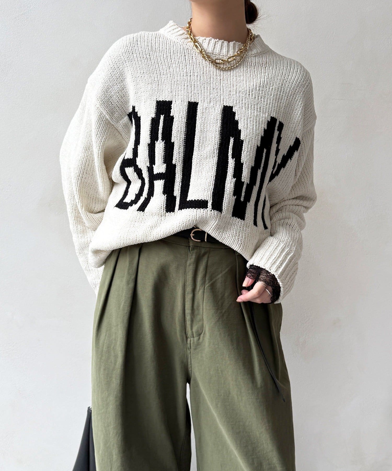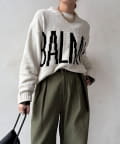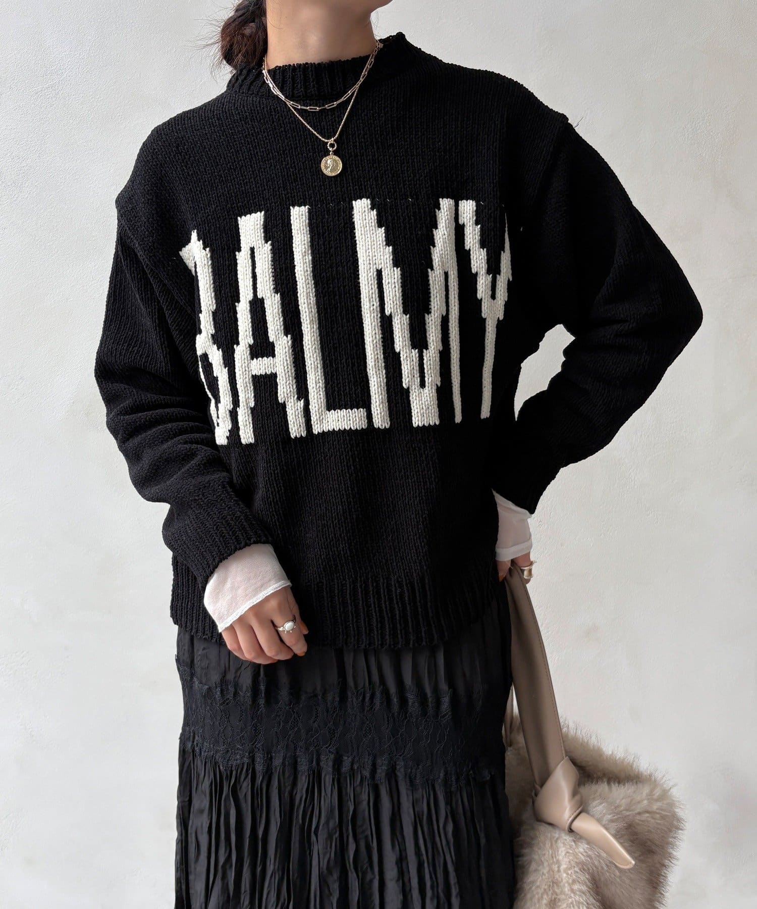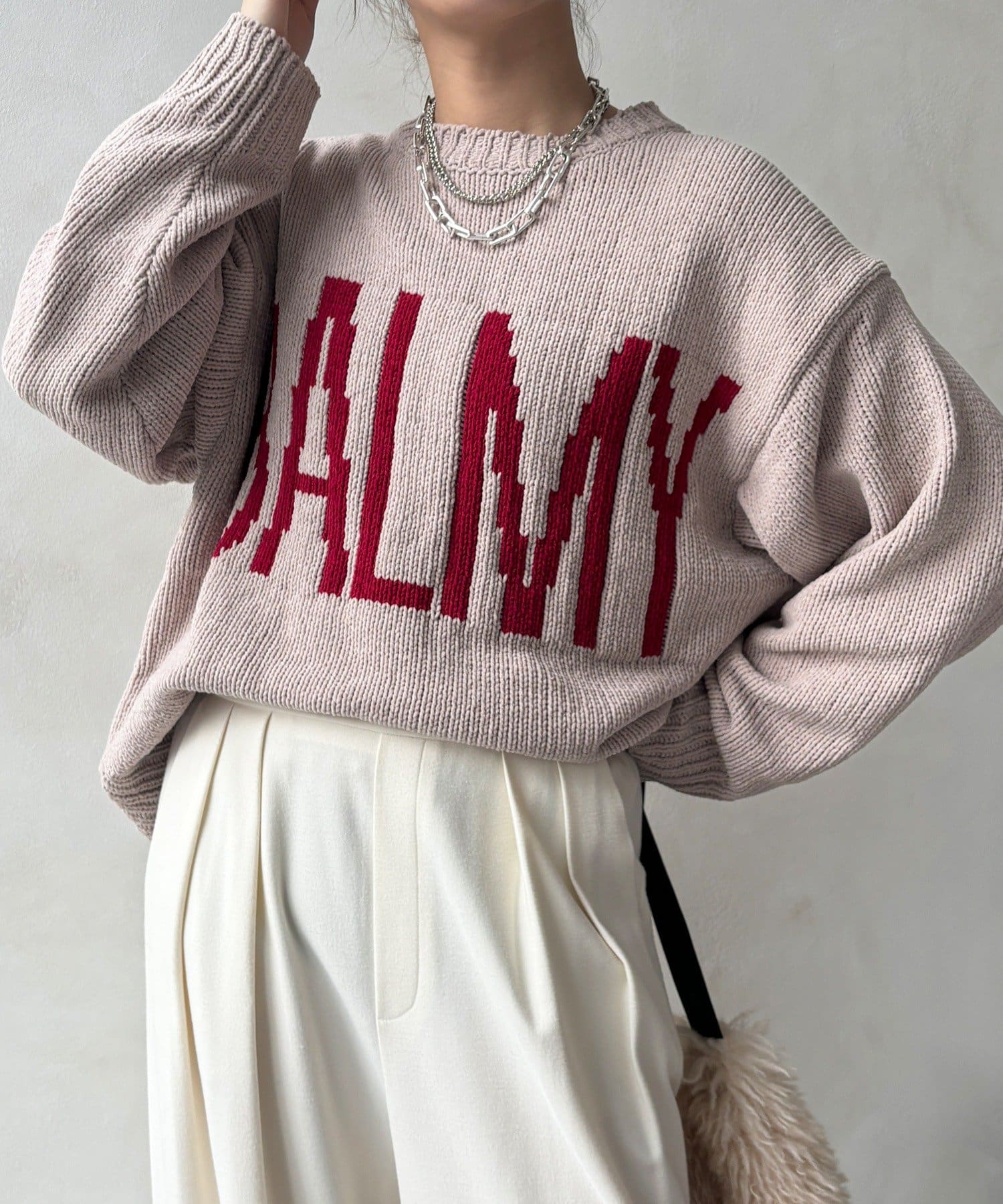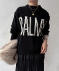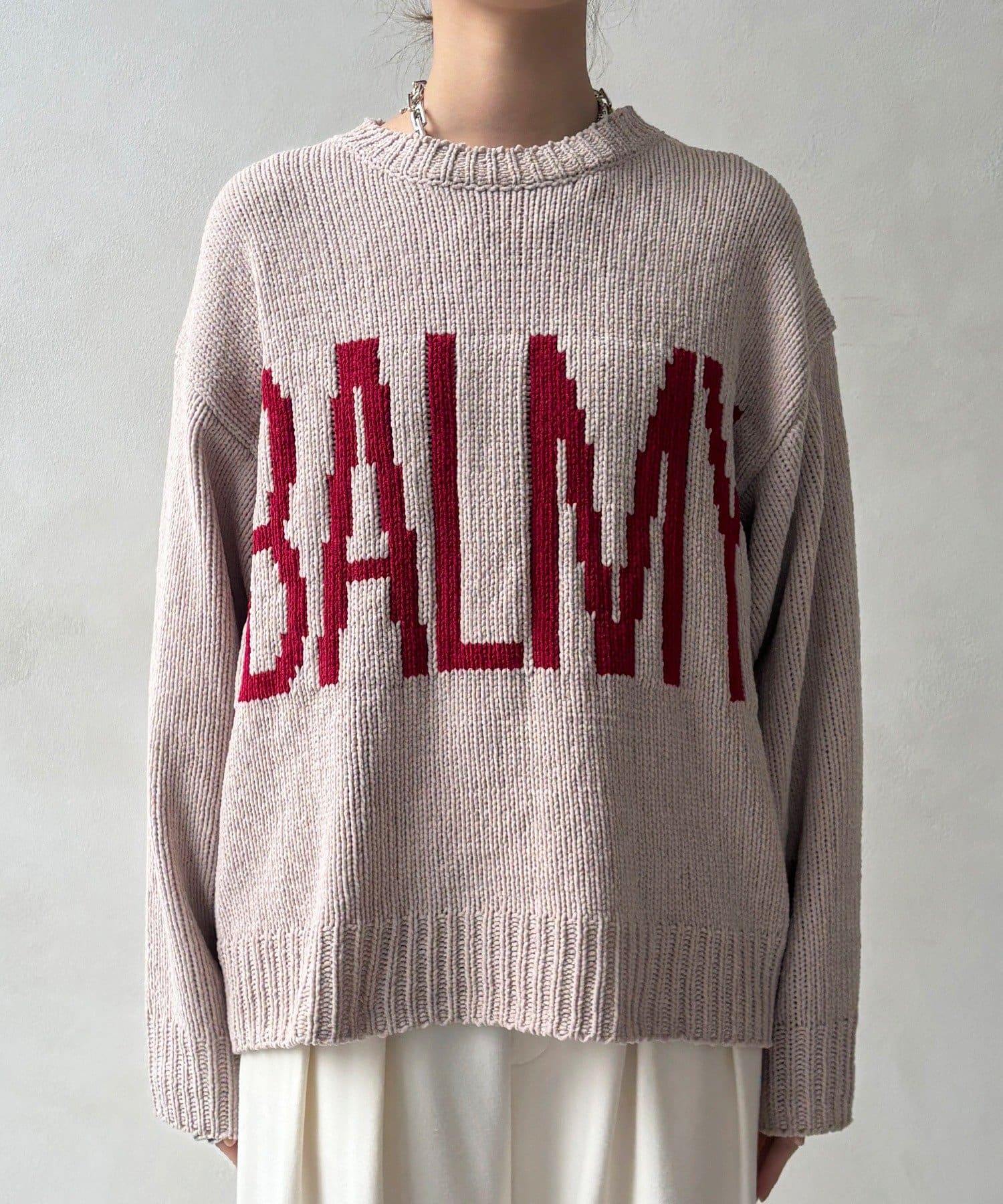 柔らかな肌触りのモールヤーンで編み上げられたロゴデザインが目を惹くニットプルオーバー。