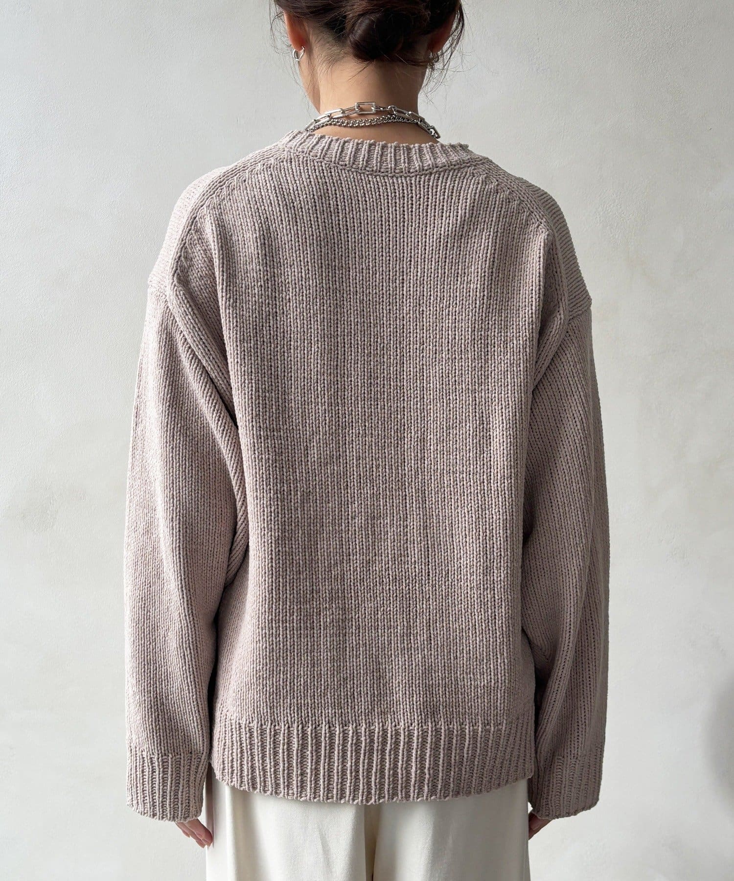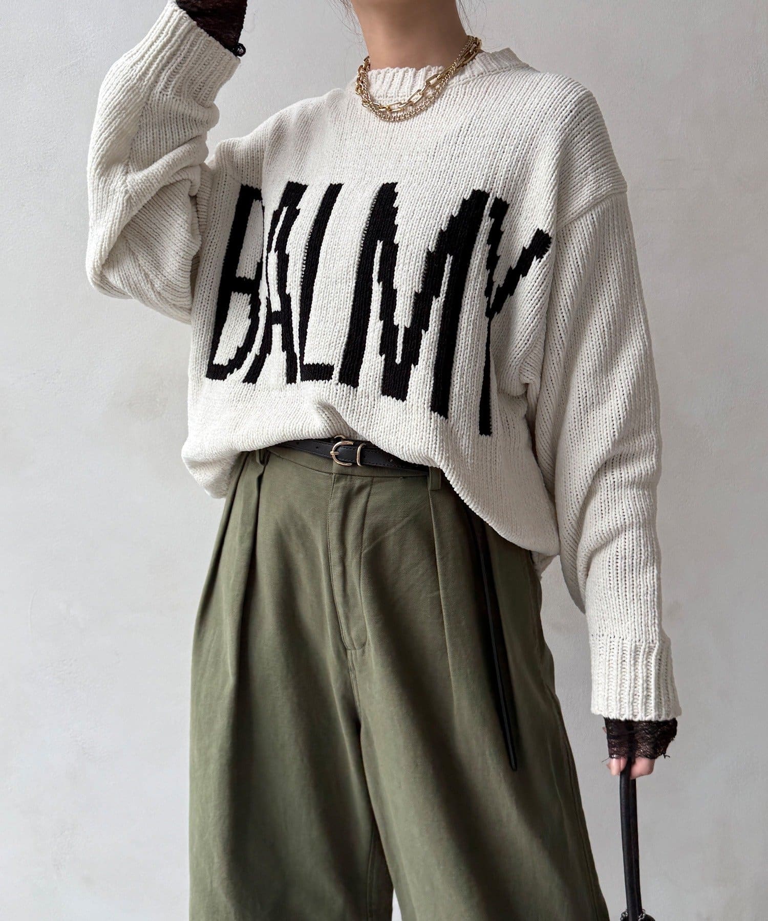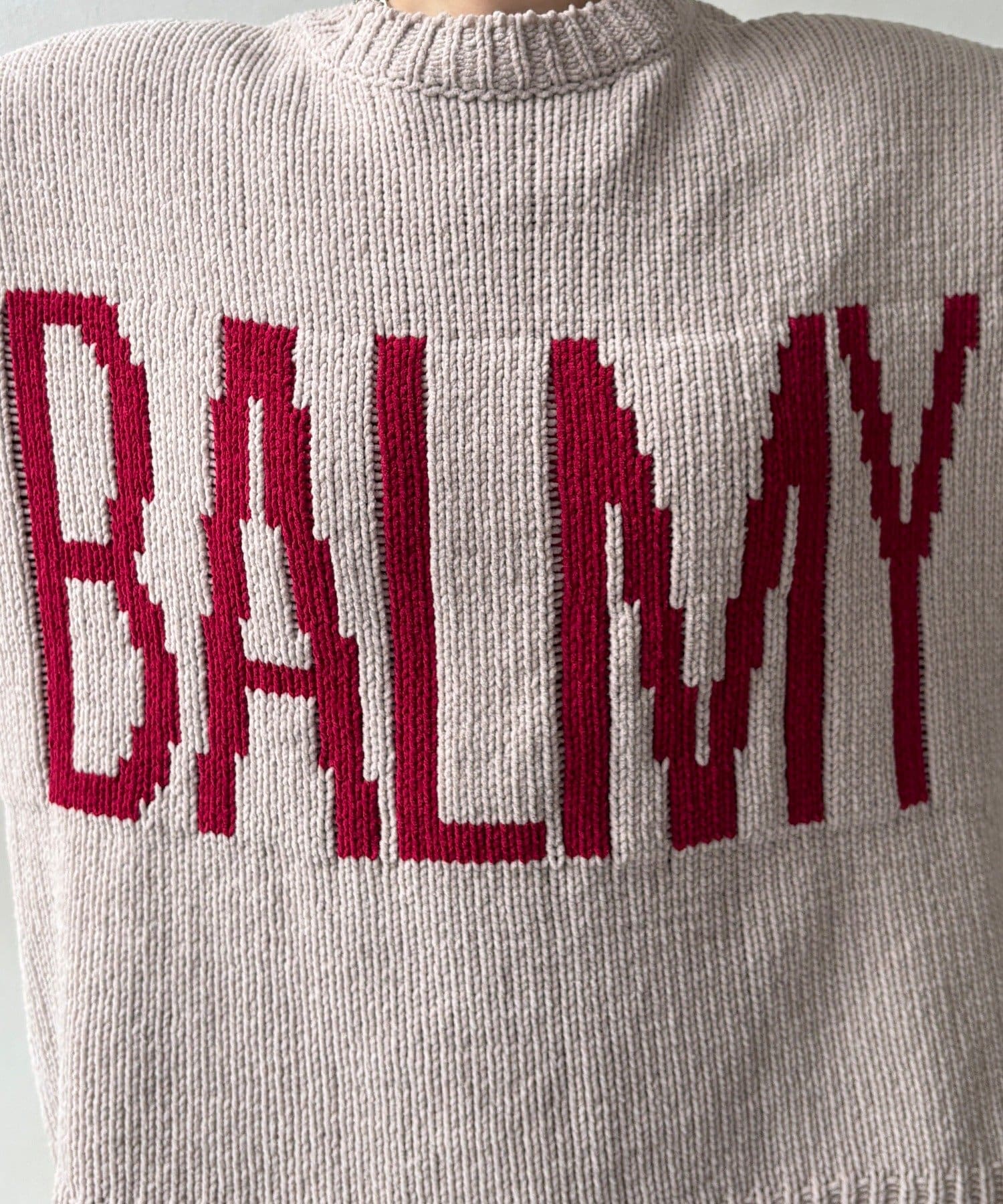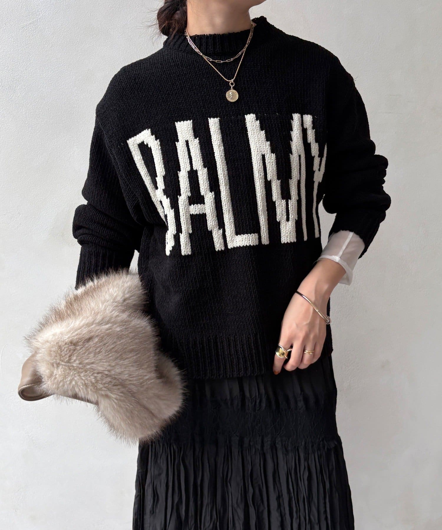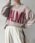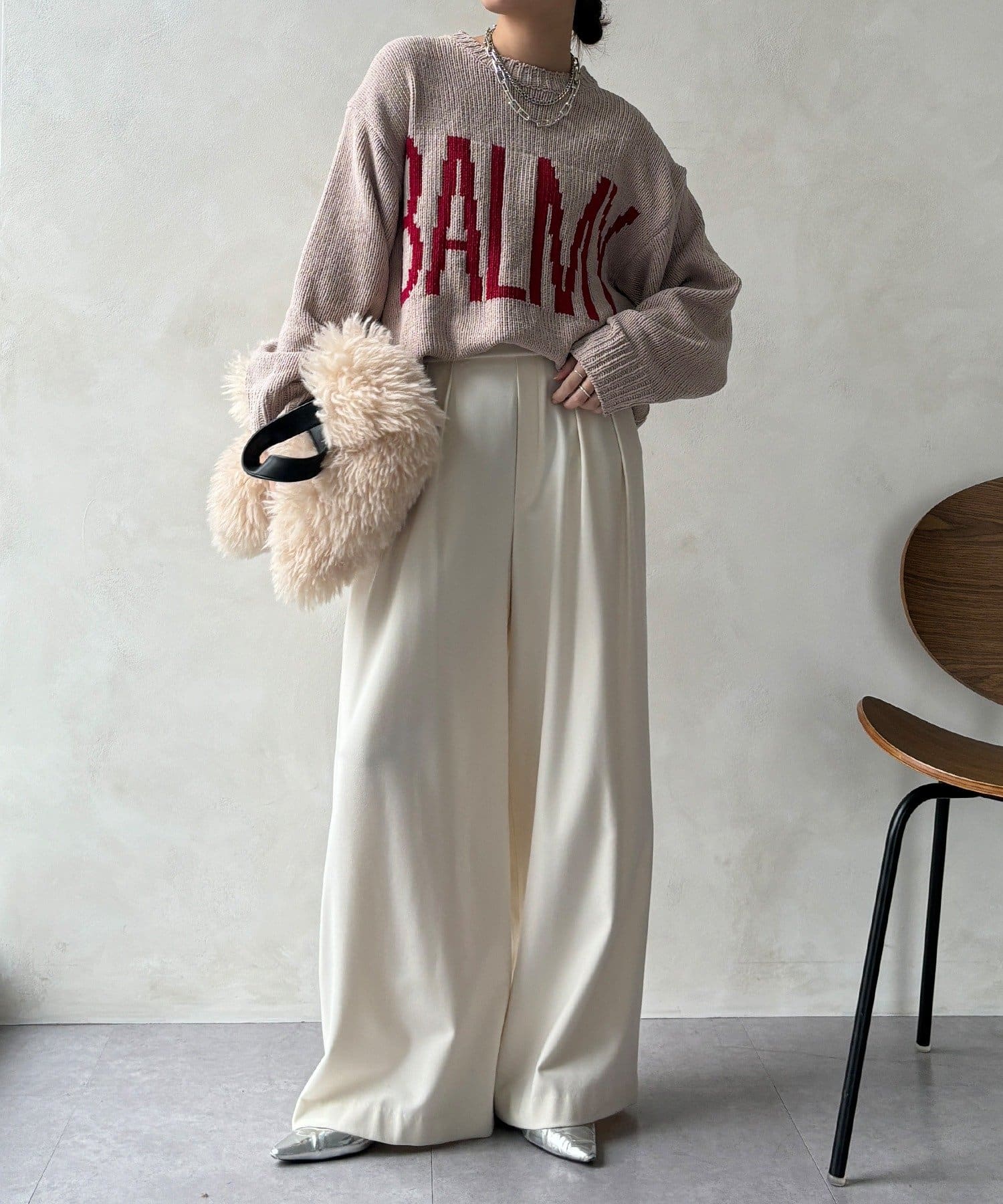柔らかな肌触りのモールヤーンで編み上げられたロゴデザインが目を惹くニットプルオーバー。