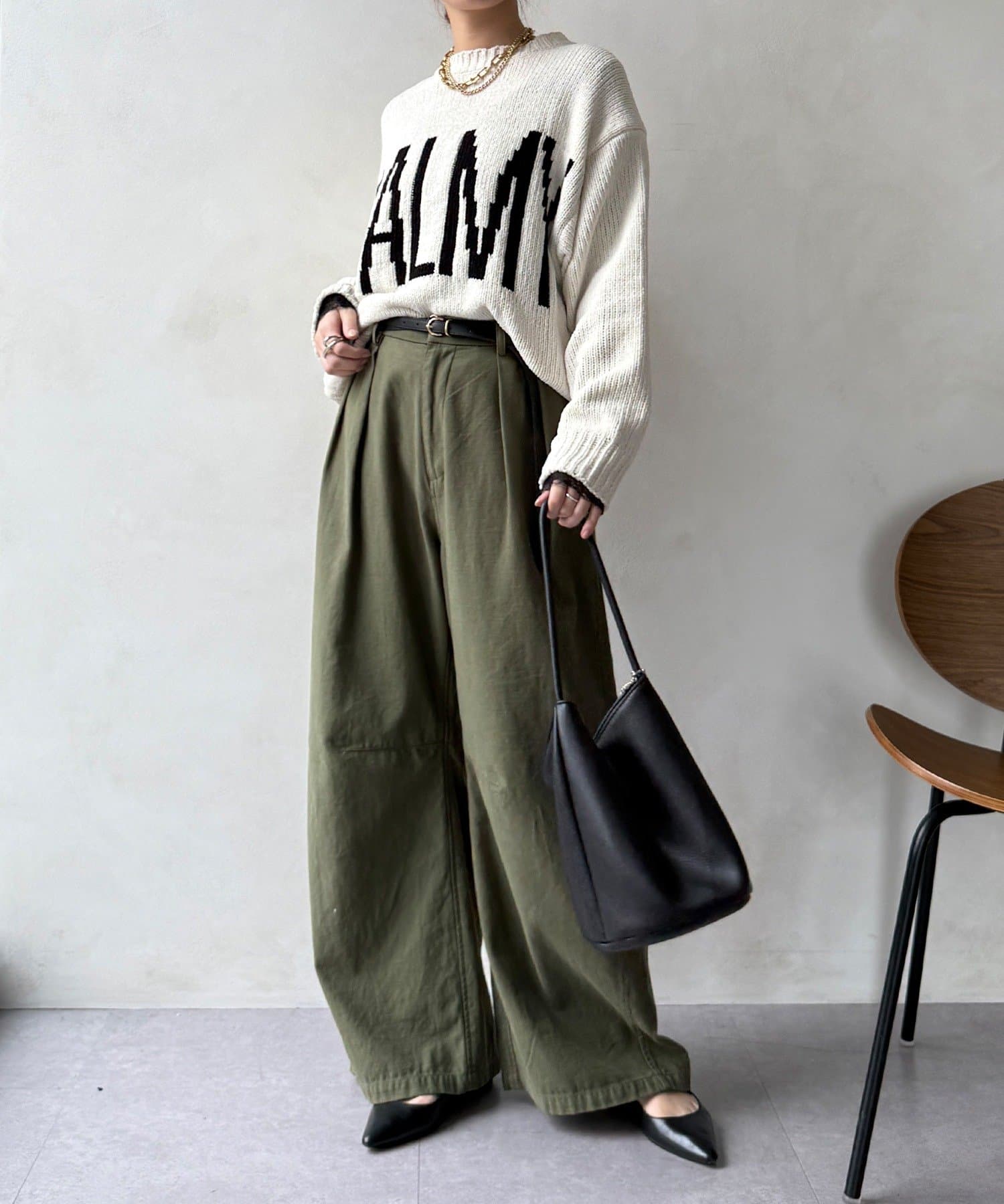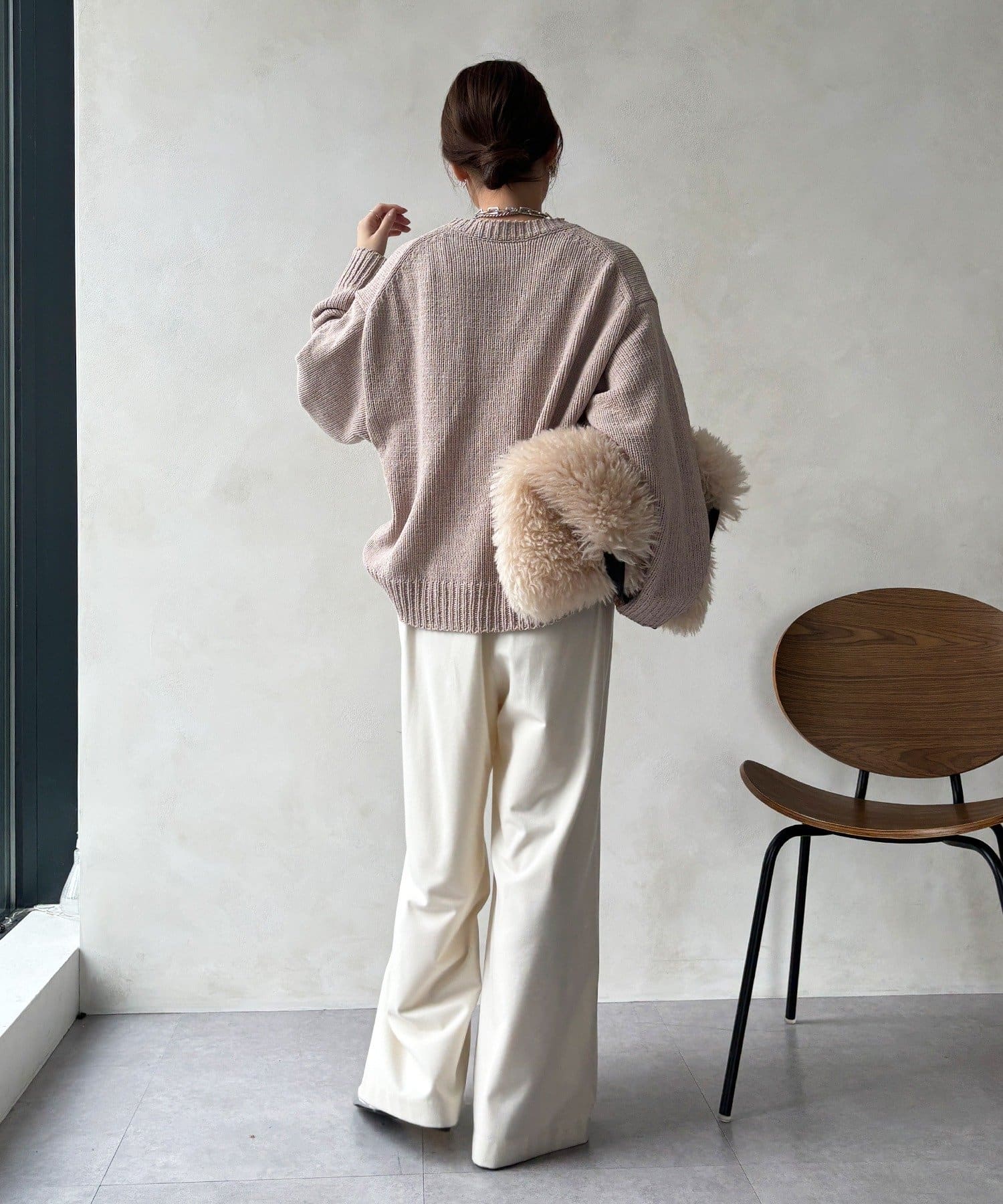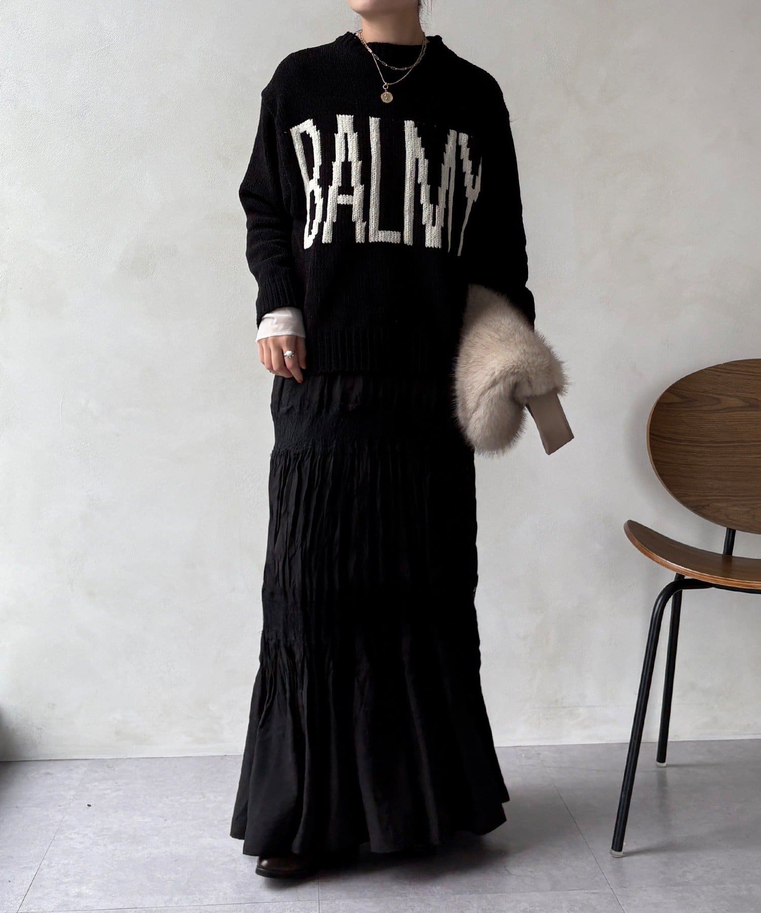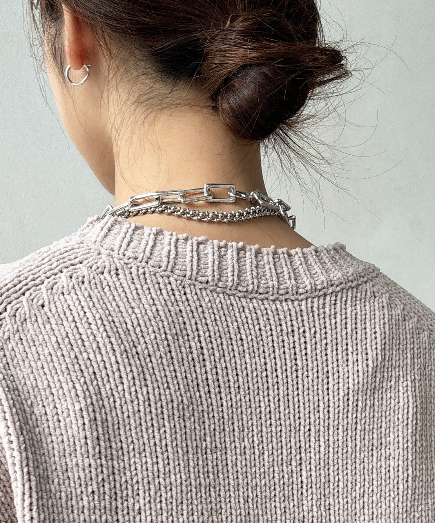 柔らかな肌触りのモールヤーンで編み上げられたロゴデザインが目を惹くニットプルオーバー。