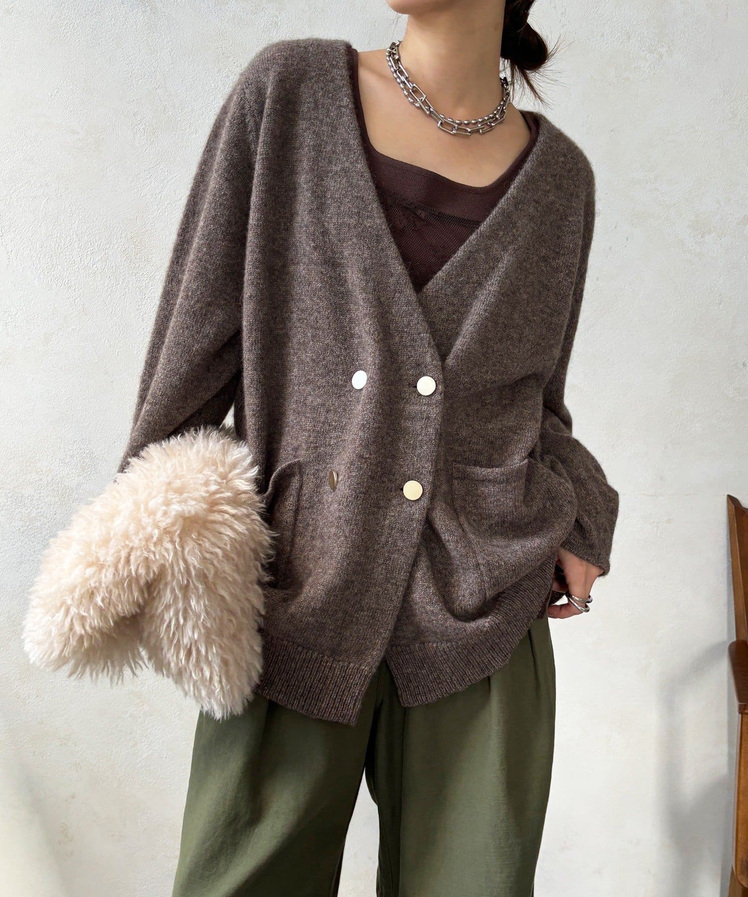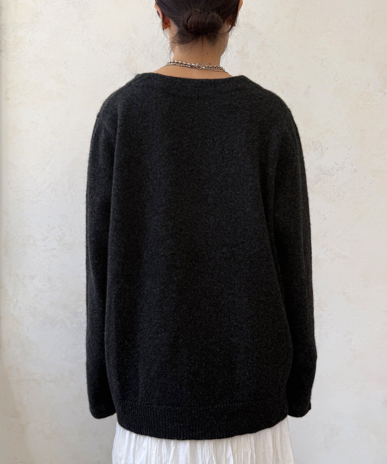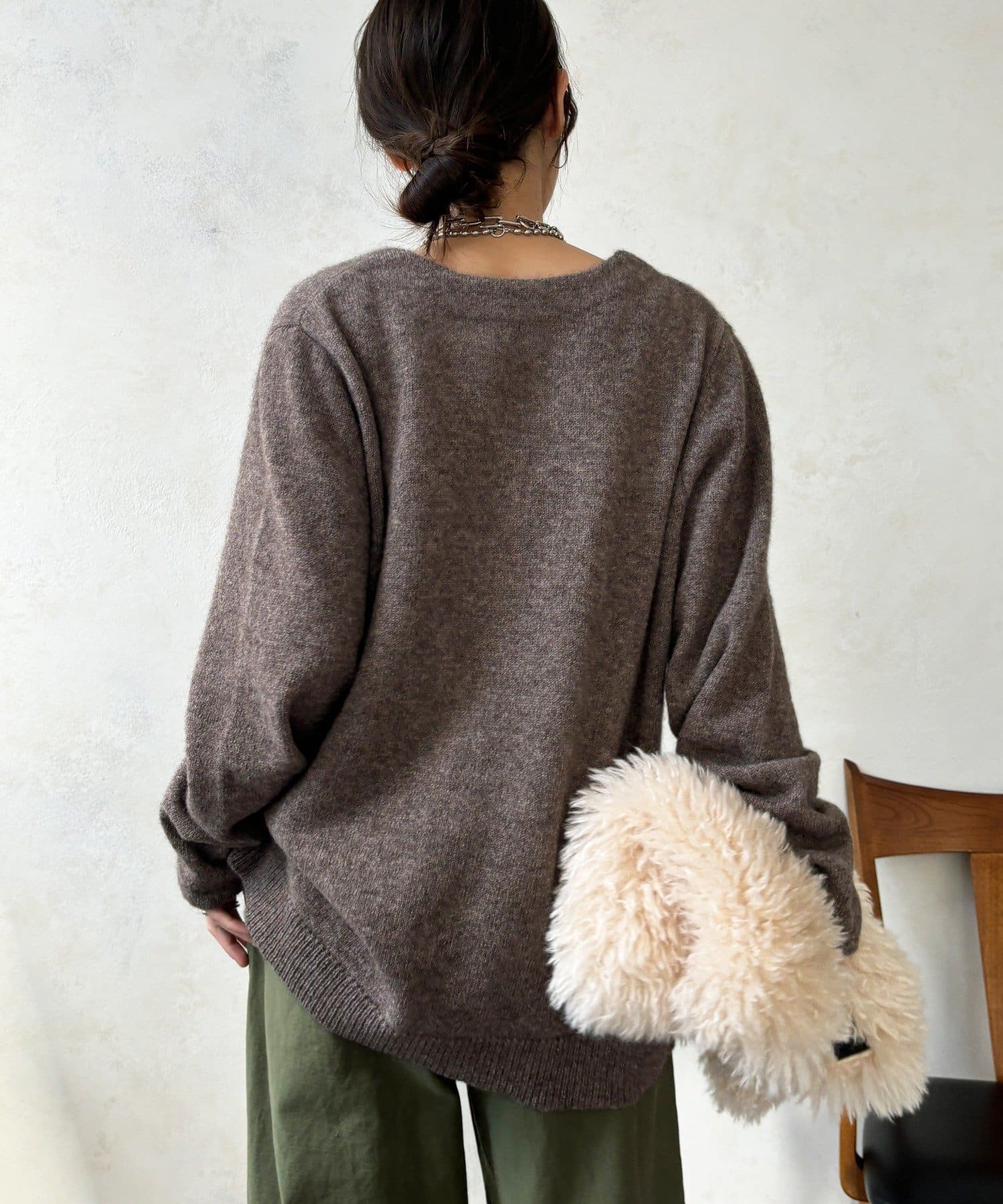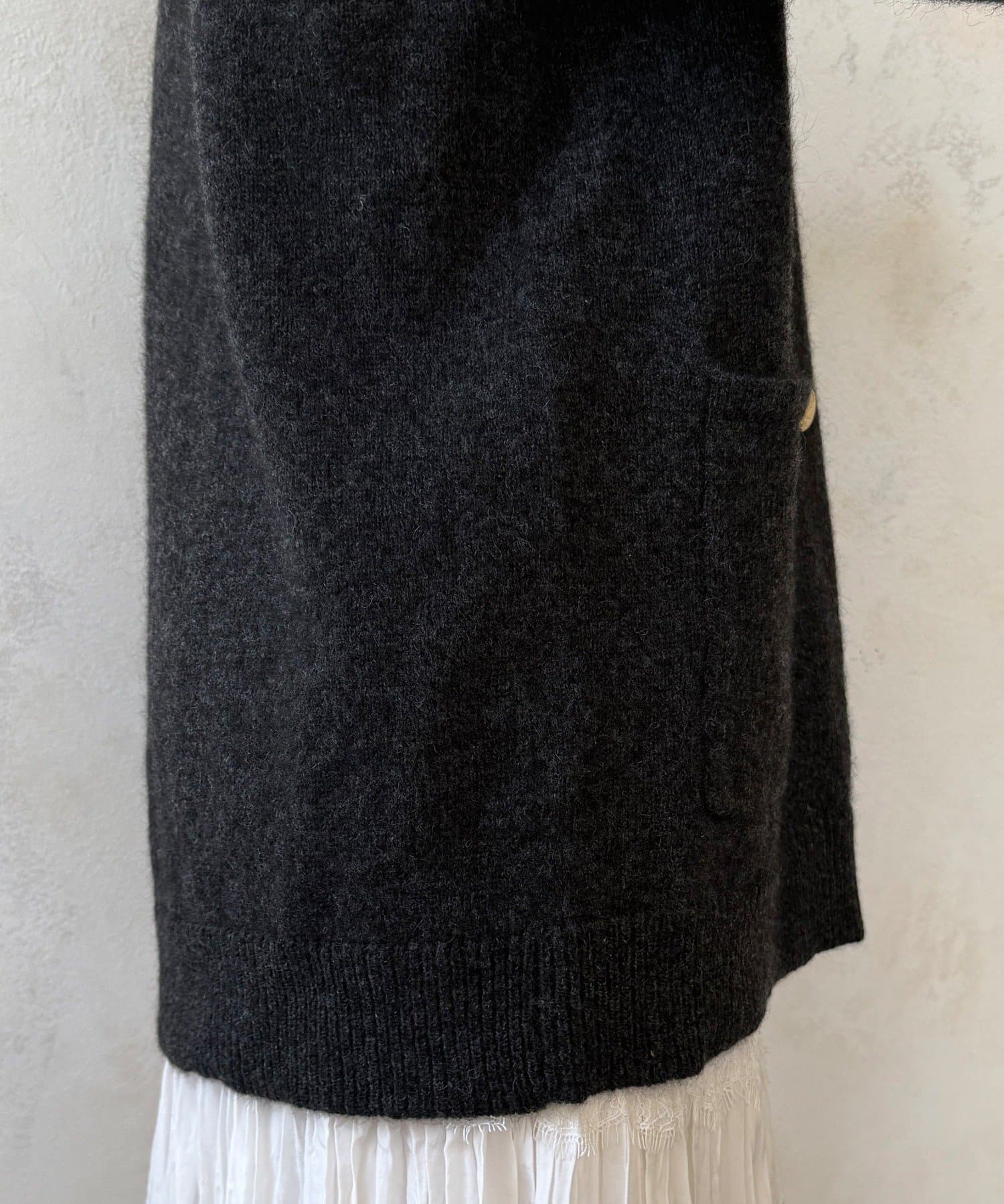 ヤクの持つ柔らかな風合いとウールの暖かさにより、軽やかな着心地でありながら高い防寒性を実現。ふわっとした素材感が奥行きを与えます。
