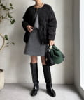 ハイネックニットを着た時やマフラーを巻くときなどに、首元がゴワつかずすっきりと着られるのが嬉しいノーカラーデザインもうれしいポイント。