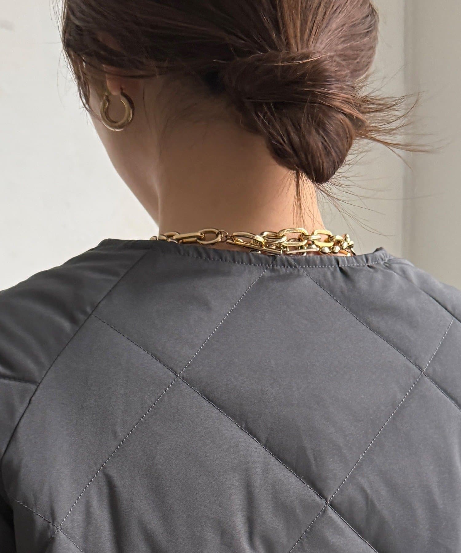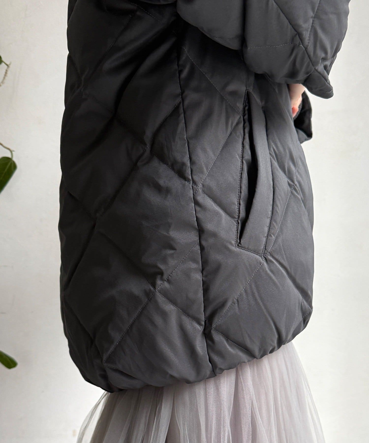 軽量で保温性にも優れた中綿素材で仕上げた大きめのダイヤ柄キルティングが、ポイントとなってくれます。