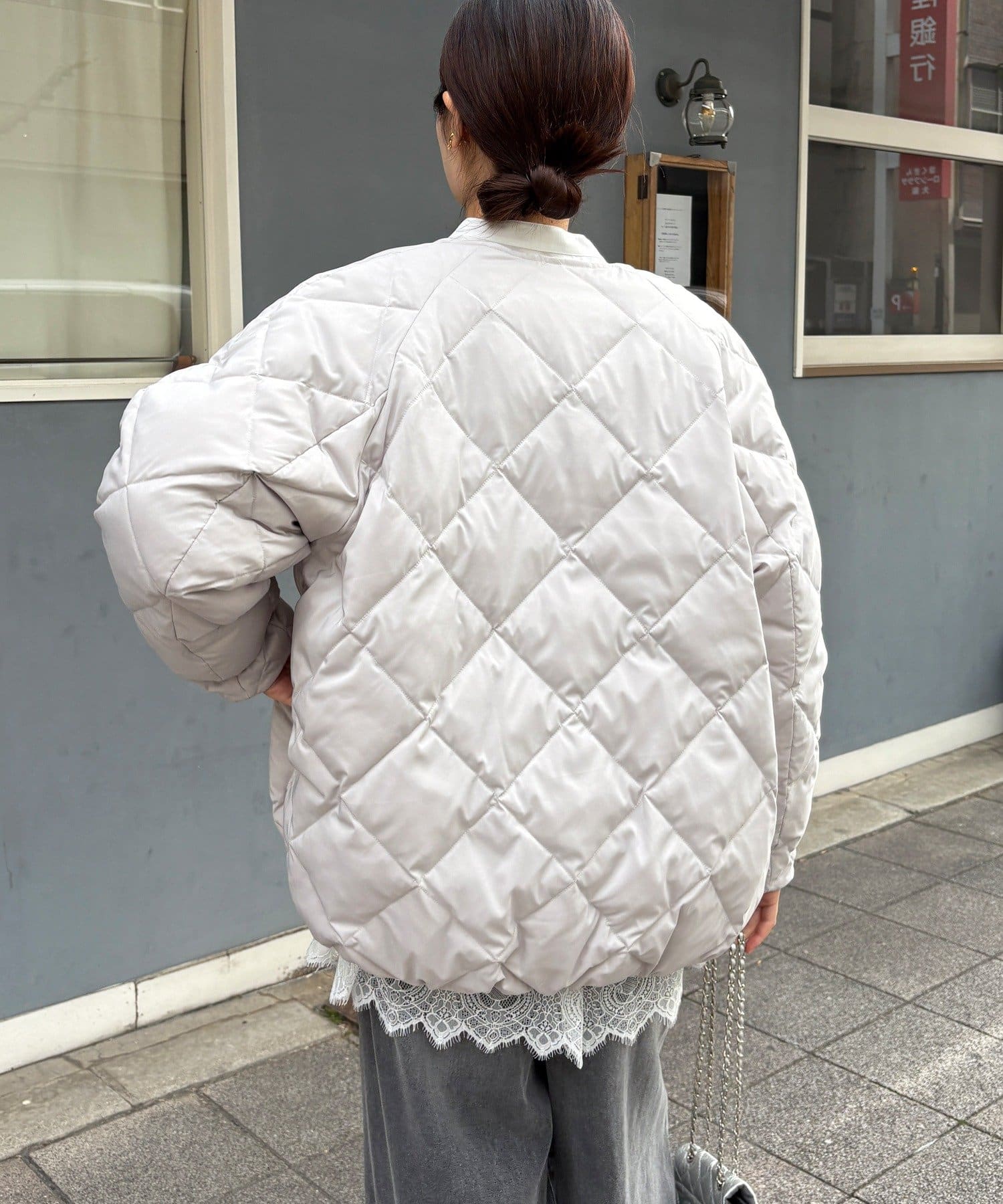 軽量で保温性にも優れた中綿素材で仕上げた大きめのダイヤ柄キルティングが、ポイントとなってくれます。