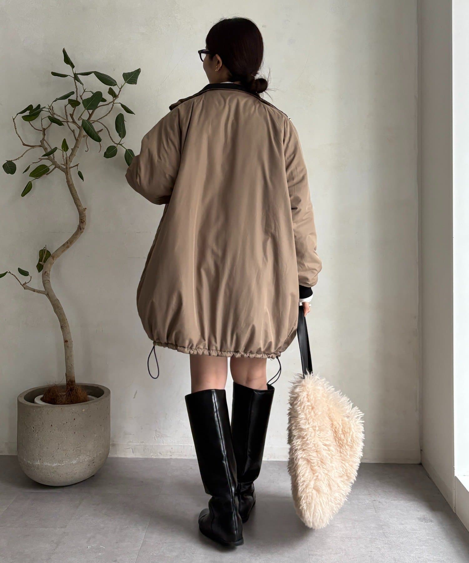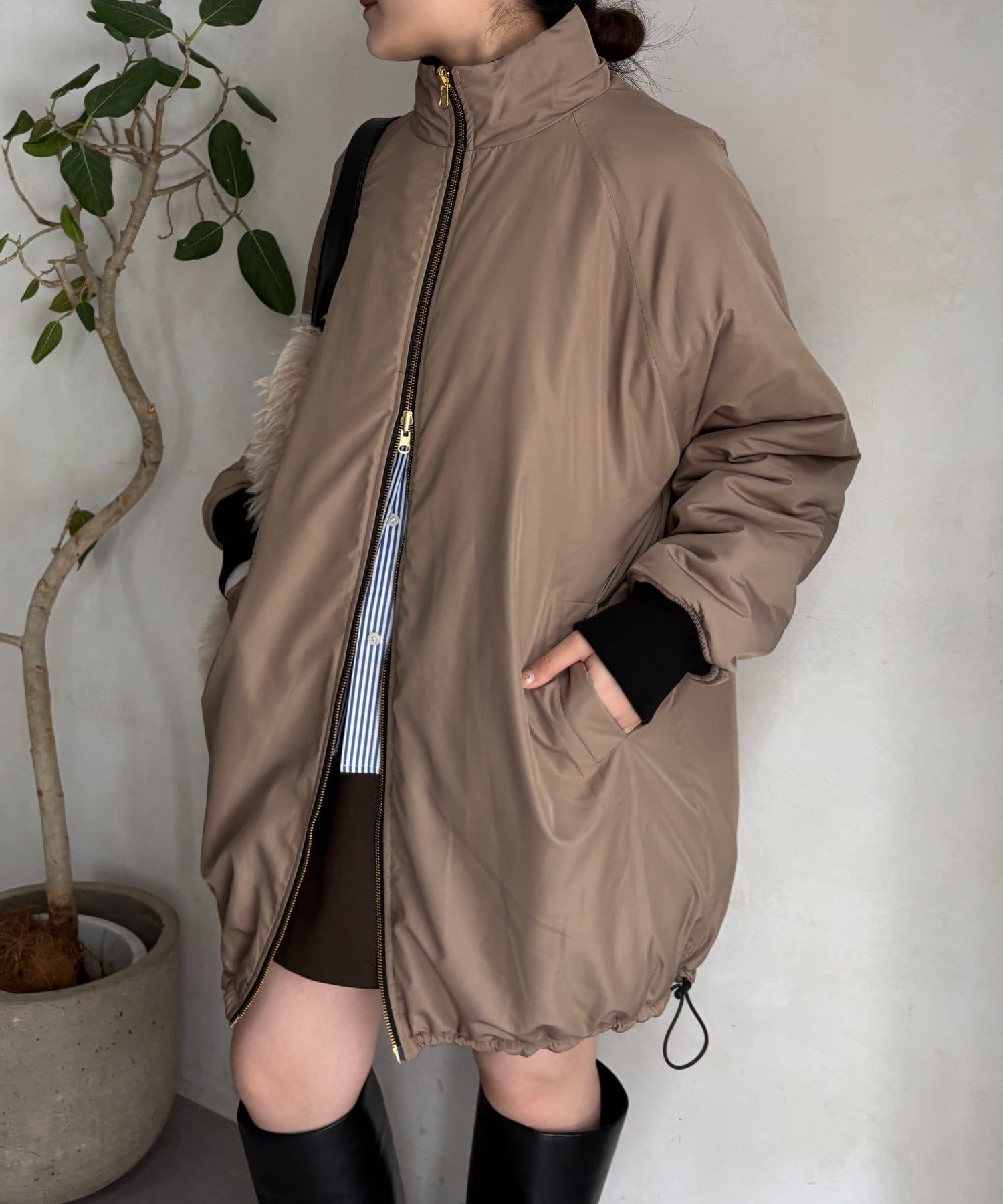 裾にはドロストが付いているので、丸みのあるシルエットにすることができ