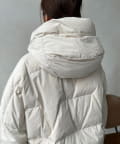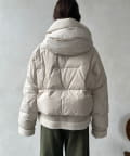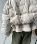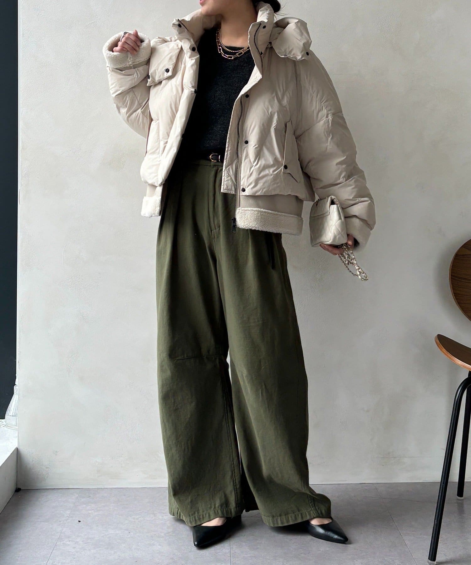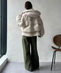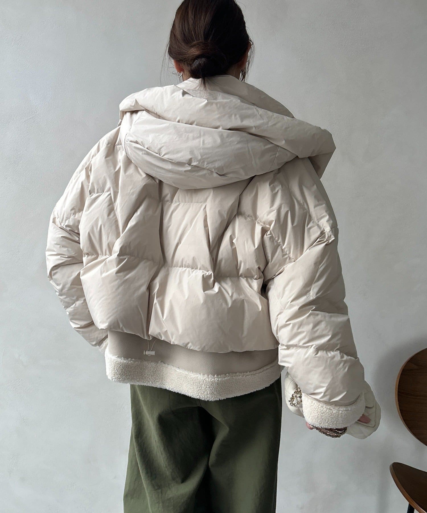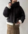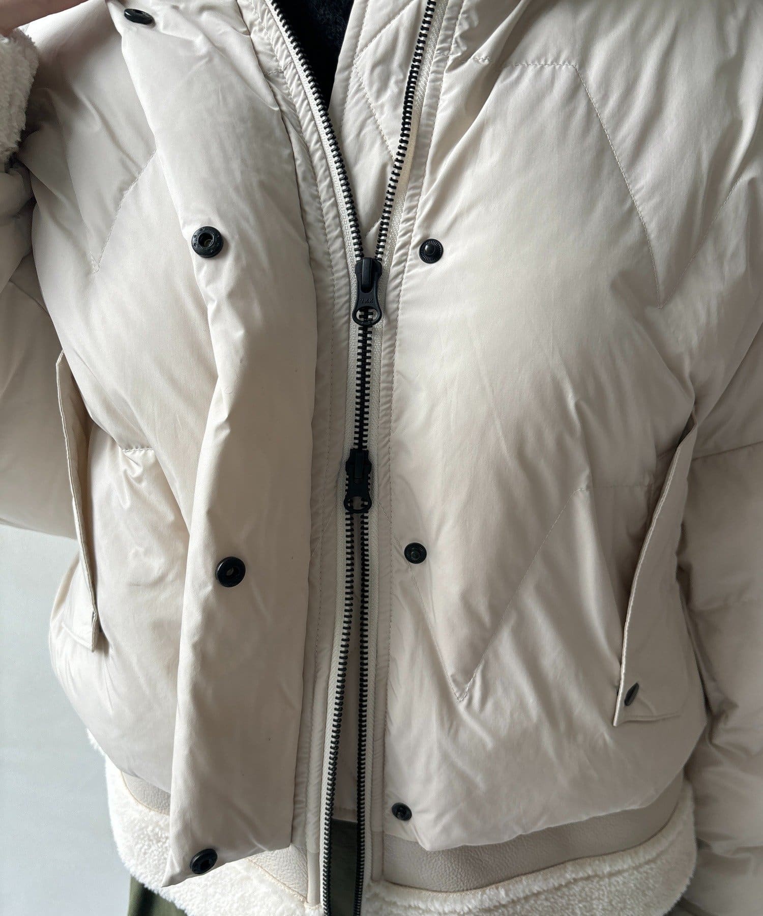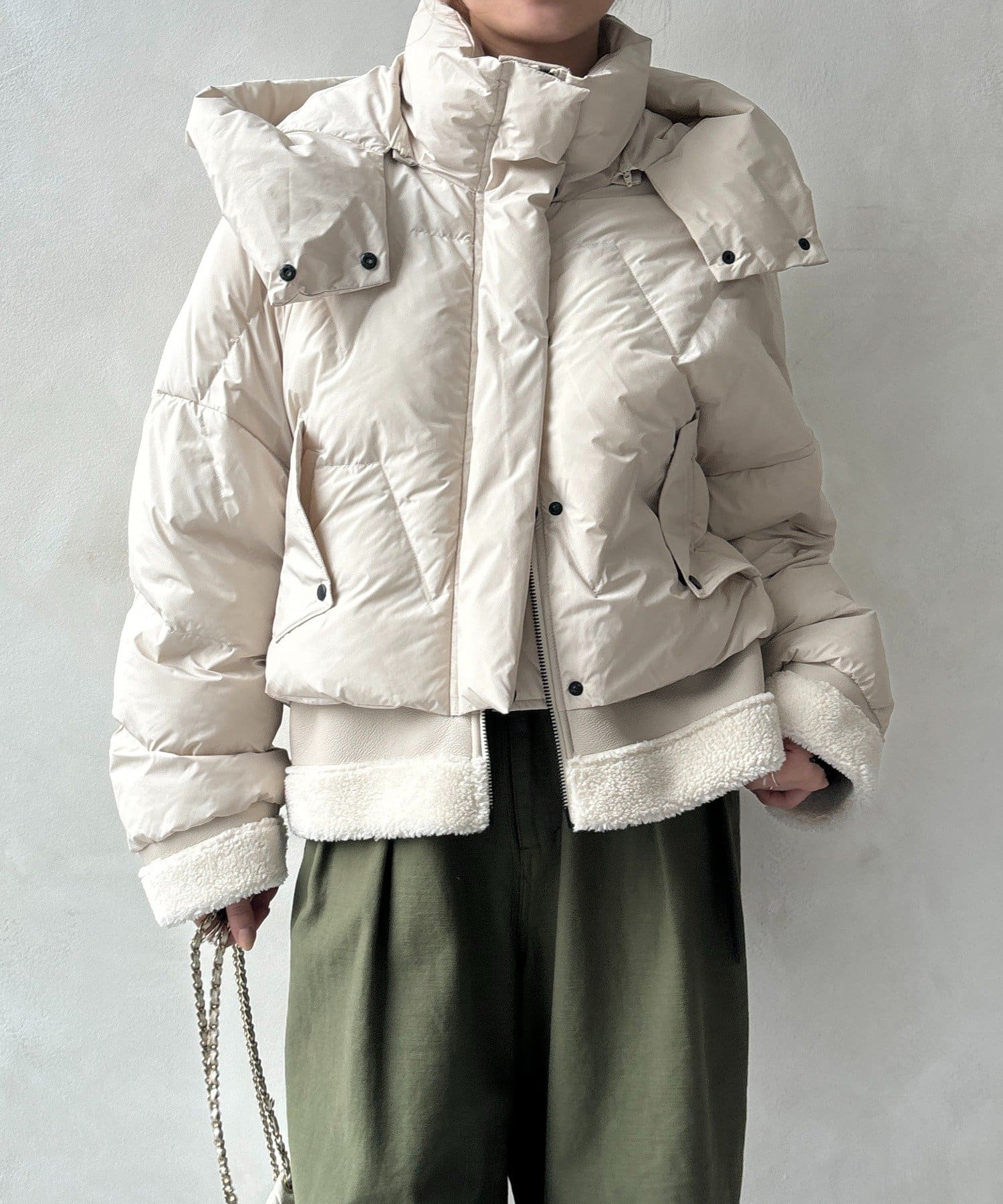 ふんわりとしたフェイクムートンと、軽くて暖かなダウンを組み合わせた切替デザインが魅力の1枚。