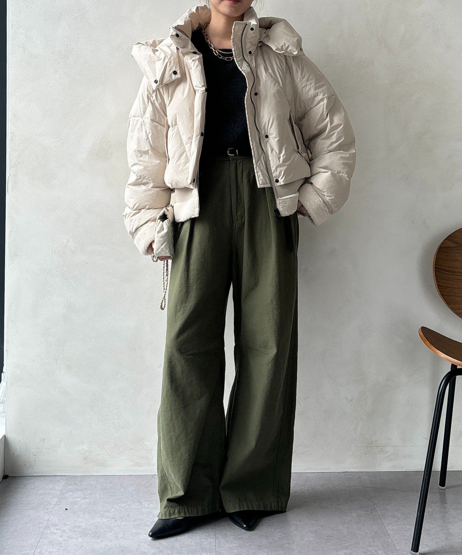 ダブルジップ仕様と、フードは取り外し可能なデザインなので、気分によって表情を変えられますよ◎