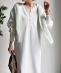 首元はヘンリーネックで程よい抜け感と大人のリラックスムードを演出します。