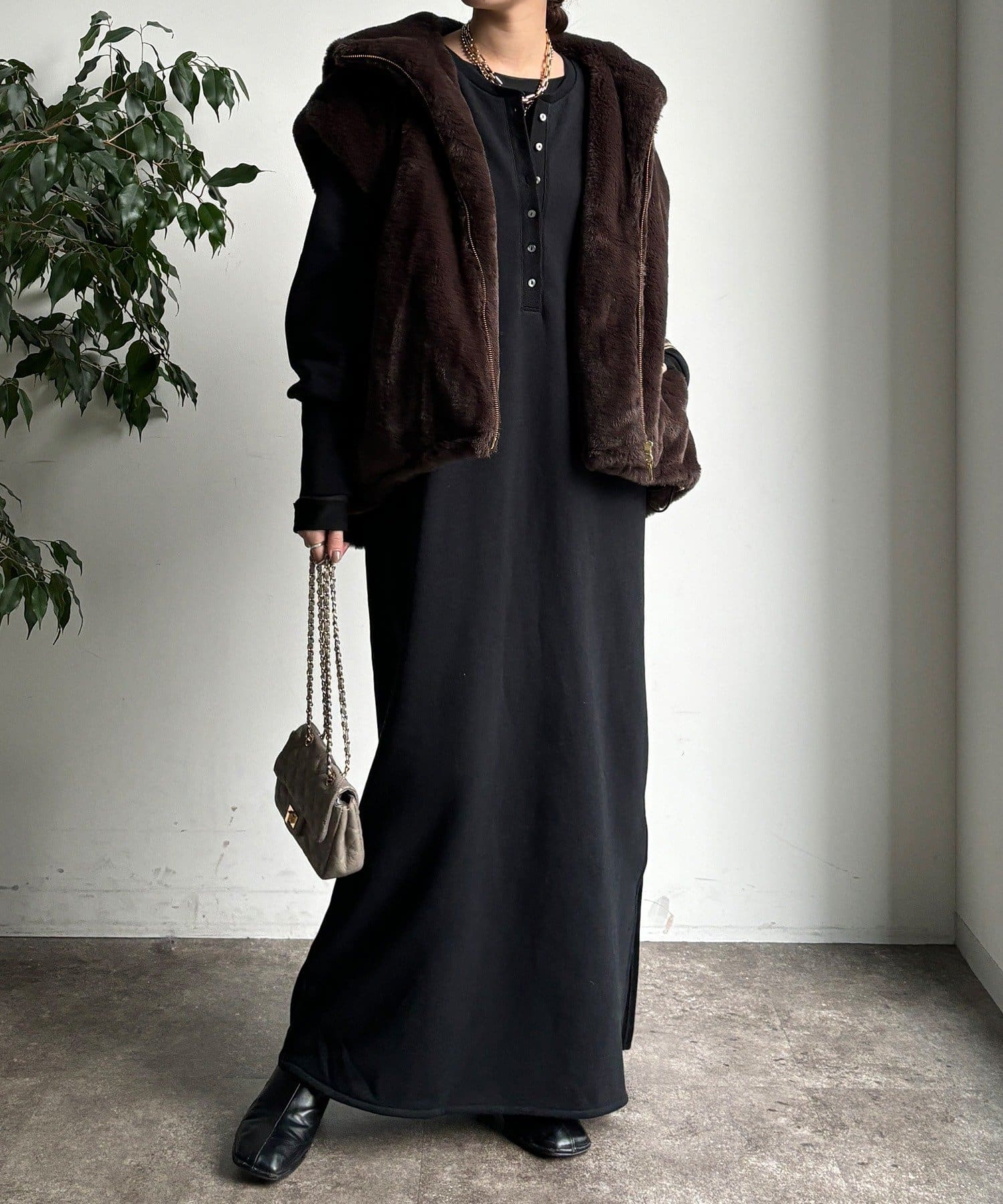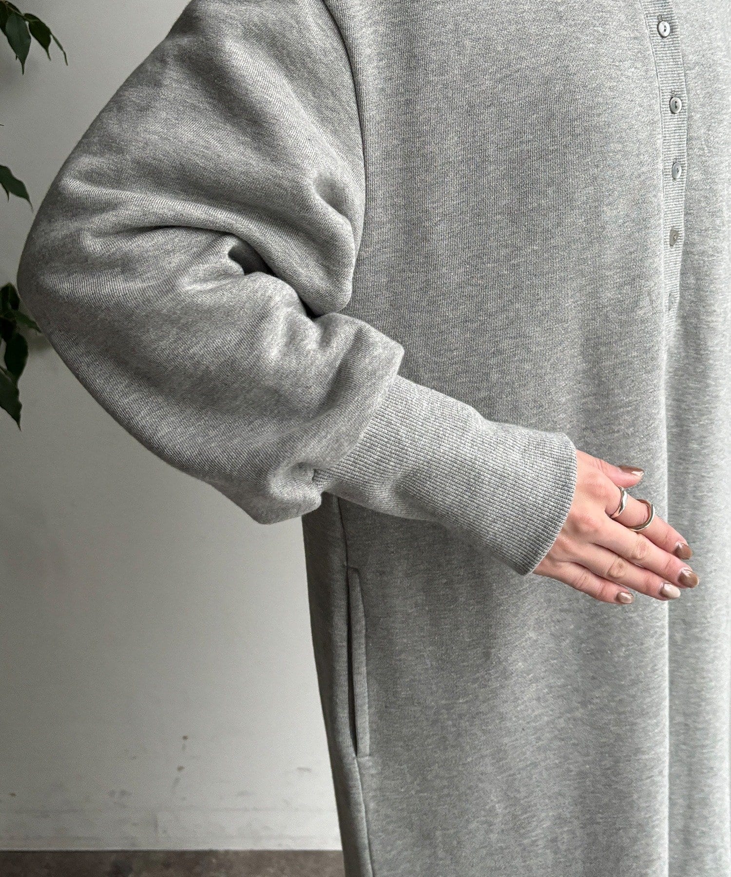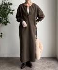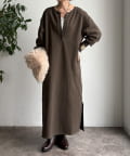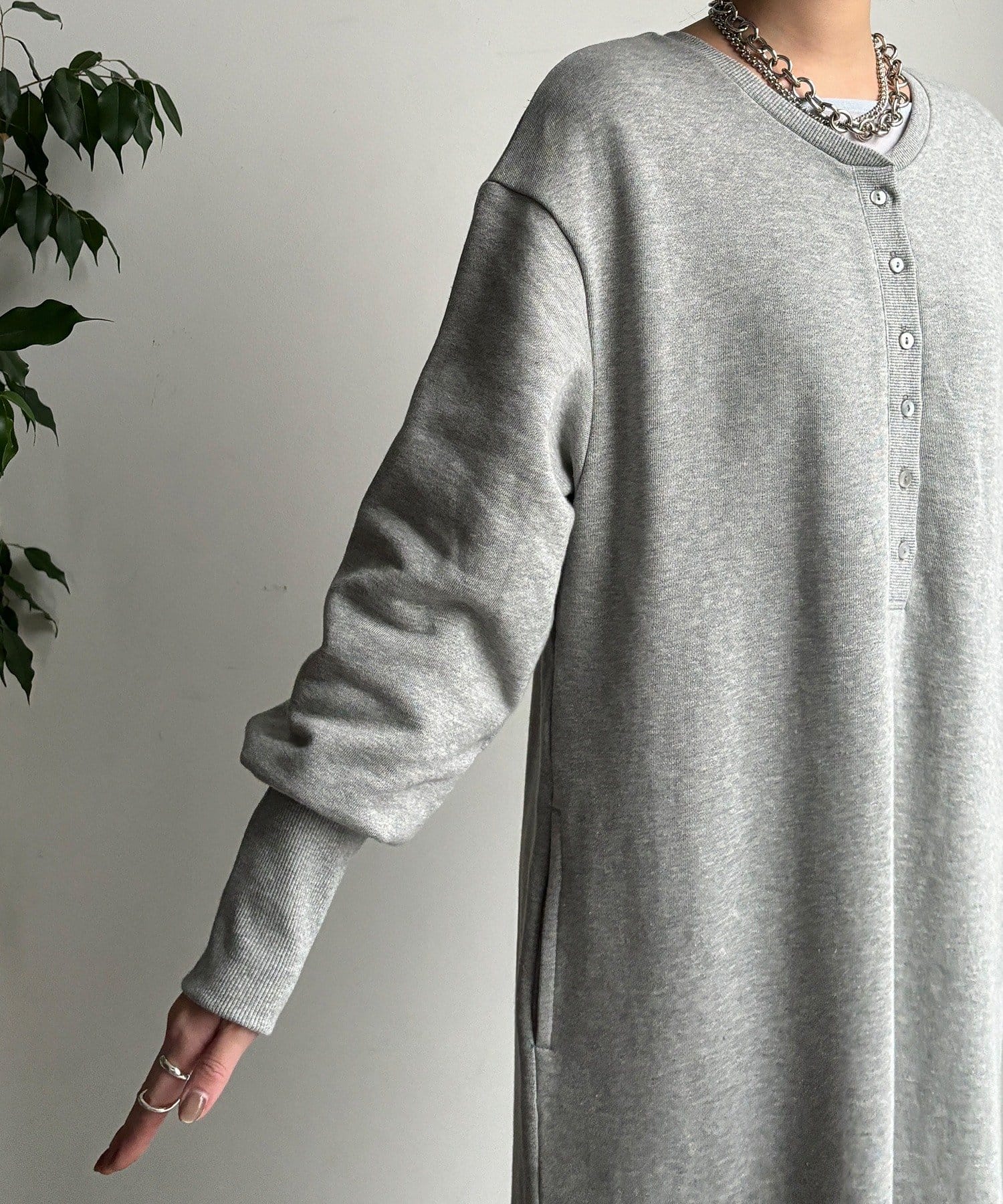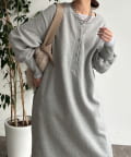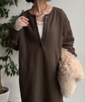 • DOUDOU(ドゥドゥ) 裏毛裏起毛ヘンリーネックワンピース