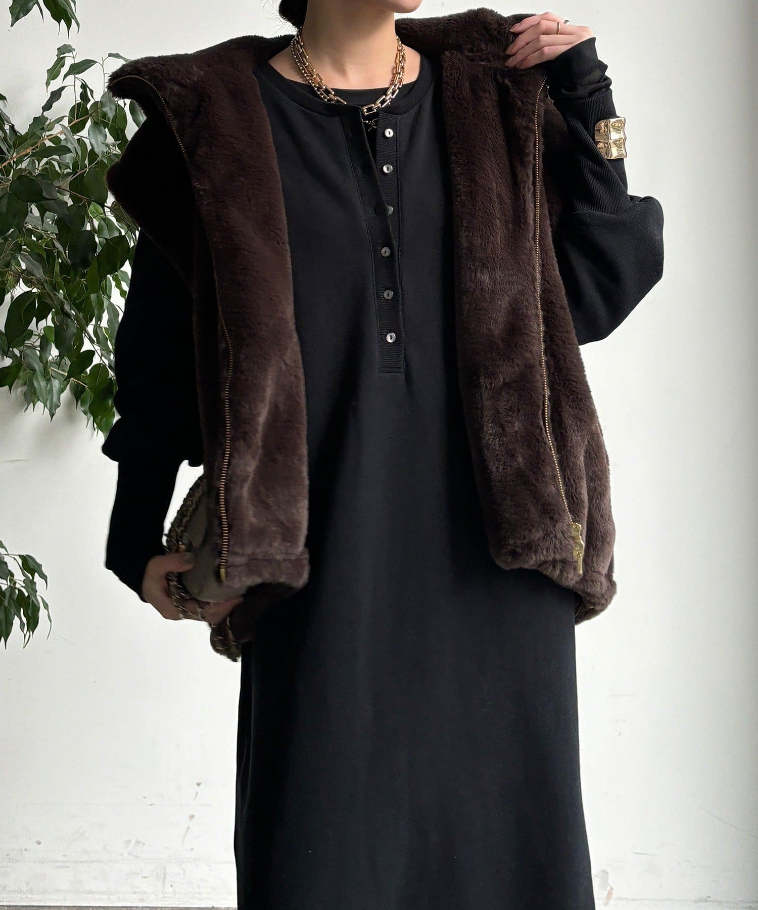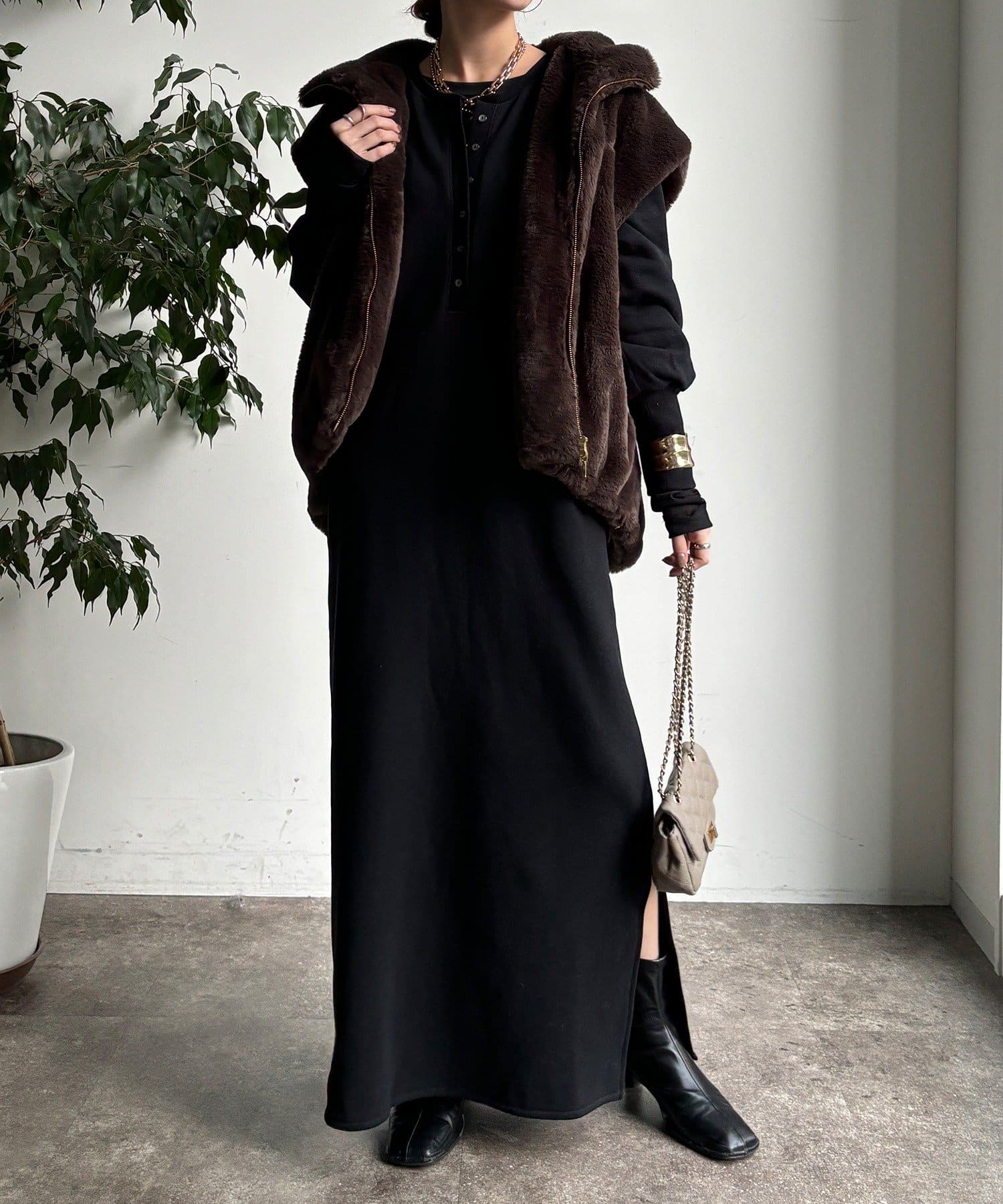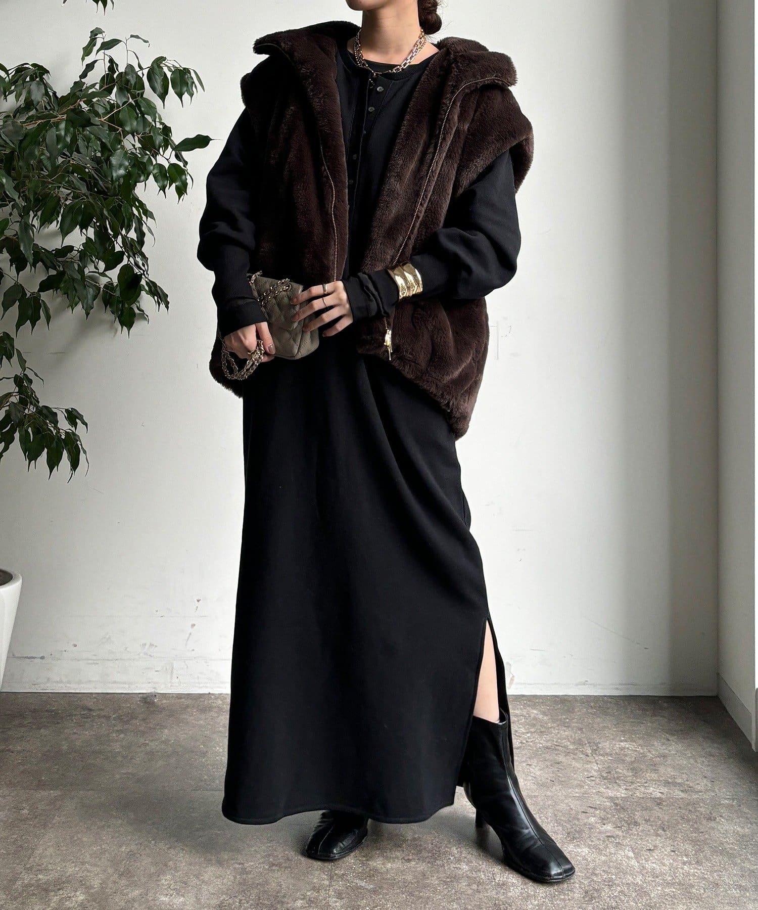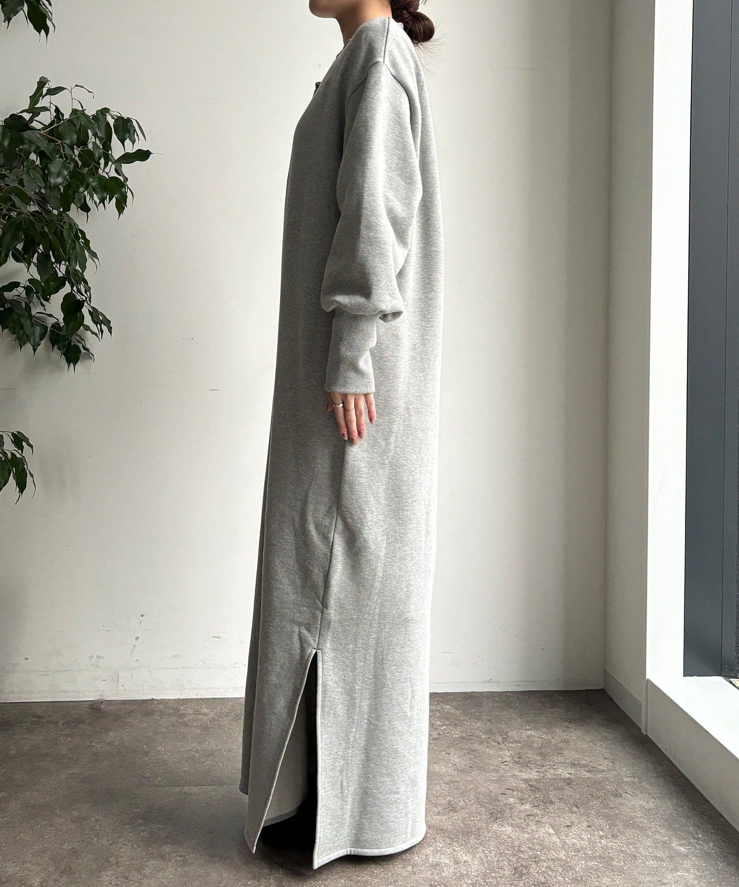 • DOUDOU(ドゥドゥ) 裏毛裏起毛ヘンリーネックワンピース