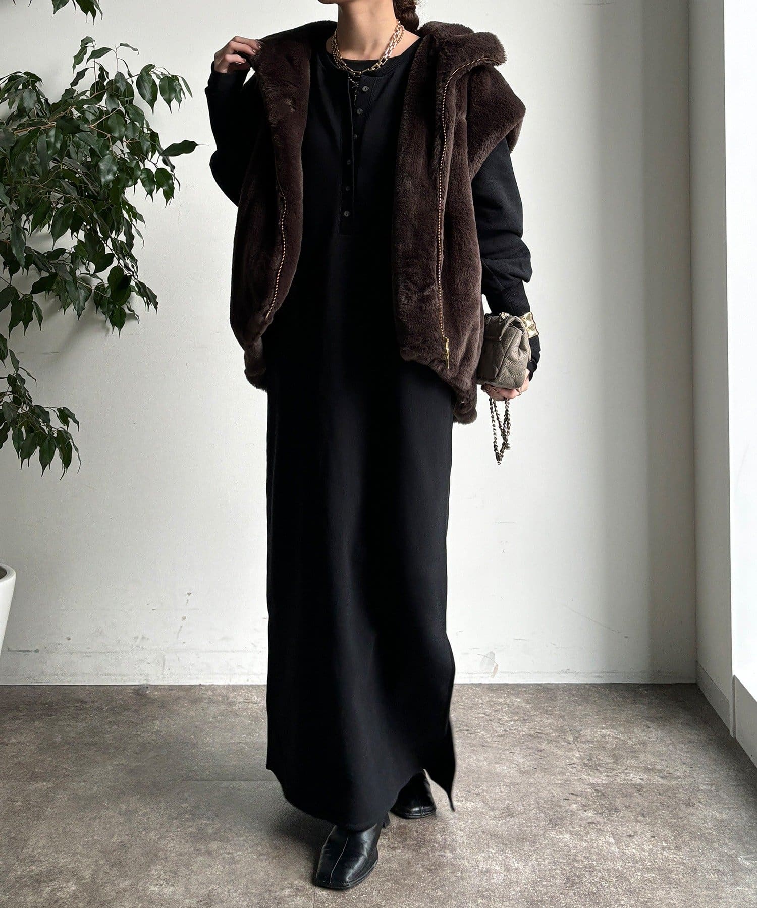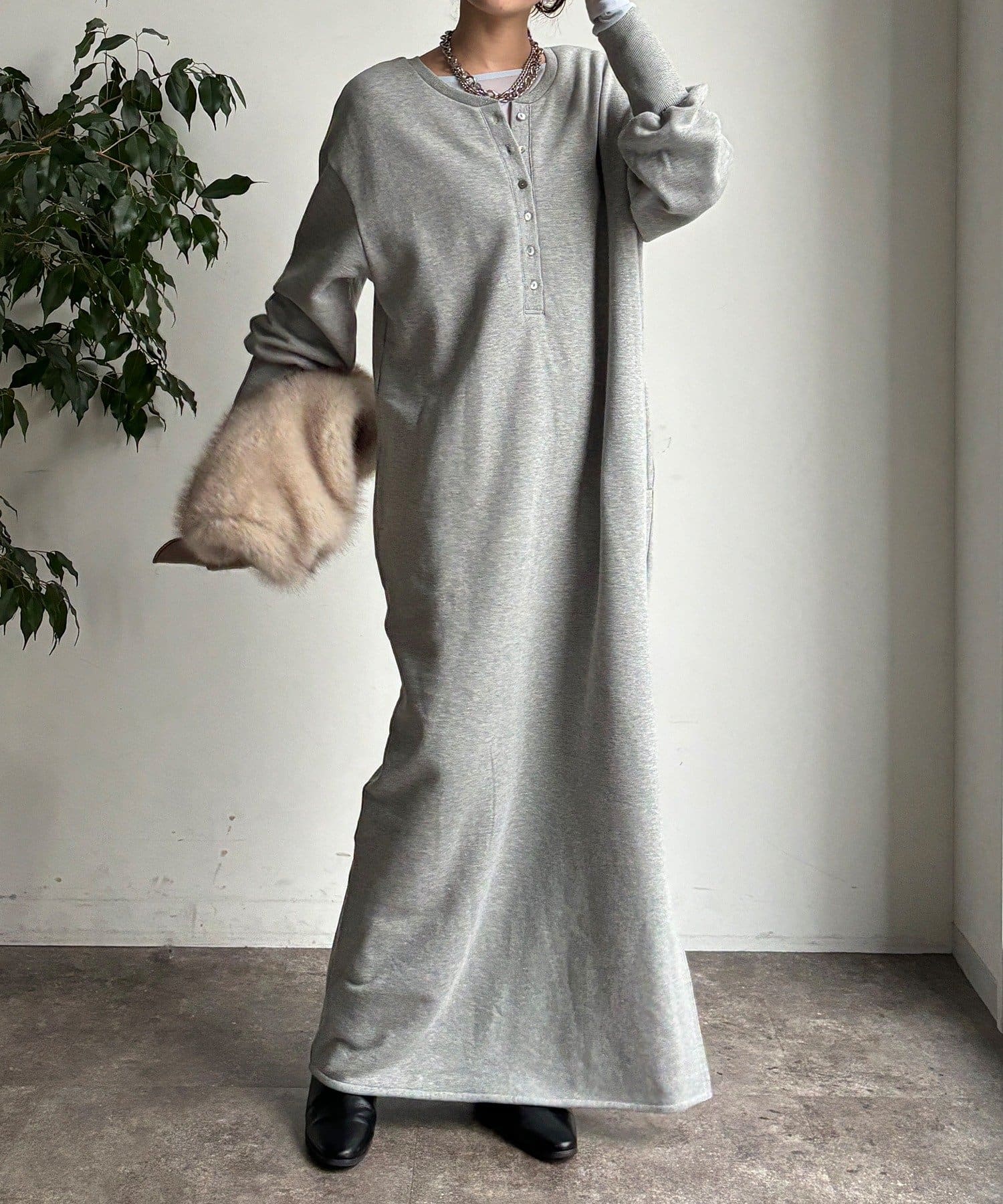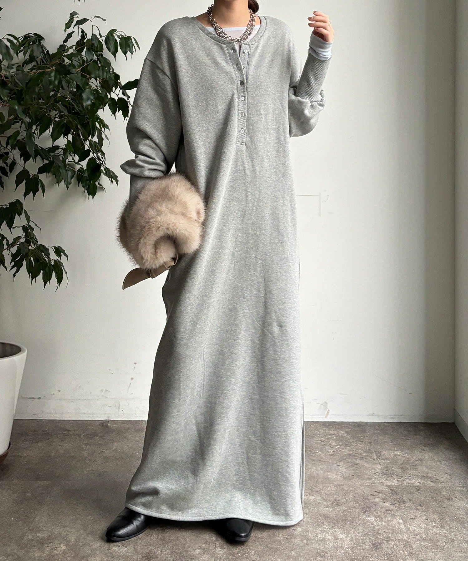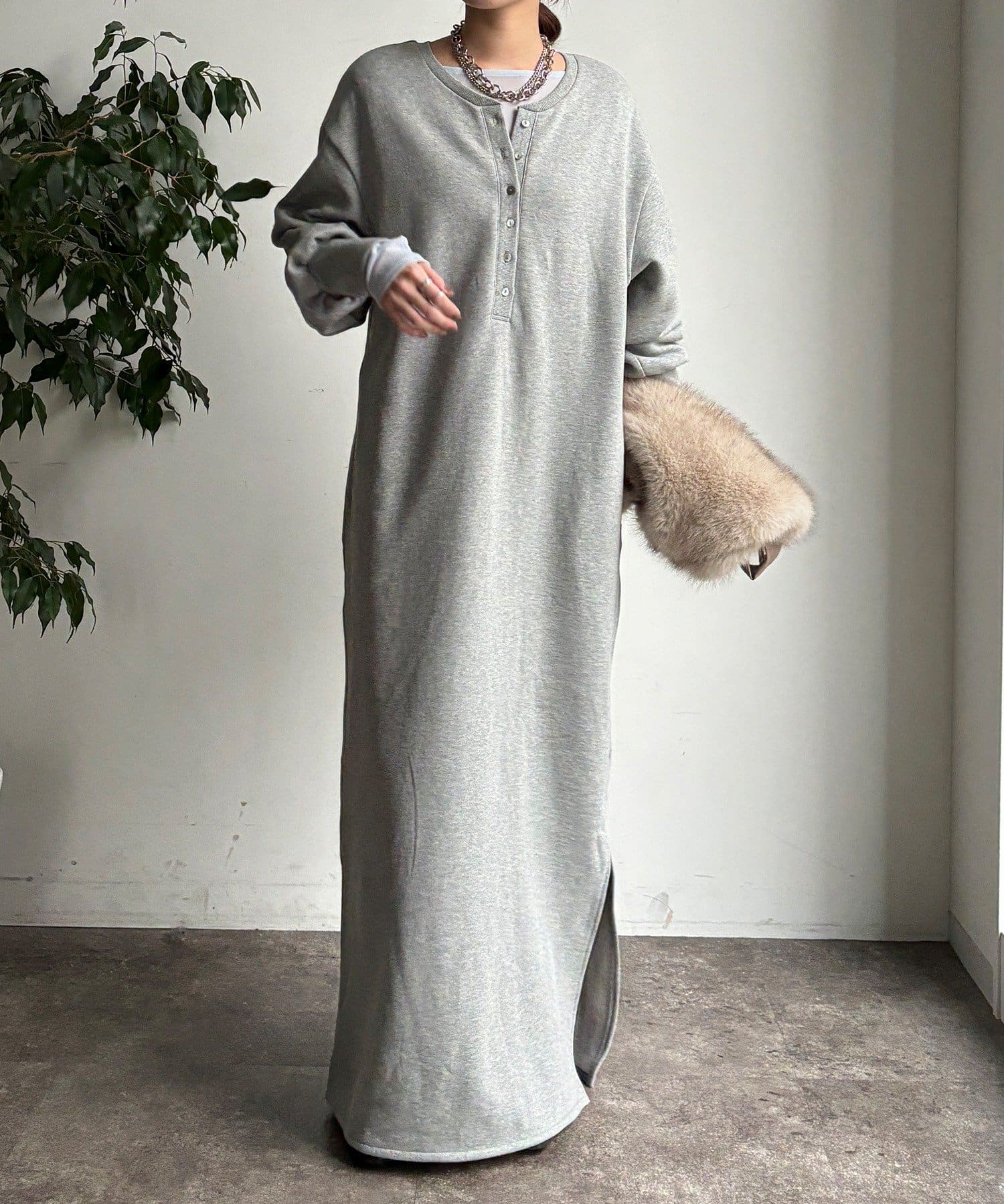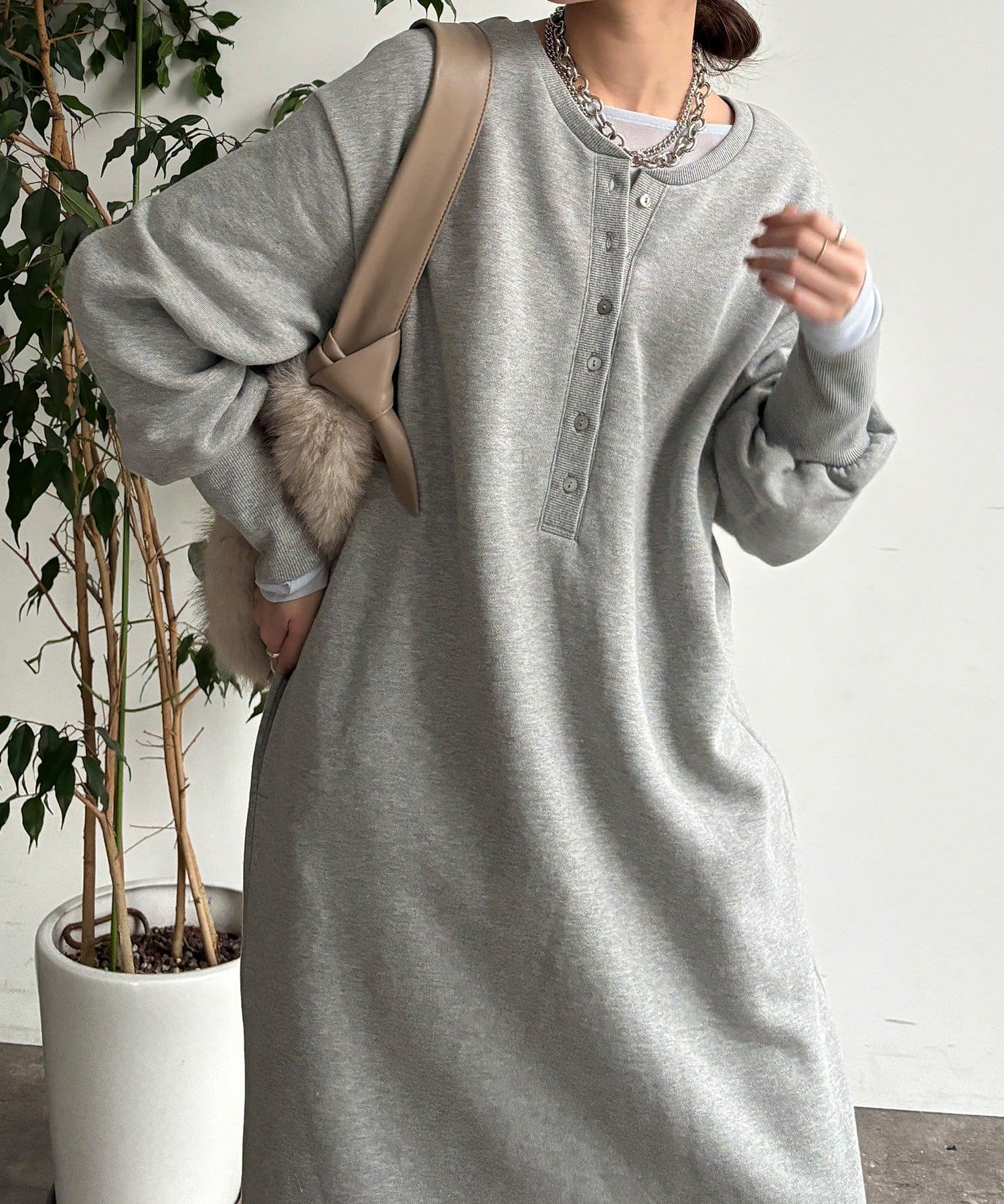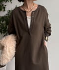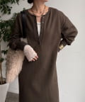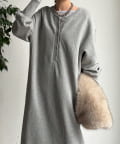 裏起毛で暖かい、ヘンリーネックが大人っぽい!楽ちんワンピース