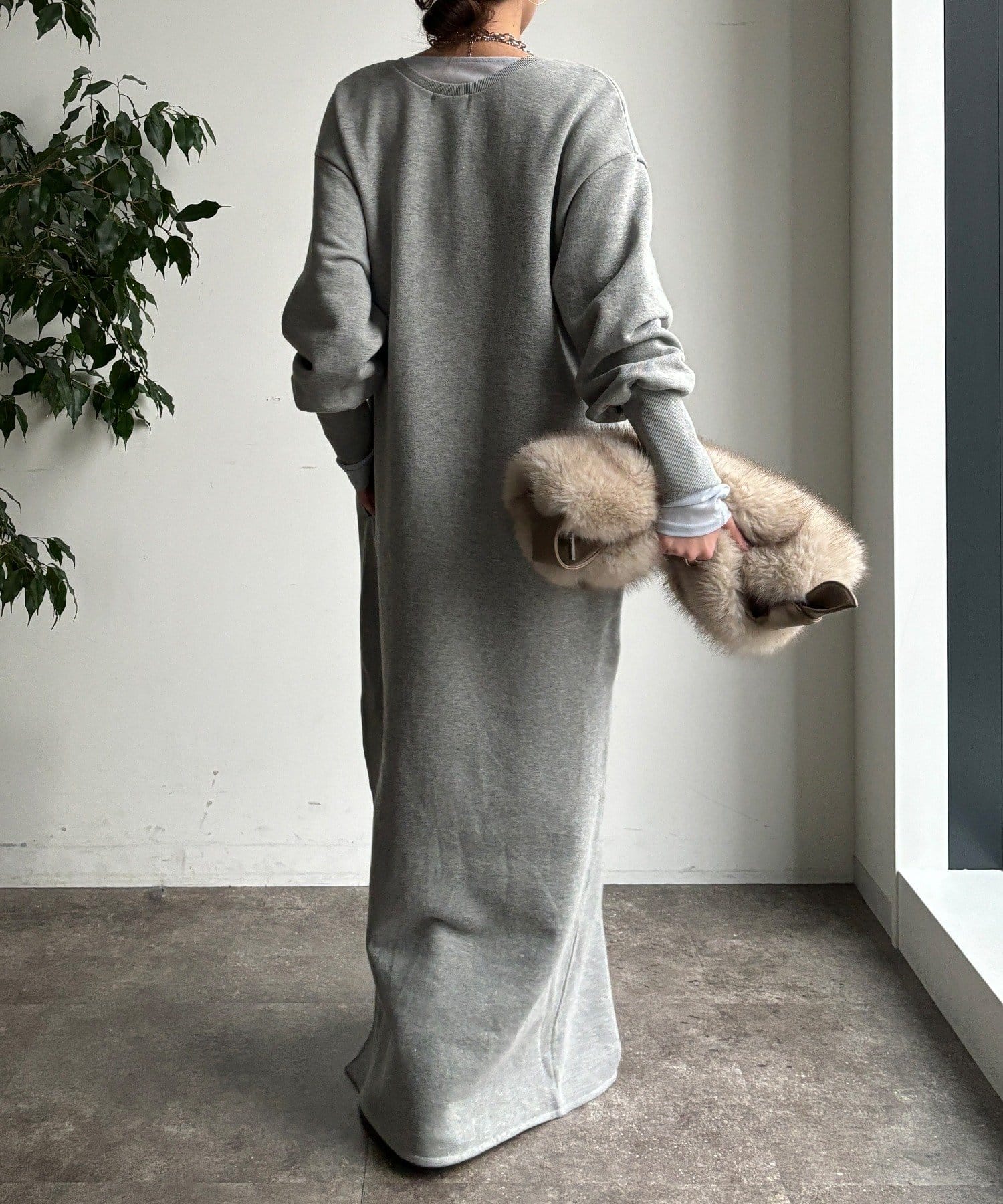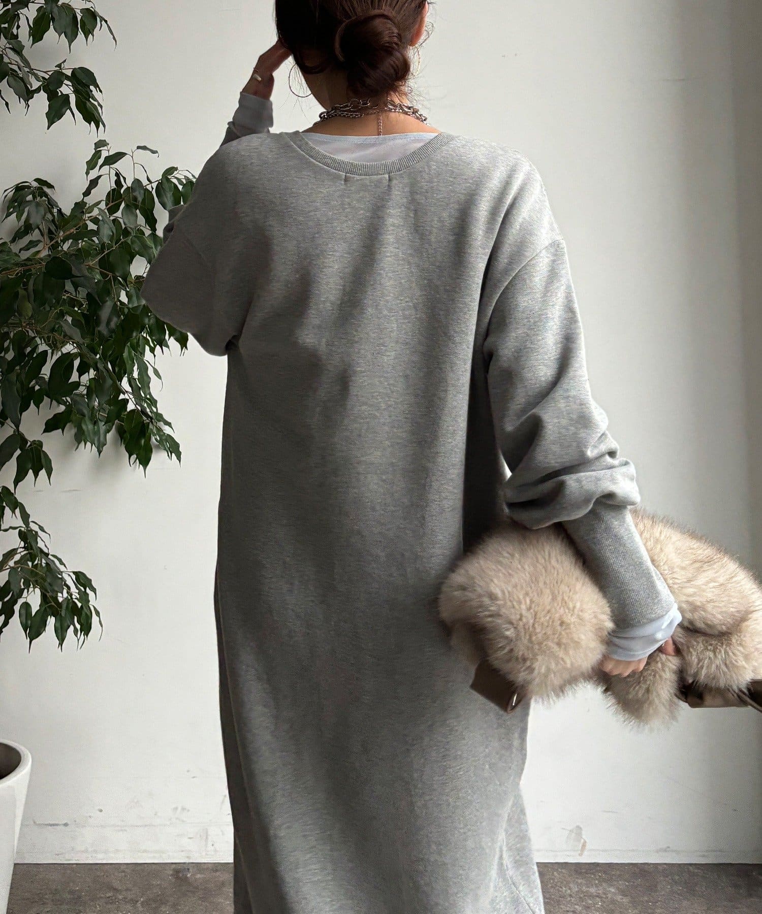 ふんわりと柔らかな裏起毛素材で、着心地も暖かさも抜群なワンピース。