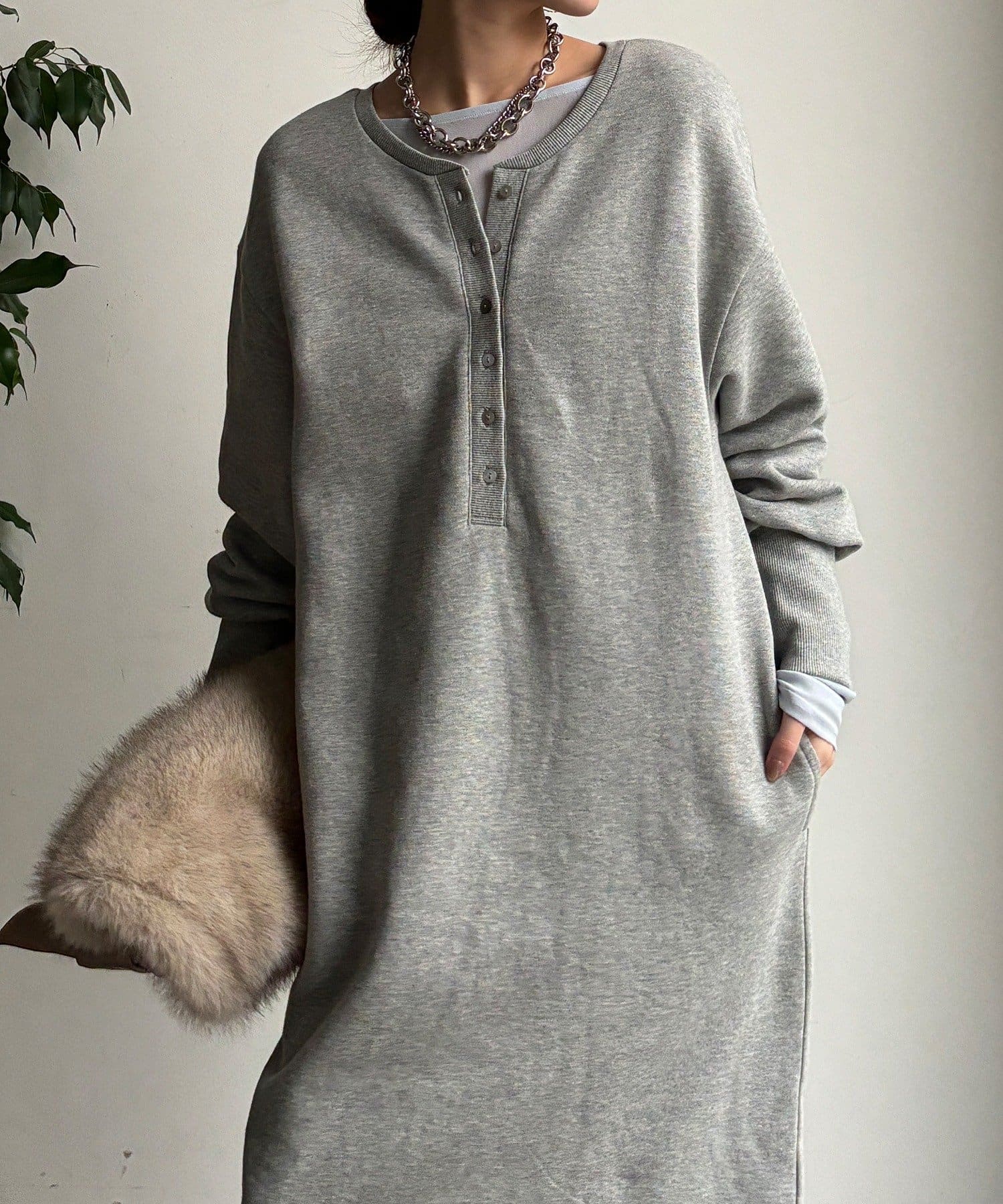 TOP > DOUDOU > レディース > ワンピース > ワンピース > 裏毛裏起毛ヘンリーネックワンピース