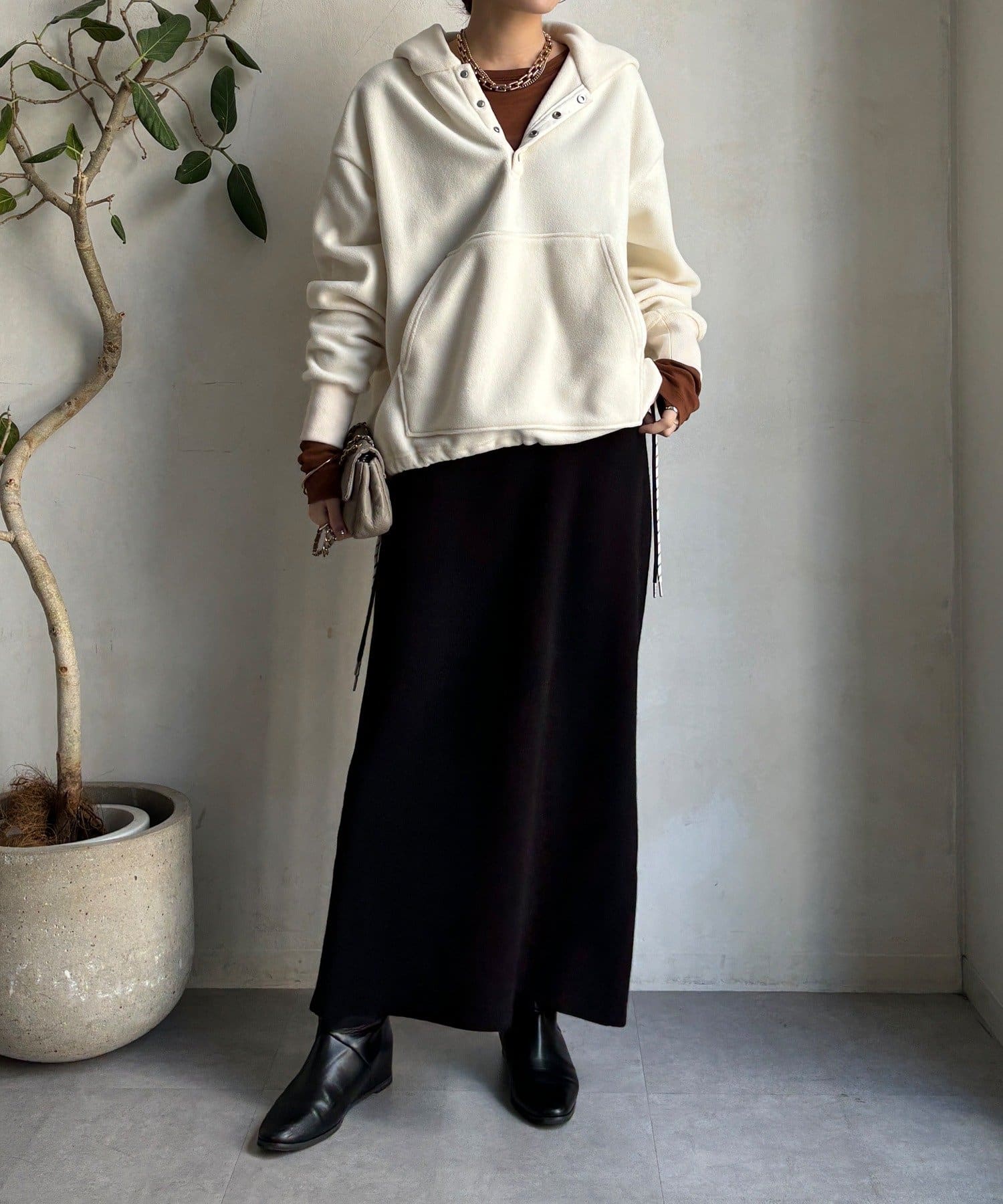 無駄のないすっきりとしたシルエットが縦ラインを強調し、自然とスタイルアップを叶えてくれる一枚です。