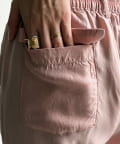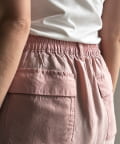 ウエストはバックゴム仕様で楽々。裾にはドロストコードを施すことで、絞ってシルエットの変化を楽しむことも◎