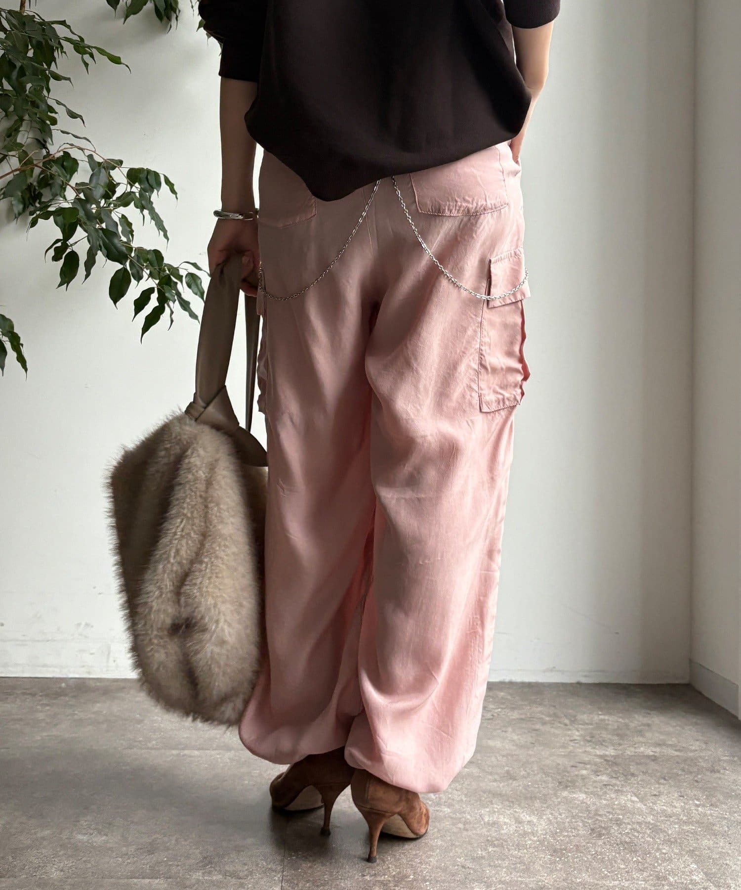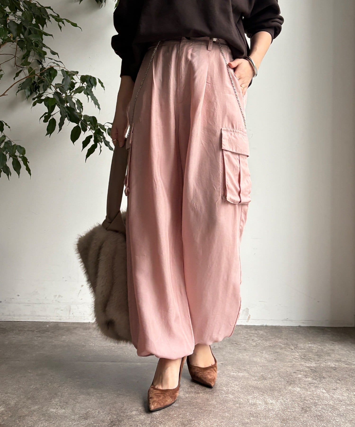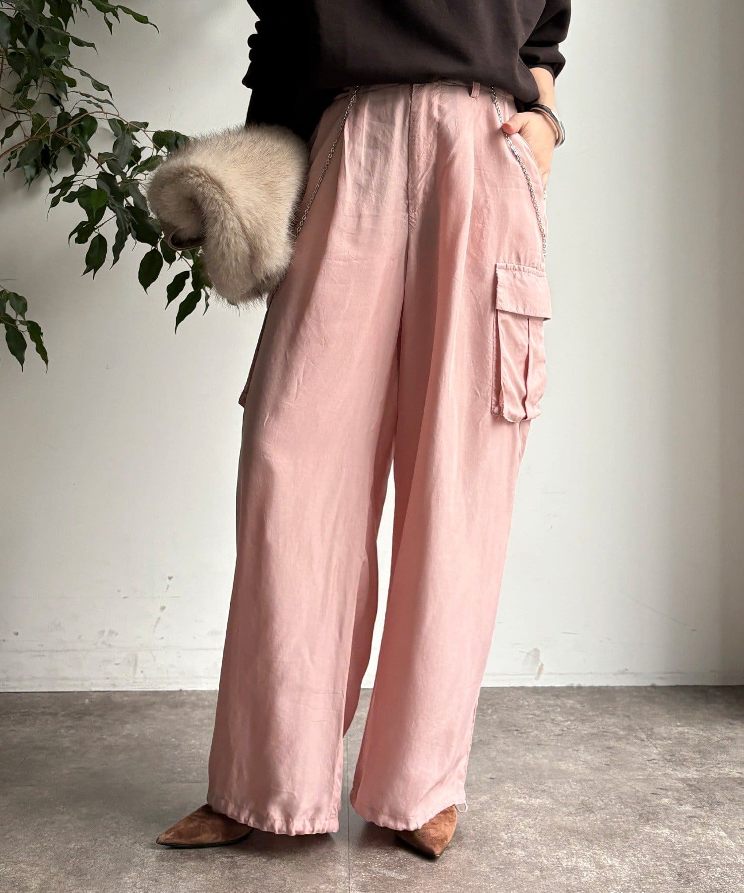 とろみ素材のカーゴパンツ