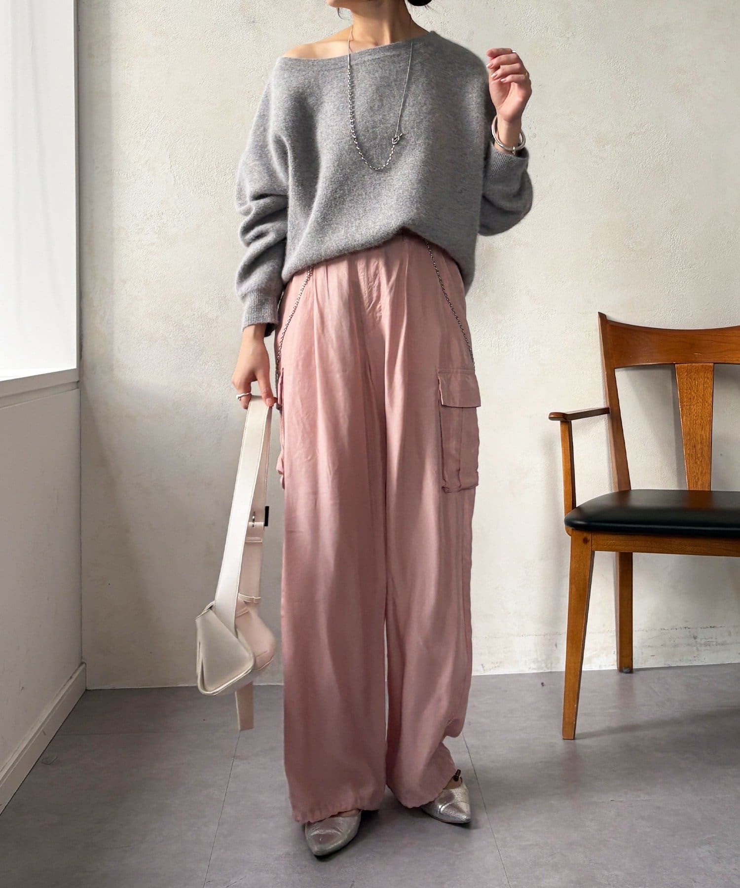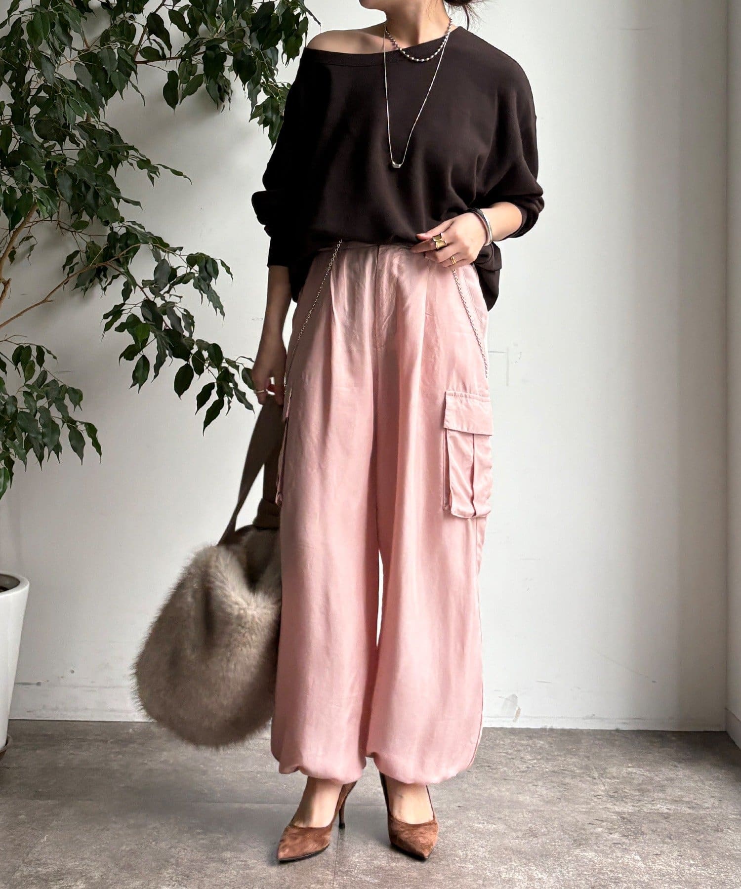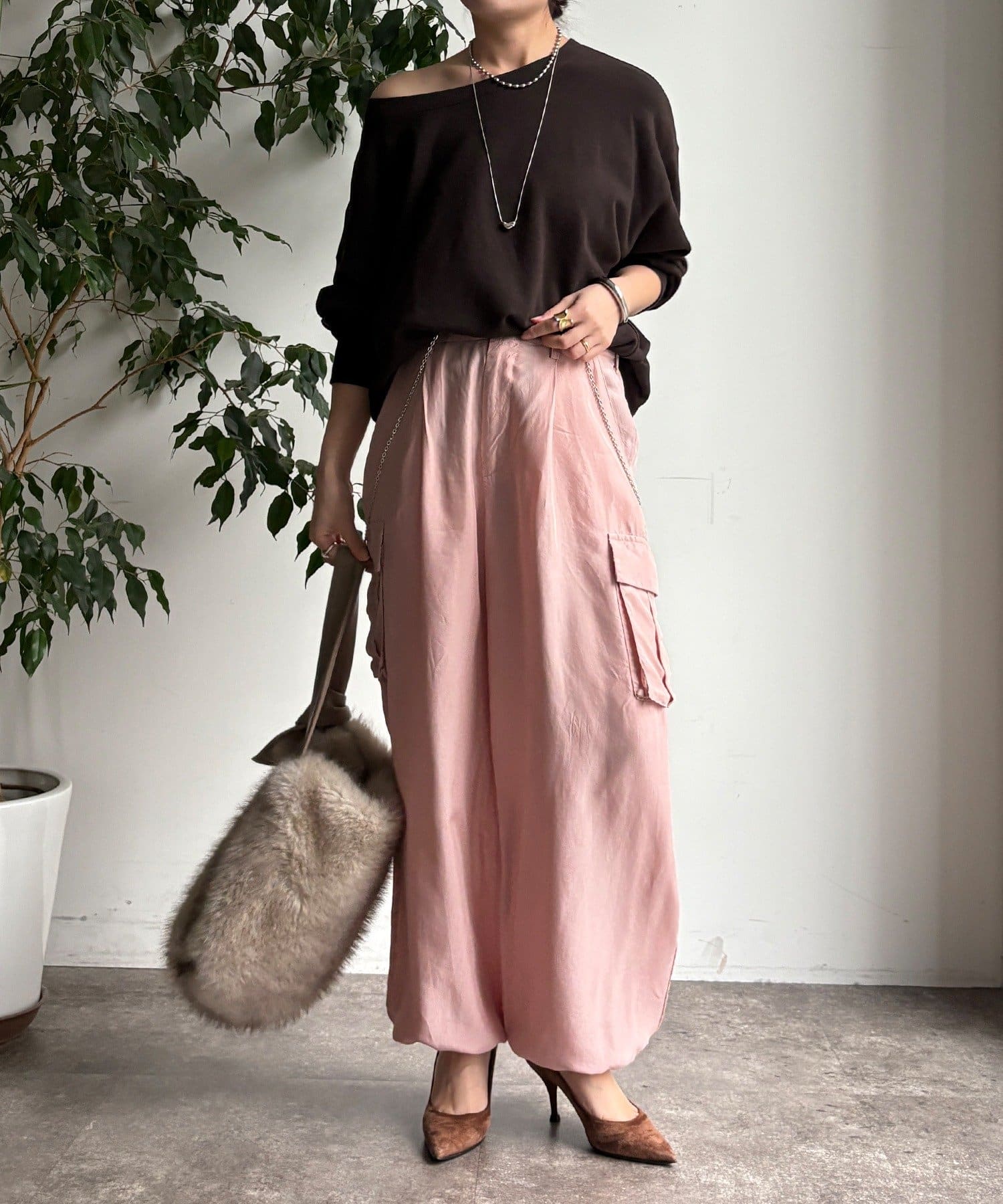 とろみ素材のカーゴパンツ