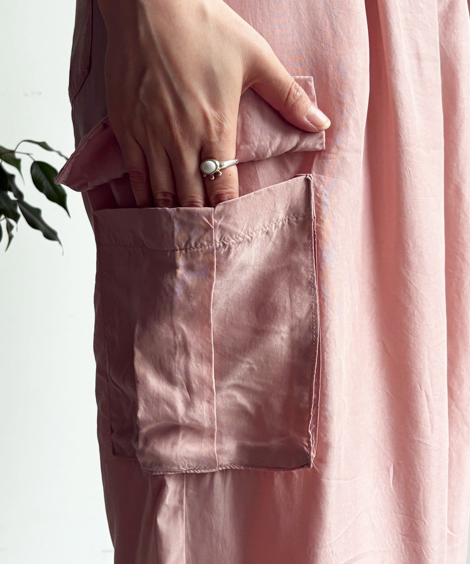 滑らかな肌触りと、カジュアルなカーゴデザインに上品さを加える微光沢感が特徴。