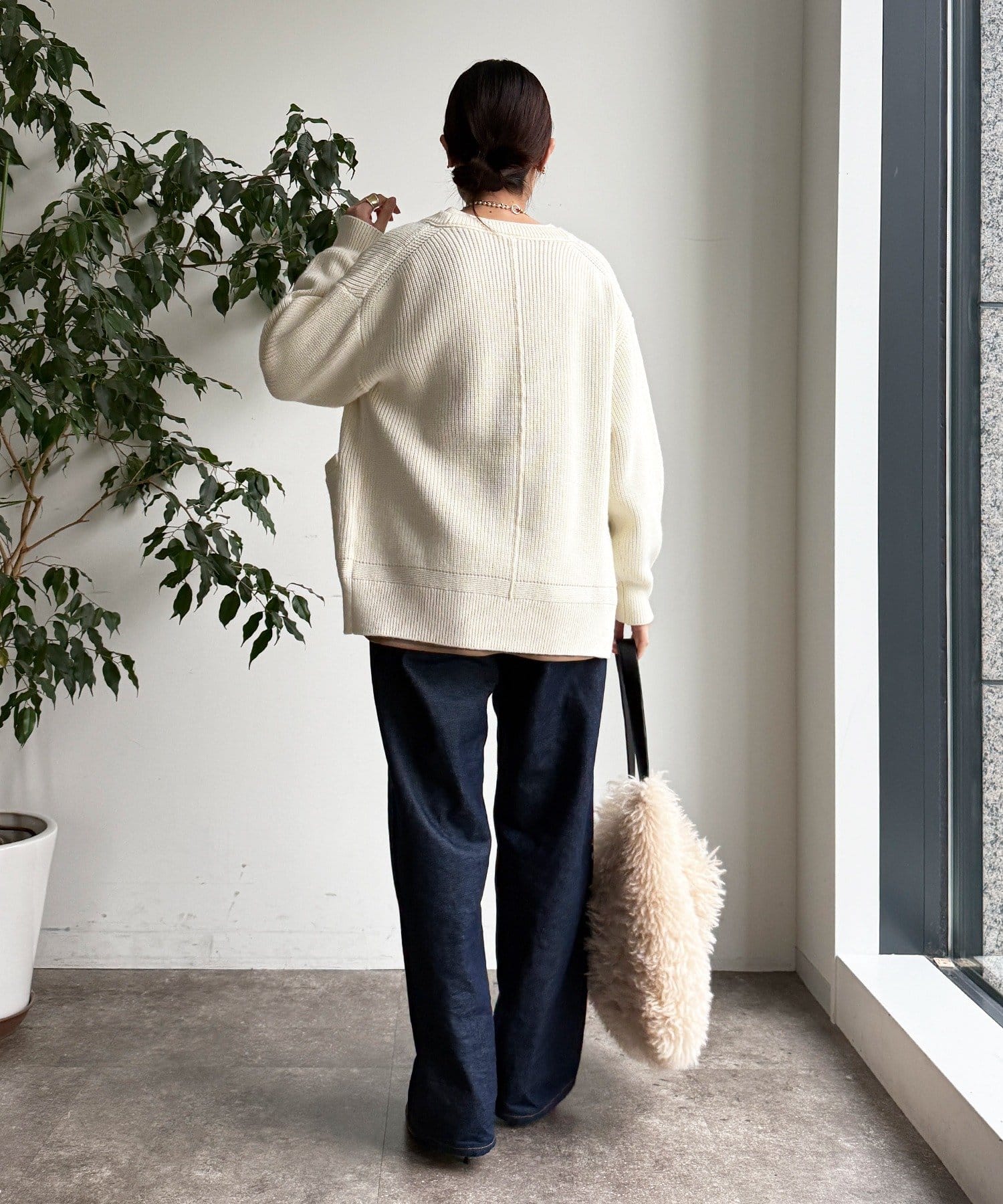 ジップを占めてVネックプルオーバー風に、開けて軽めのカーディガンとして、着こなしのアレンジが楽しめます。